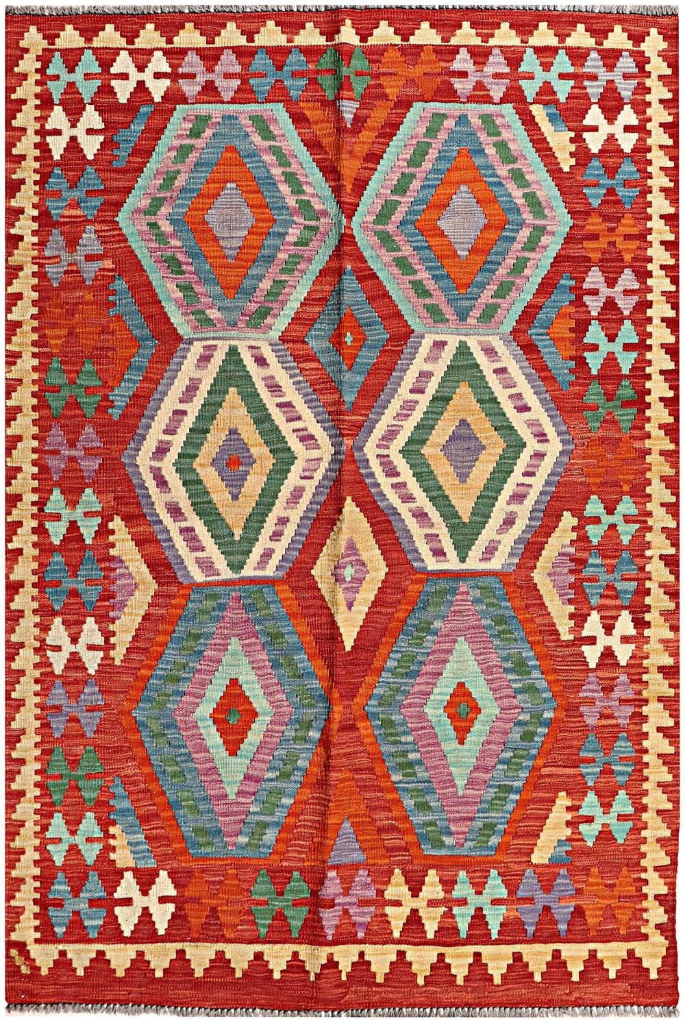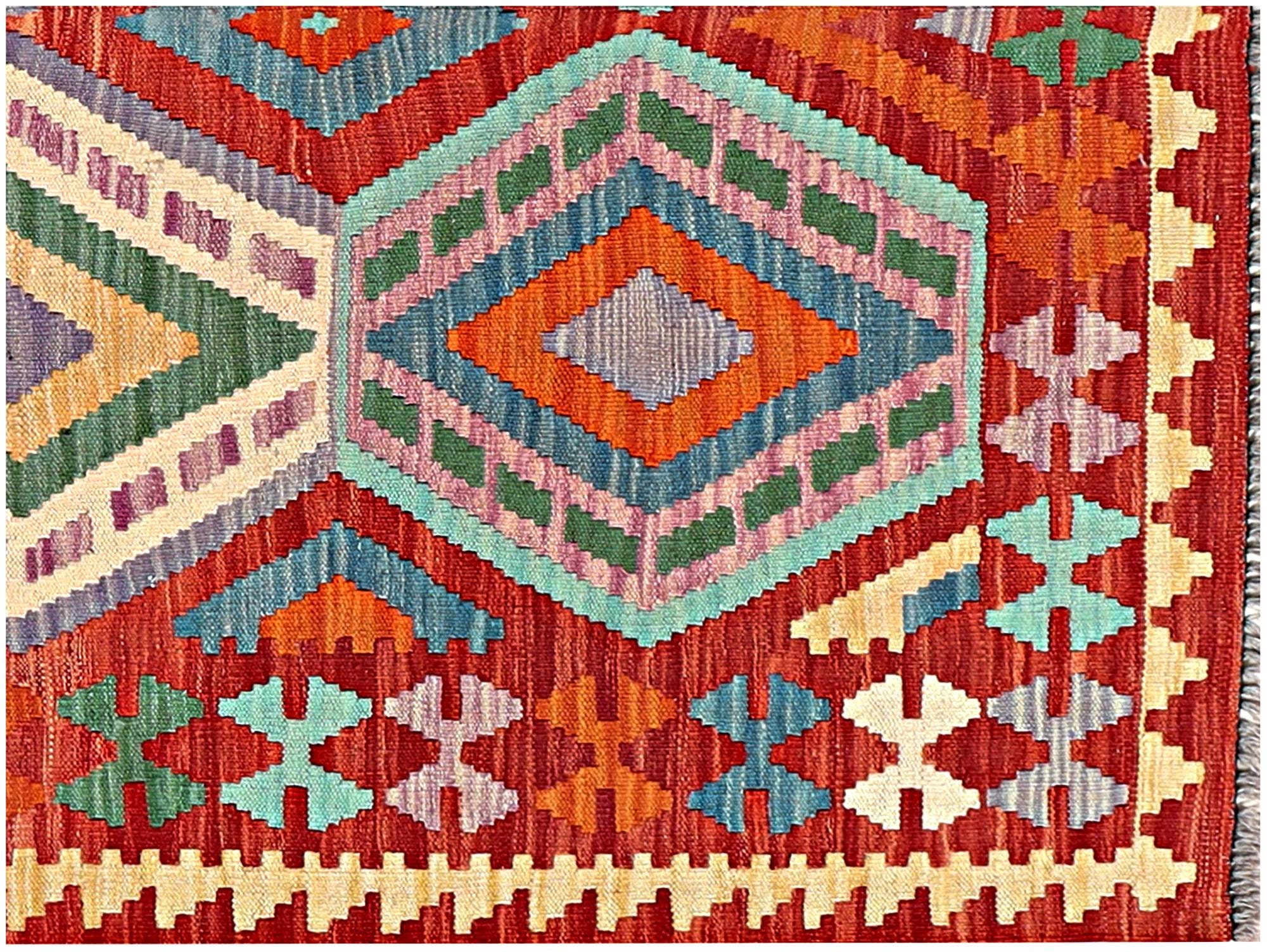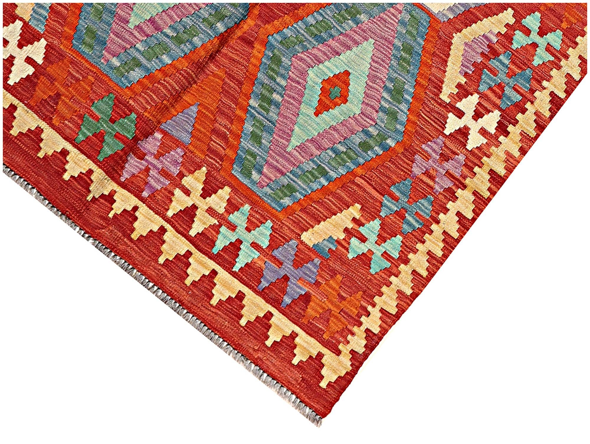 A brand new very high quality multicolour 100% handmade flatwoven traditional wool on wool Afghan kilim rug.