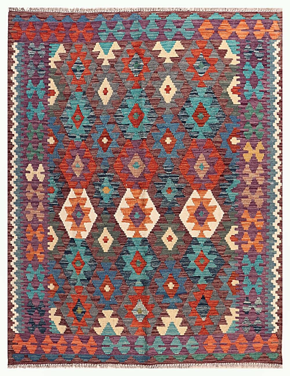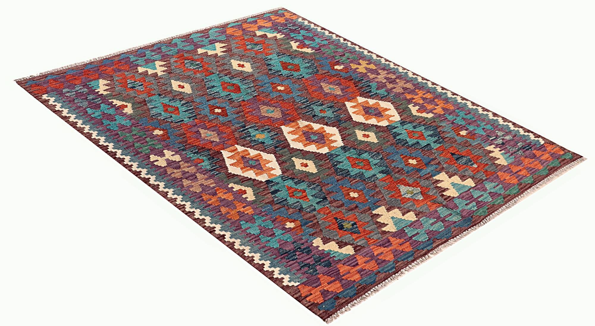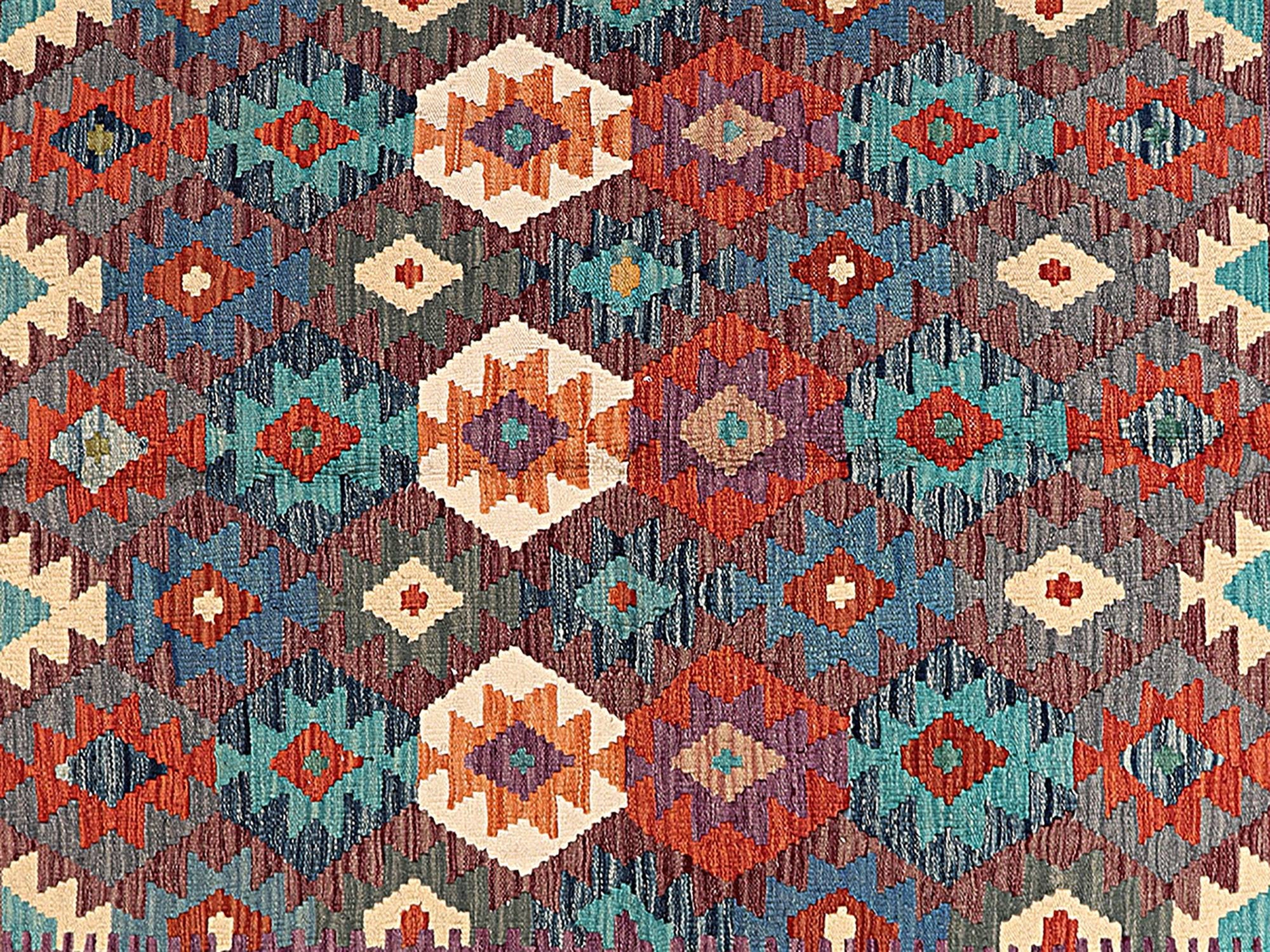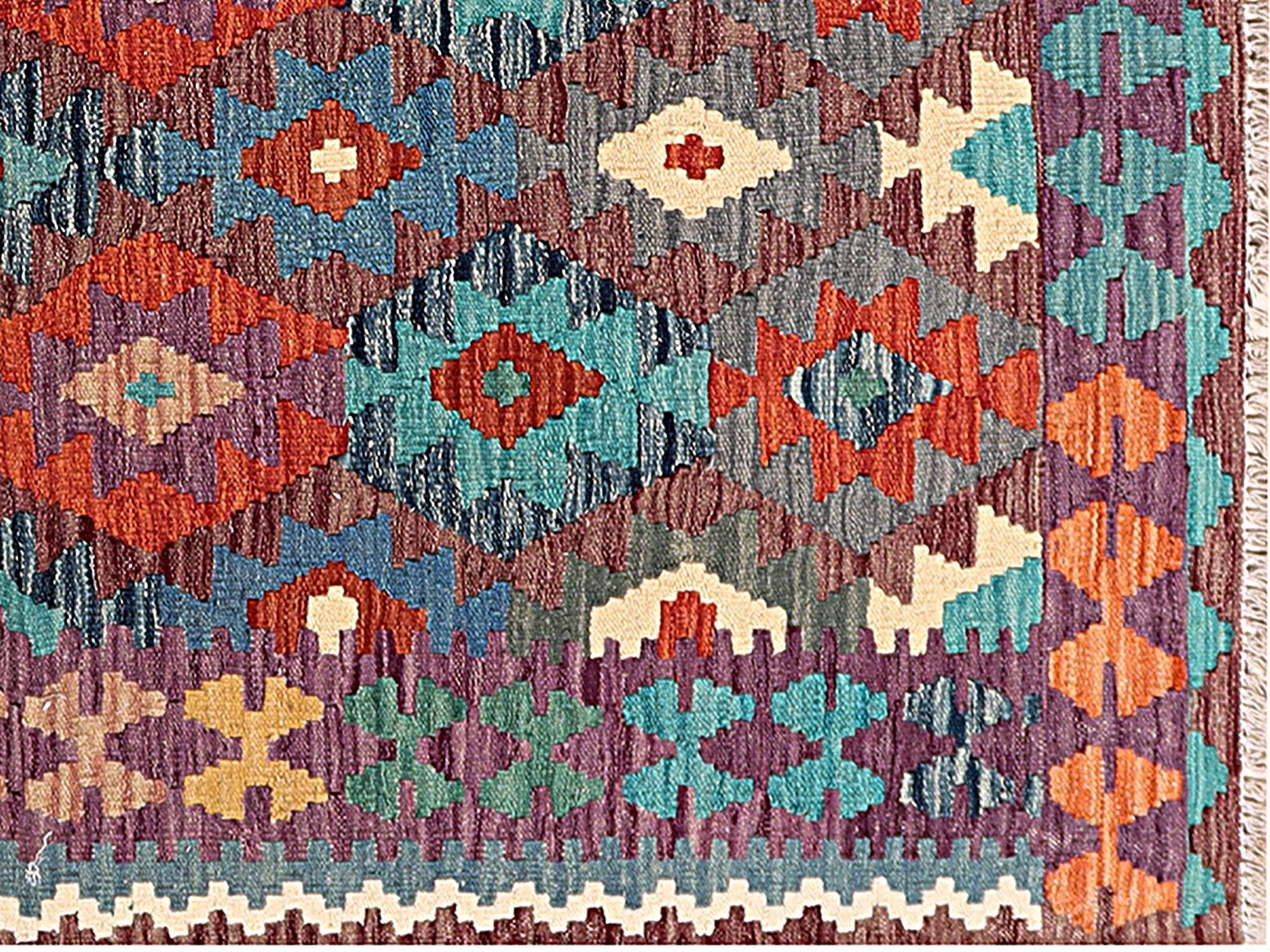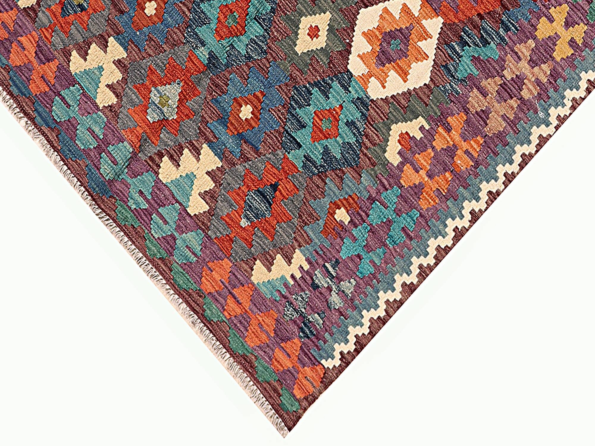 A brand new very high quality multicolour 100% authentic handmade flatwoven traditional wool on cotton Afghan kilim rug.