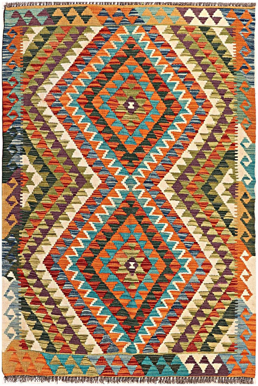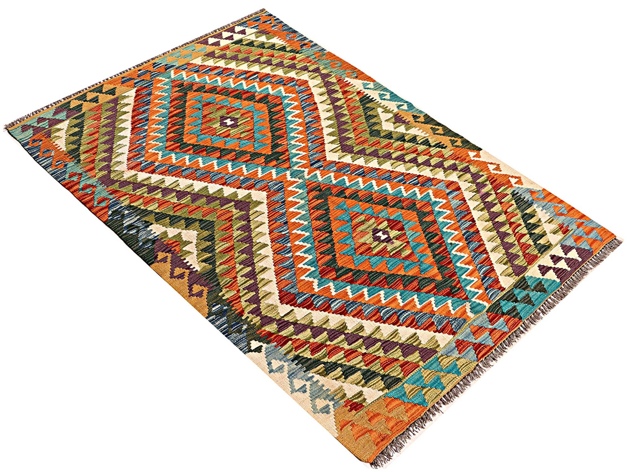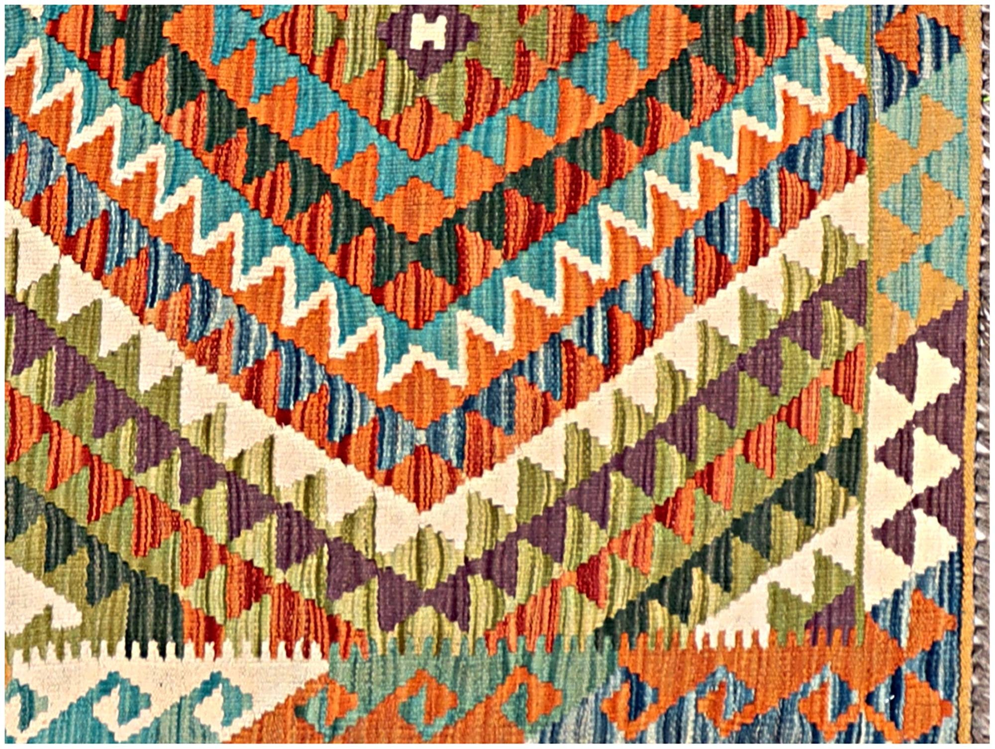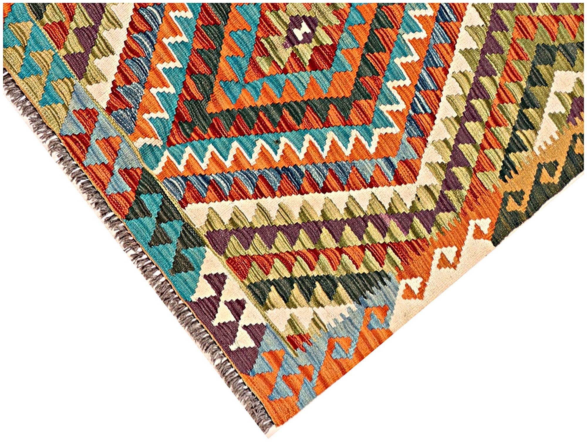 A brand new very high quality multicolour 100% handmade flatwoven traditional wool on wool Afghan kilim rug.