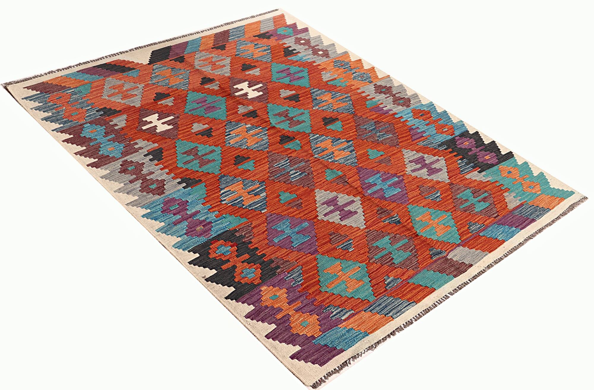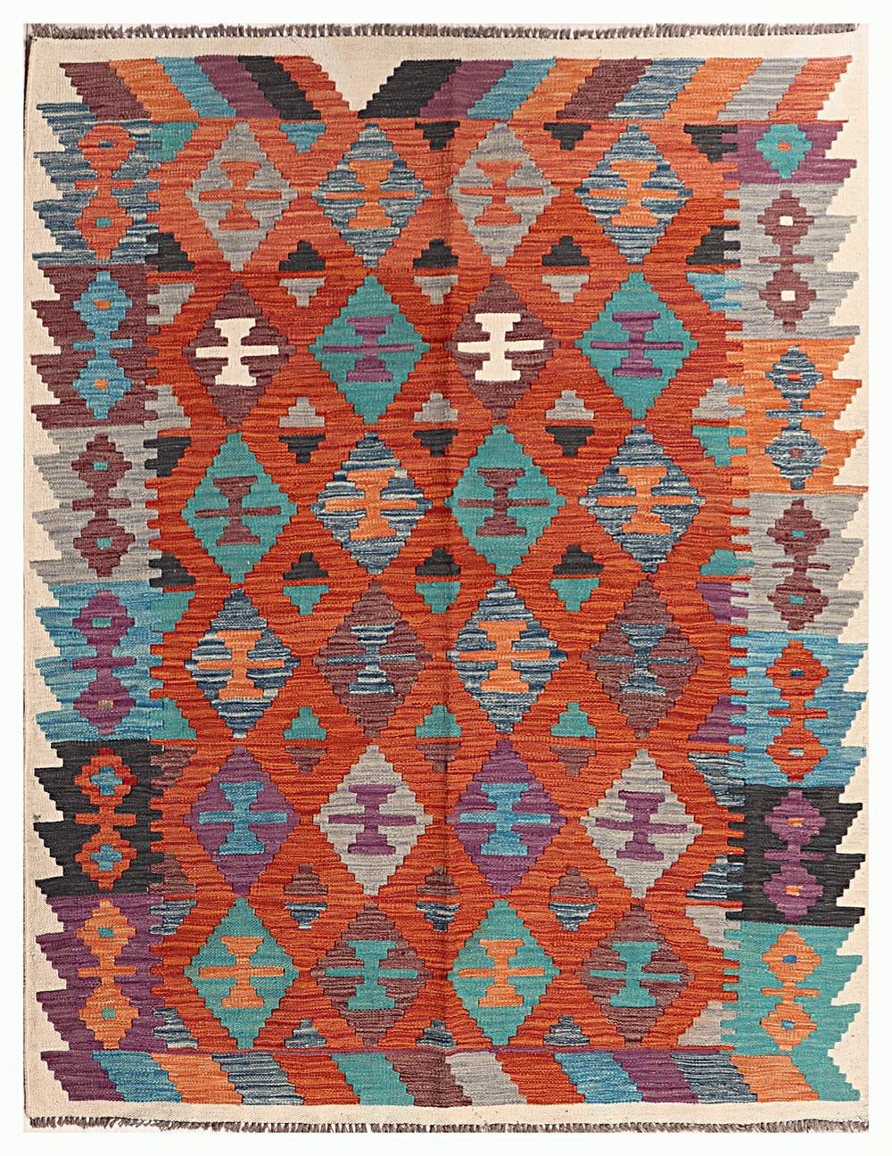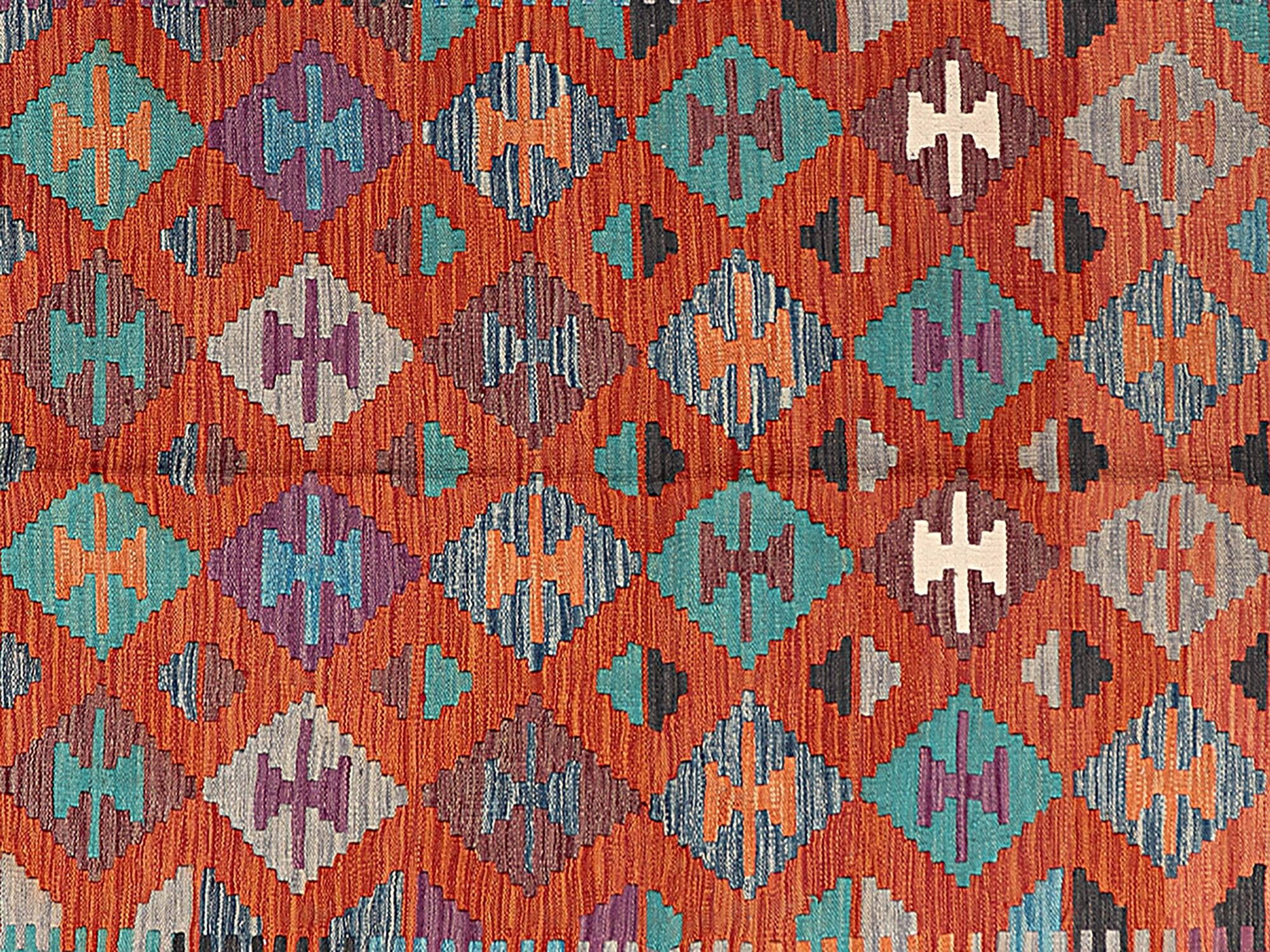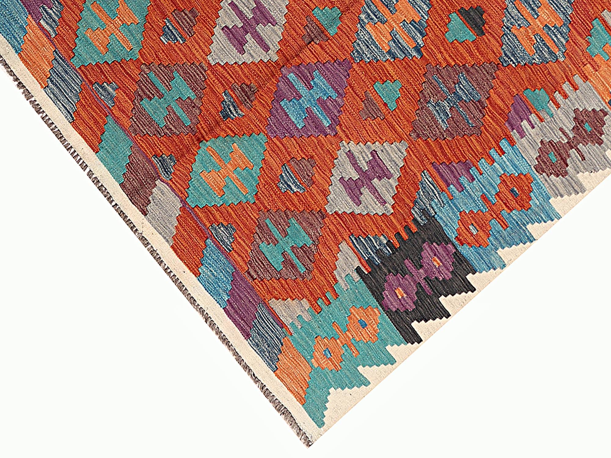A brand new very high quality multicolour 100% authentic handmade flatwoven traditional wool on wool Afghan kilim rug.