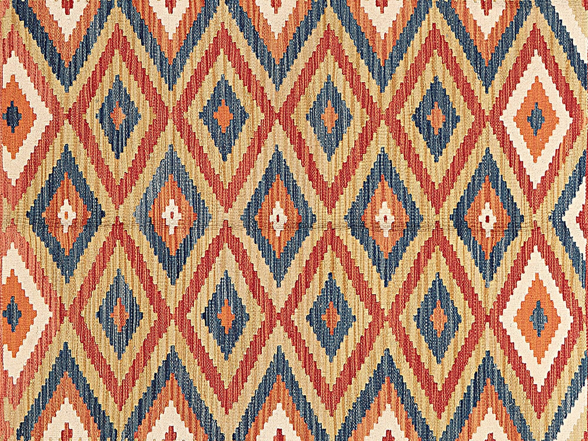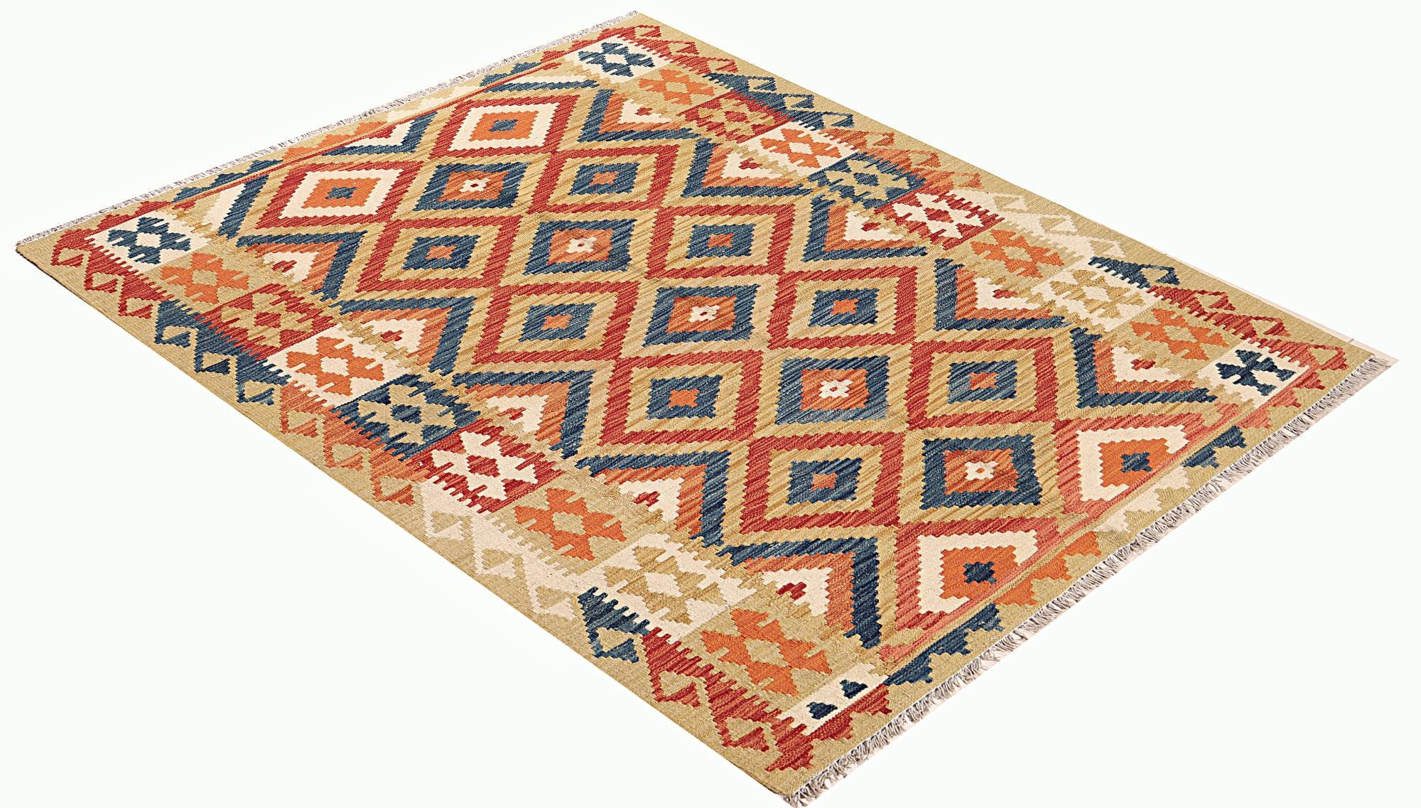 Because of being handmade and natural colours the rug will appear in different shades depending on the light in the room and that's the quality of the real handmade rug and natural colours. Kilim rugs are contemporary rugs which can be used for both modern and traditional settings. They have reversible feature which means you can use both sides of the rug. Very hard wearing rug and a good value for money.