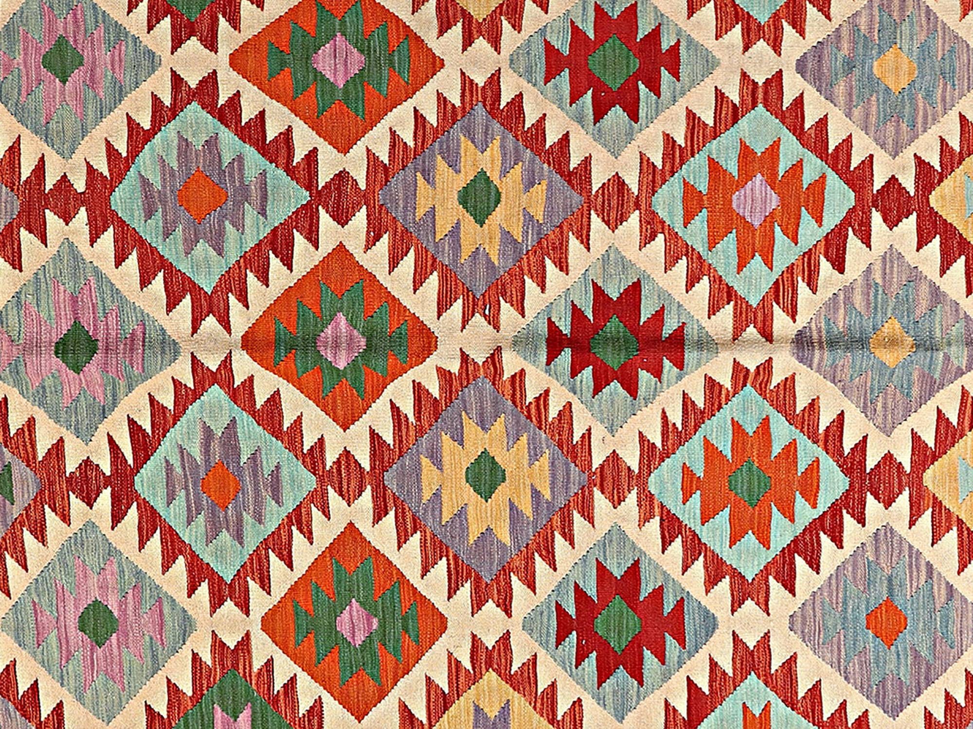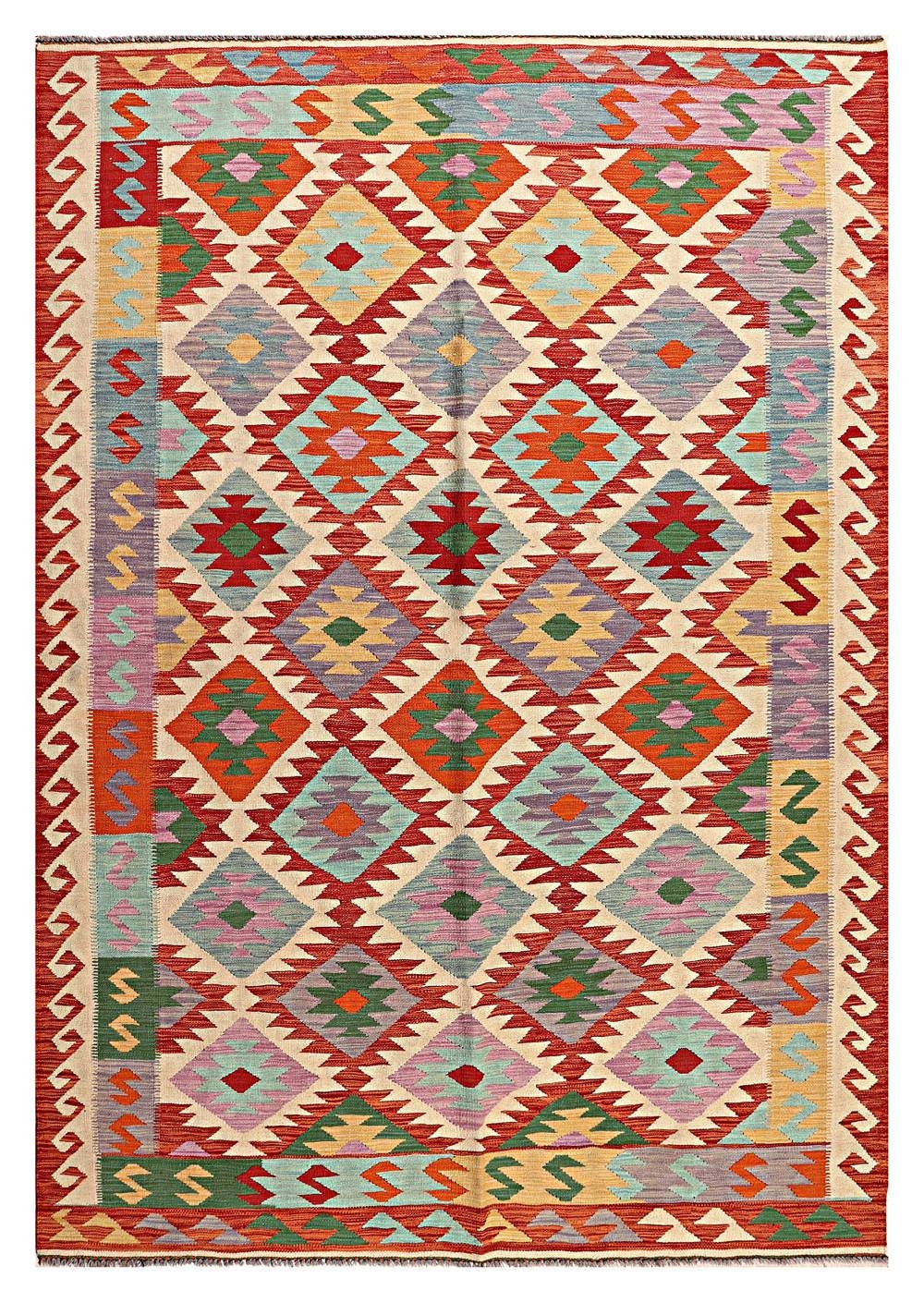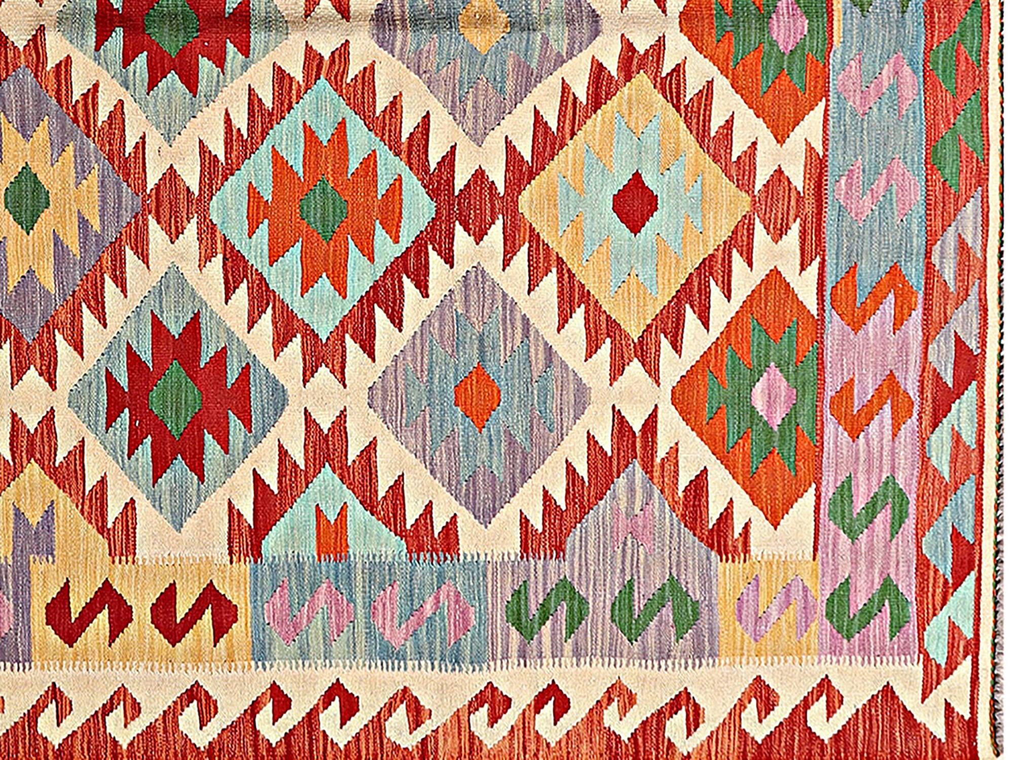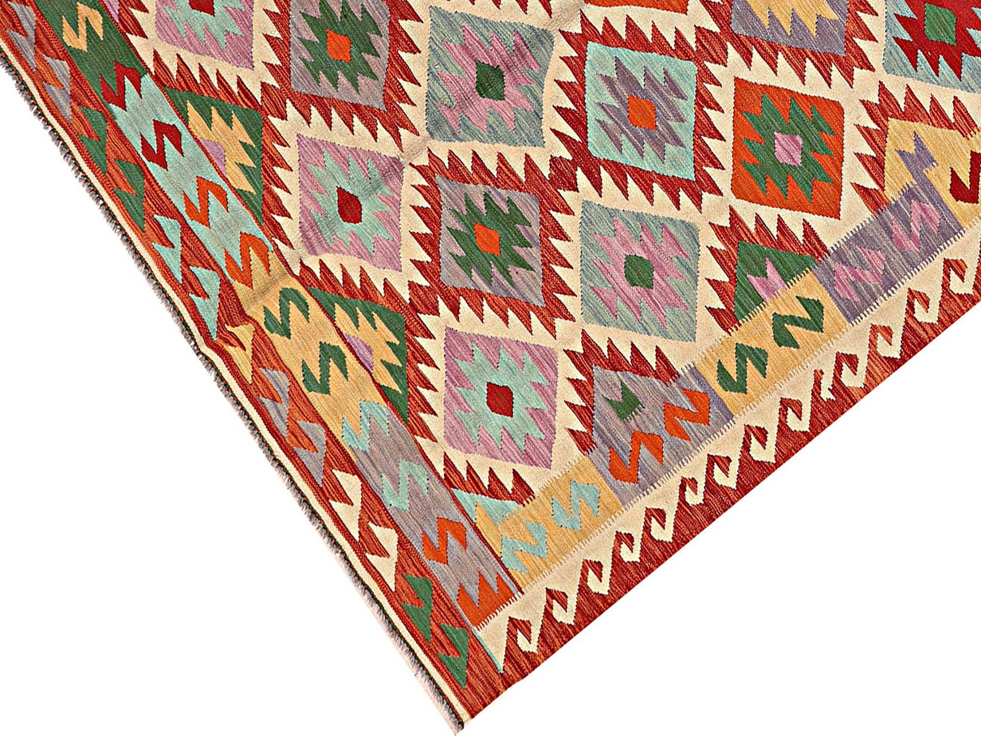 A brand new very high quality multicolour 100% handmade flatwoven traditional wool on wool Afghan kilim rug.
