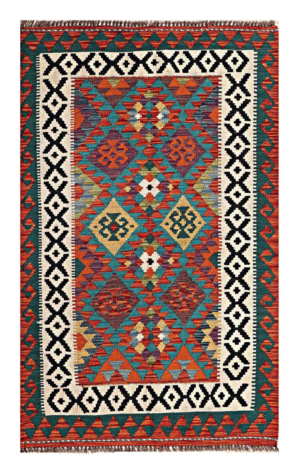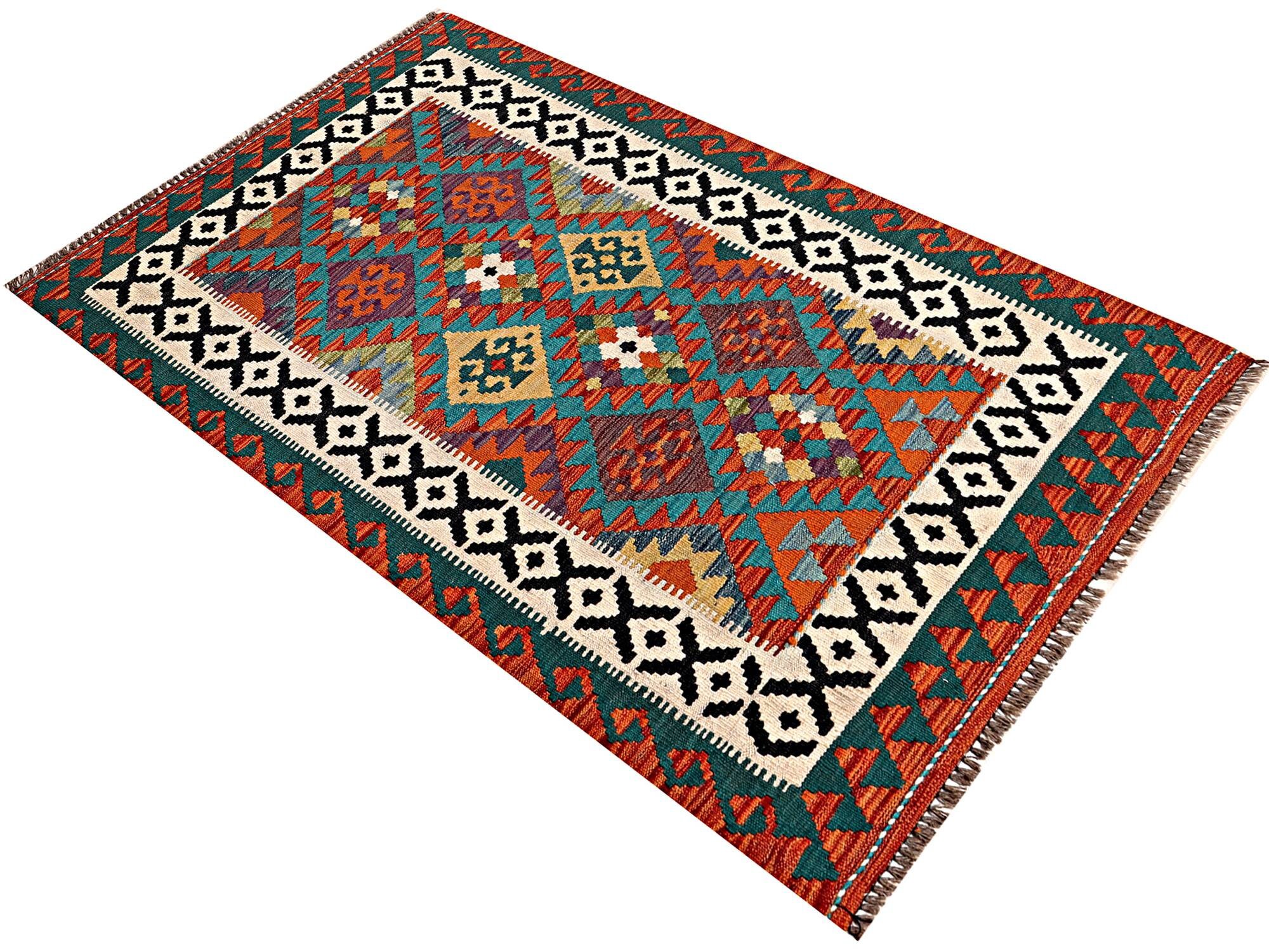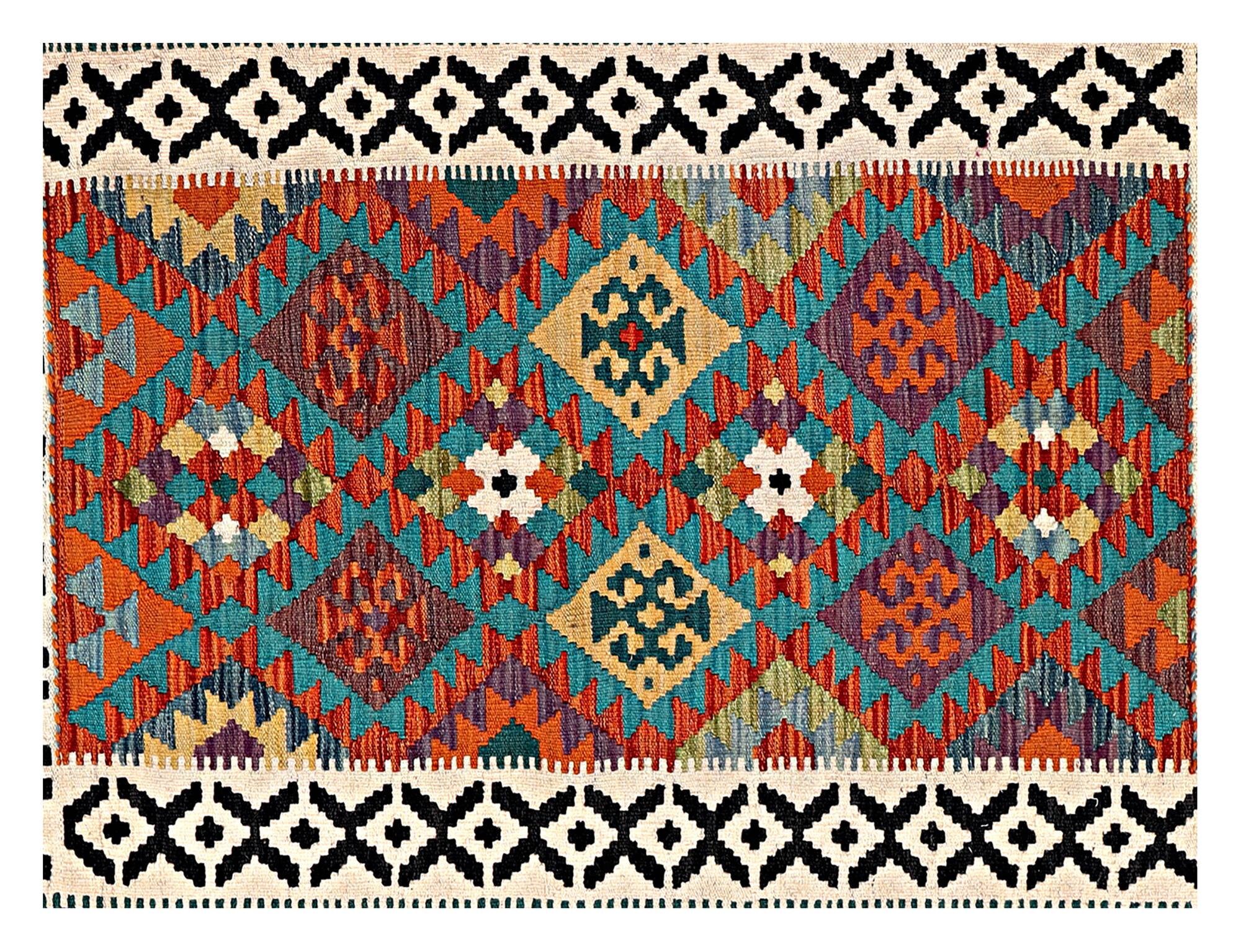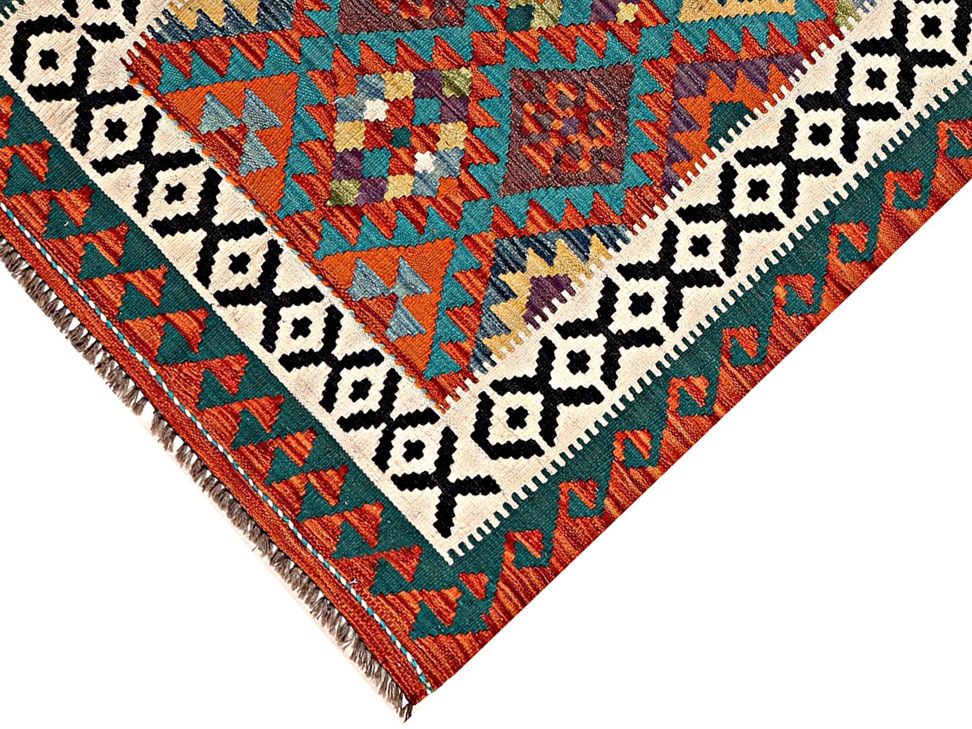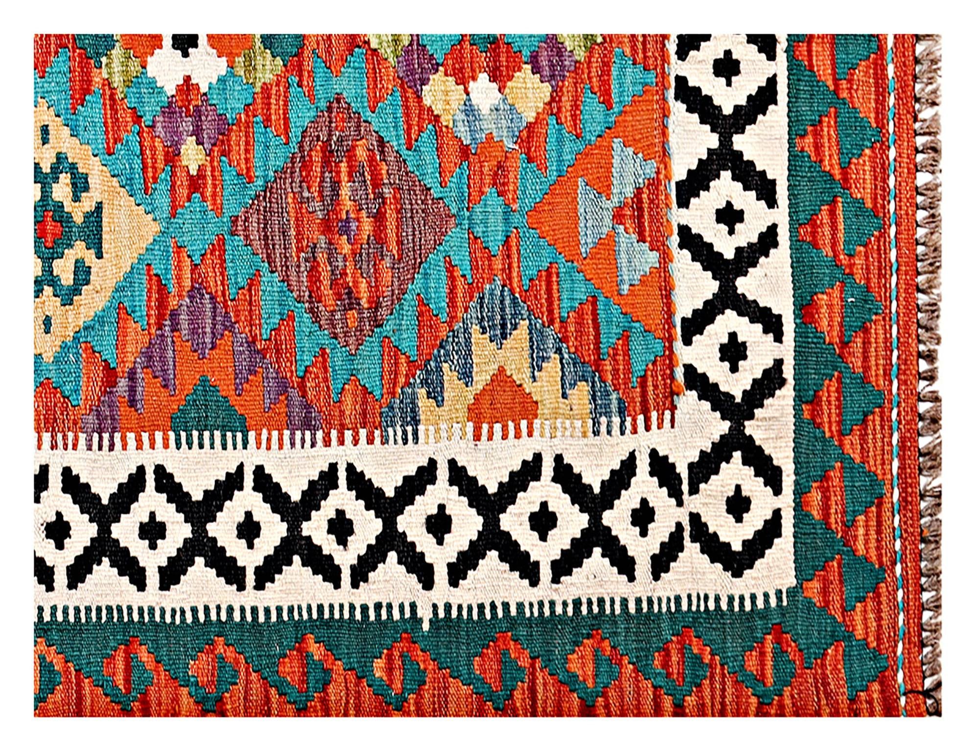 A brand new very high quality multicolour 100% authentic handmade flatwoven traditional wool on wool Afghan kilim rug.