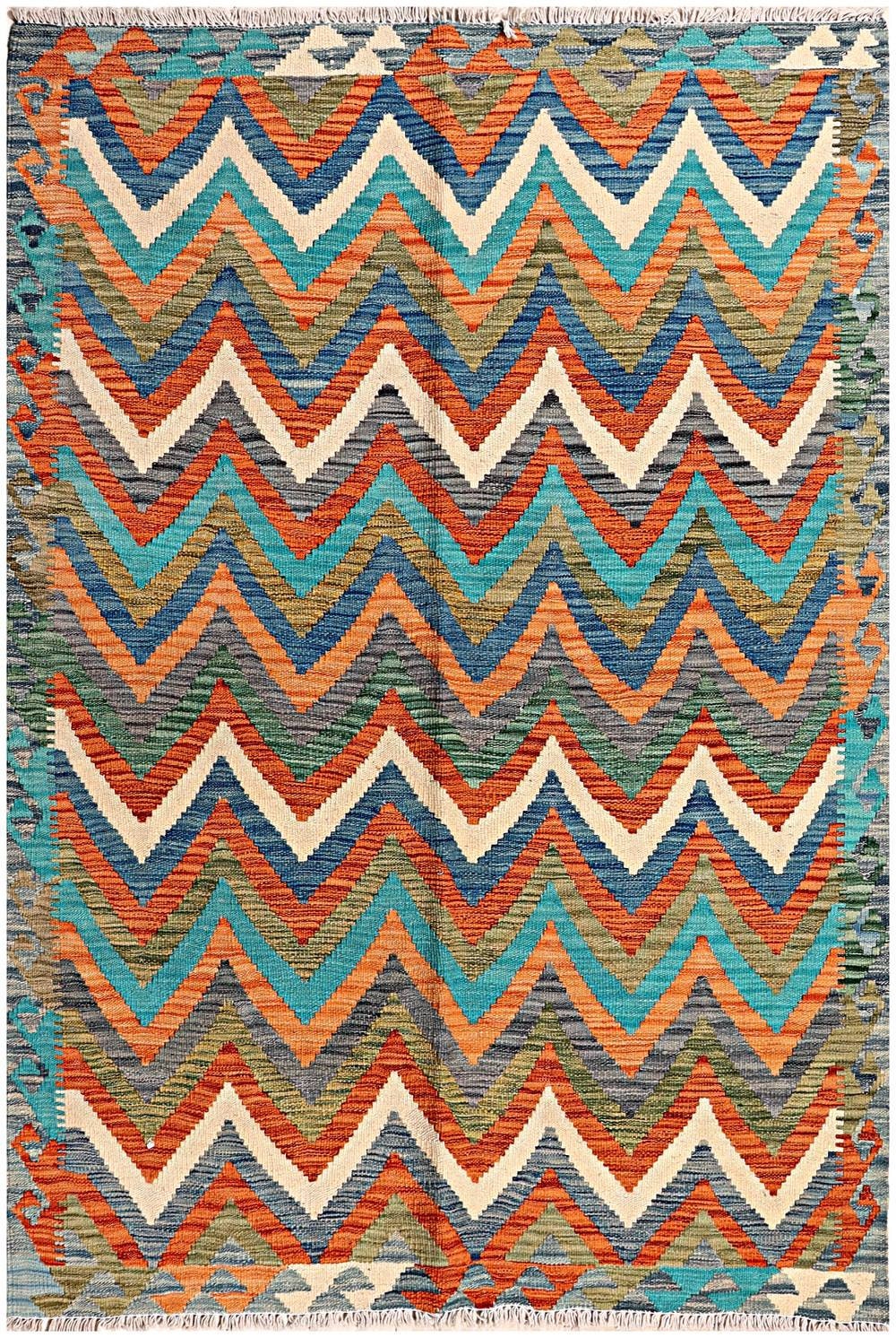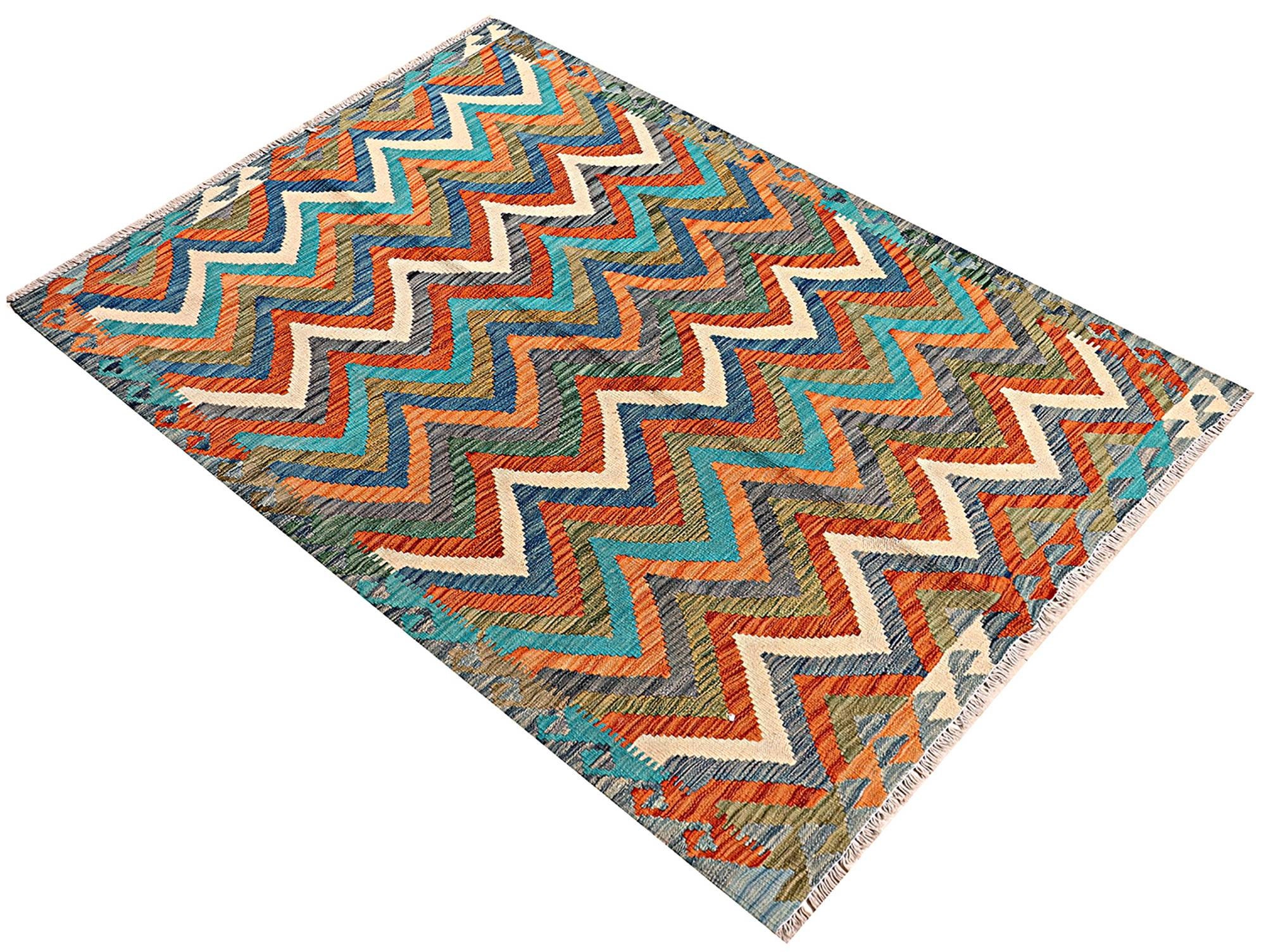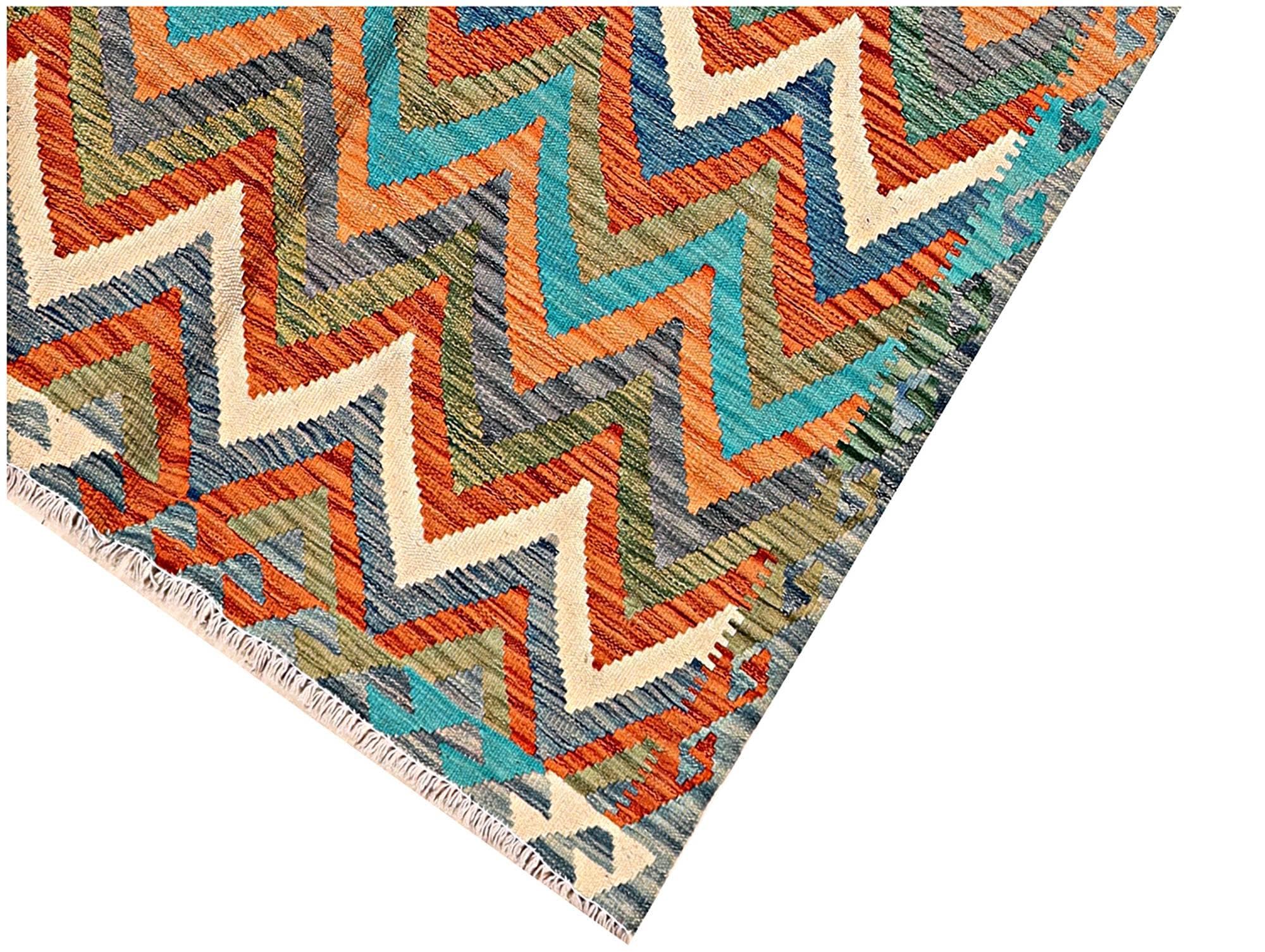 A brand new very high quality multicolour 100% handmade flatwoven traditional wool on wool Afghan kilim rug. Made using highest quality hand spun natural sheep wool and organic vegetable dyes. Traditional Asiatic nomadic weaving techniques were used to finish this beautiful piece of pure craftsmanship. Each and every rug is 100% handmade which makes them one of a kind and unique. Kilim rugs are contemporary rugs which can be used for both modern and traditional settings. They have reversible feature which means you can use both sides of the rug. Very hard wearing and a good value for money. Our products are very fine quality, 100% authentic, entirely handmade and guaranteed fair trade.