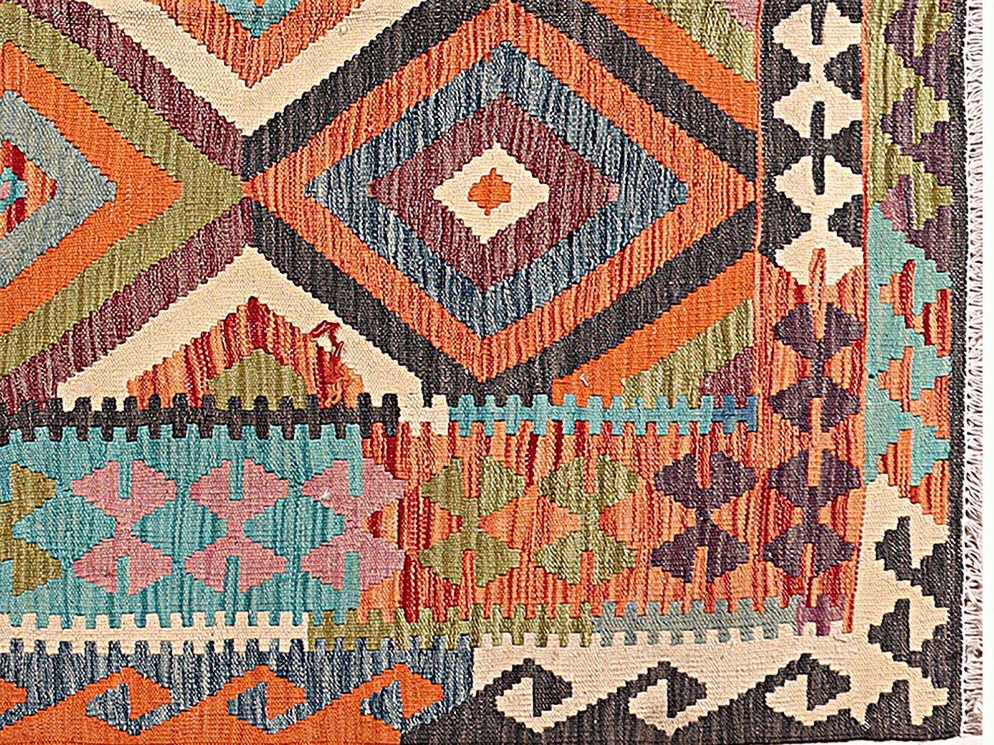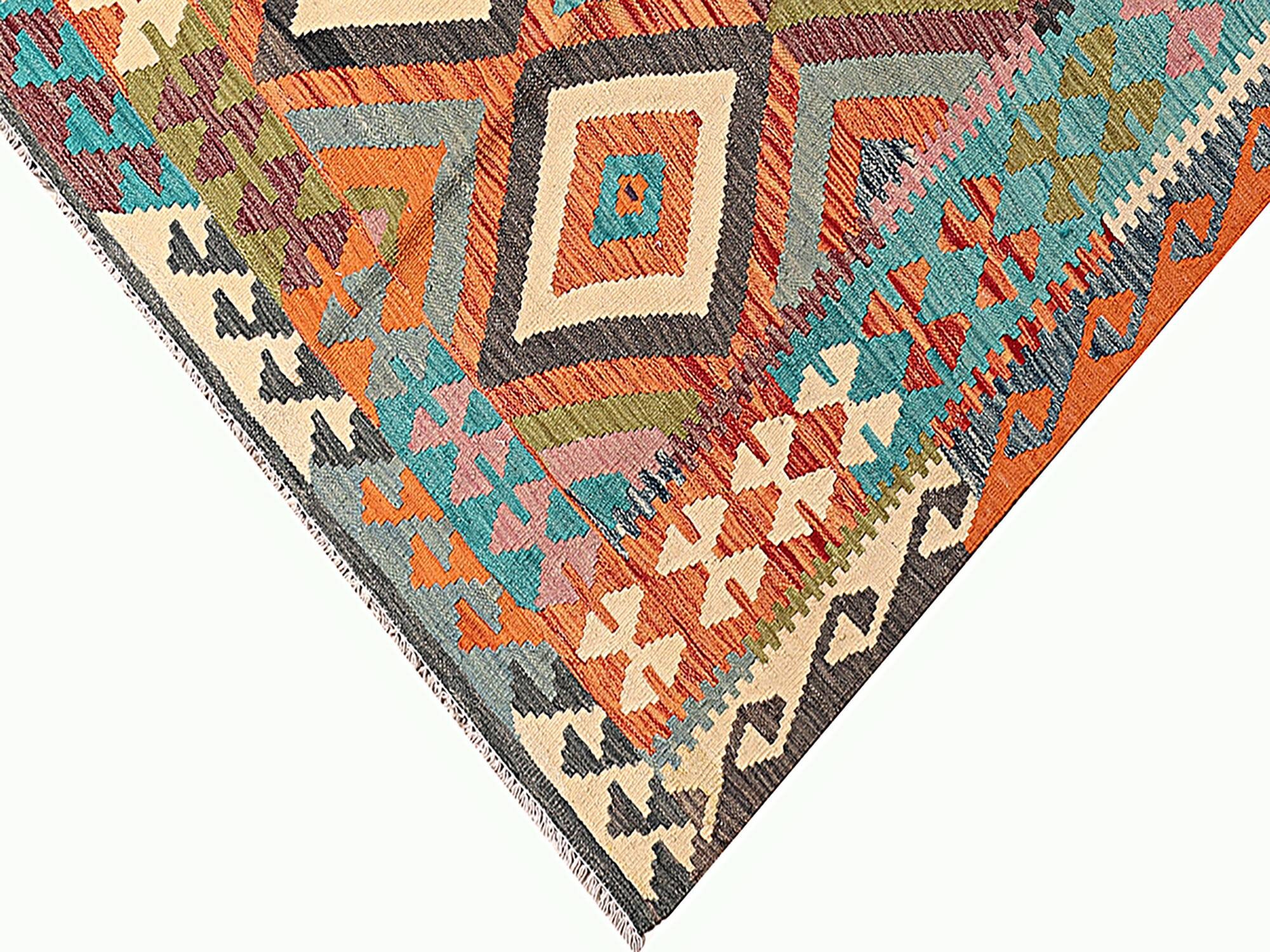 A brand new very high quality multicolour 100% handmade contemporary flatwoven traditional wool on cotton Afghan kilim rug.