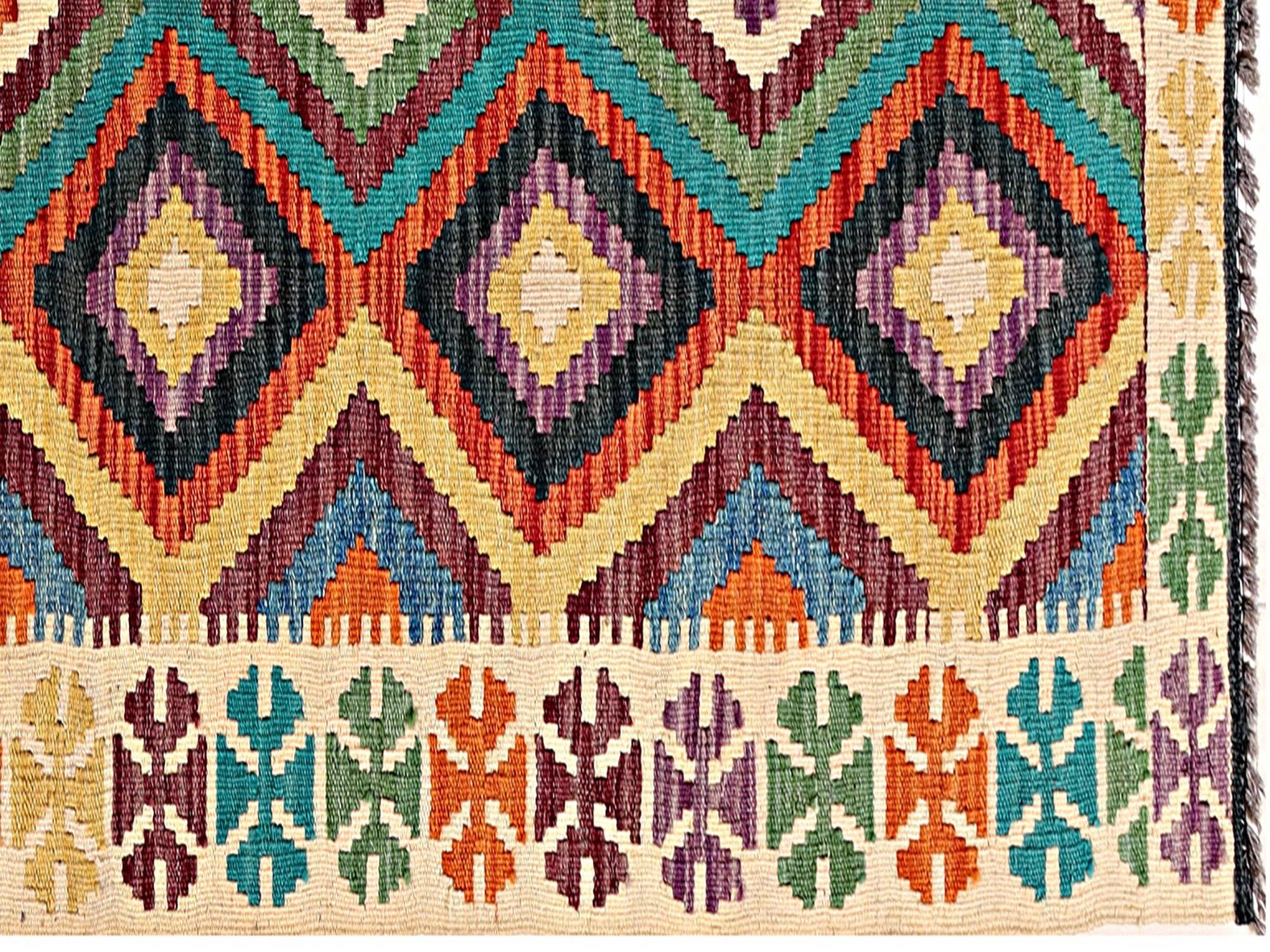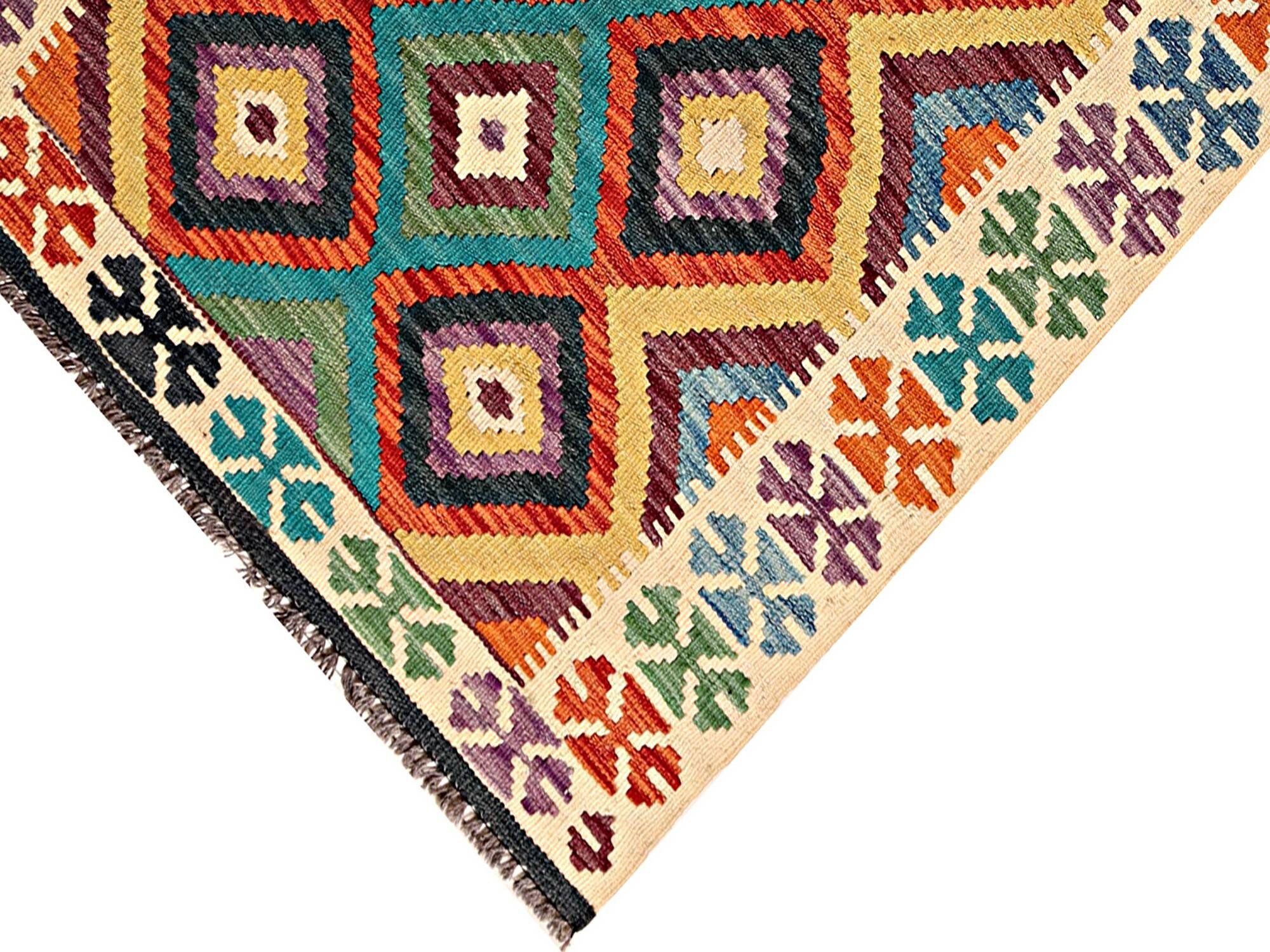 A brand new very high quality multicolour 100% handmade contemporary flatwoven traditional wool on wool Afghan kilim rug.