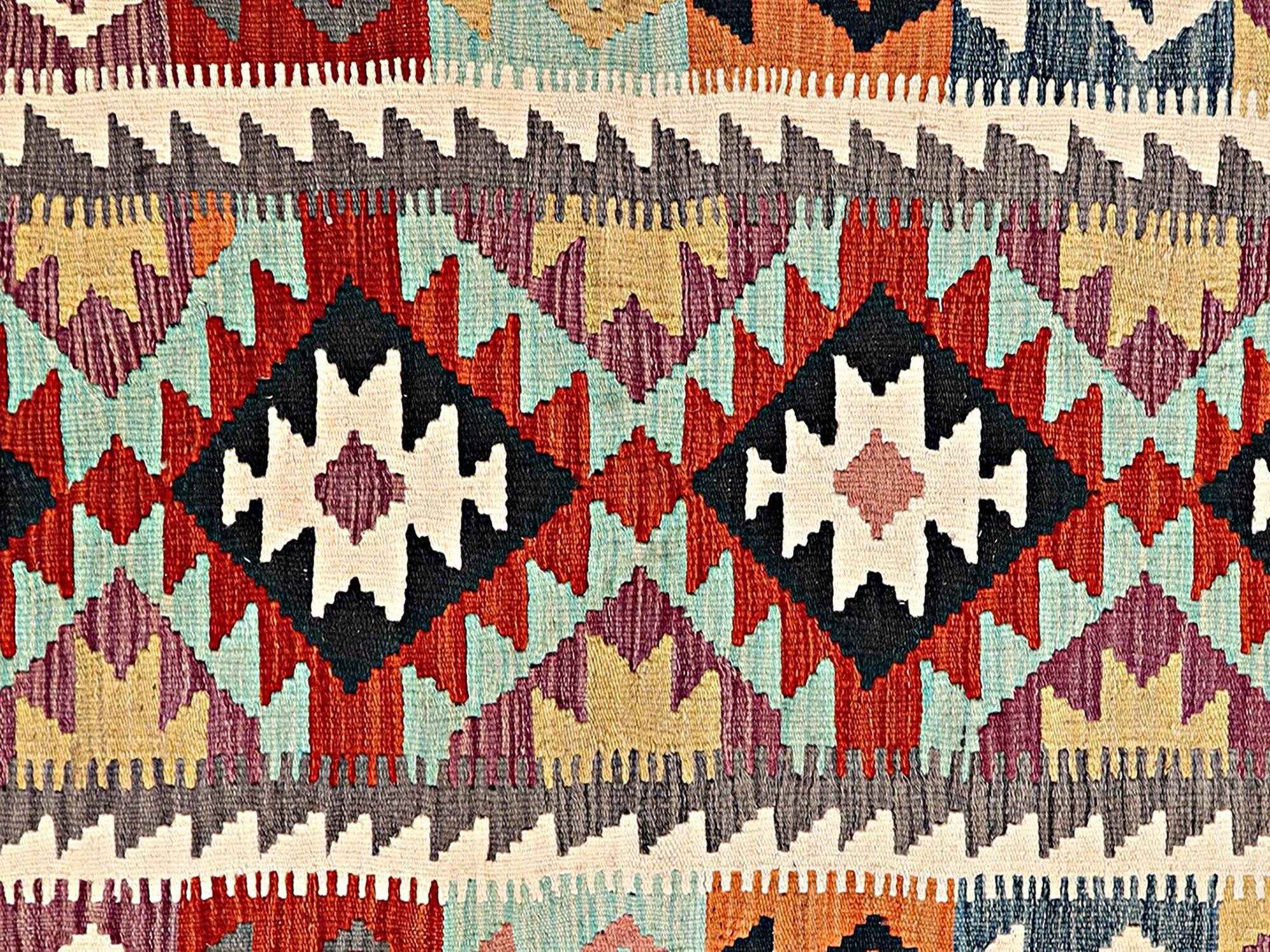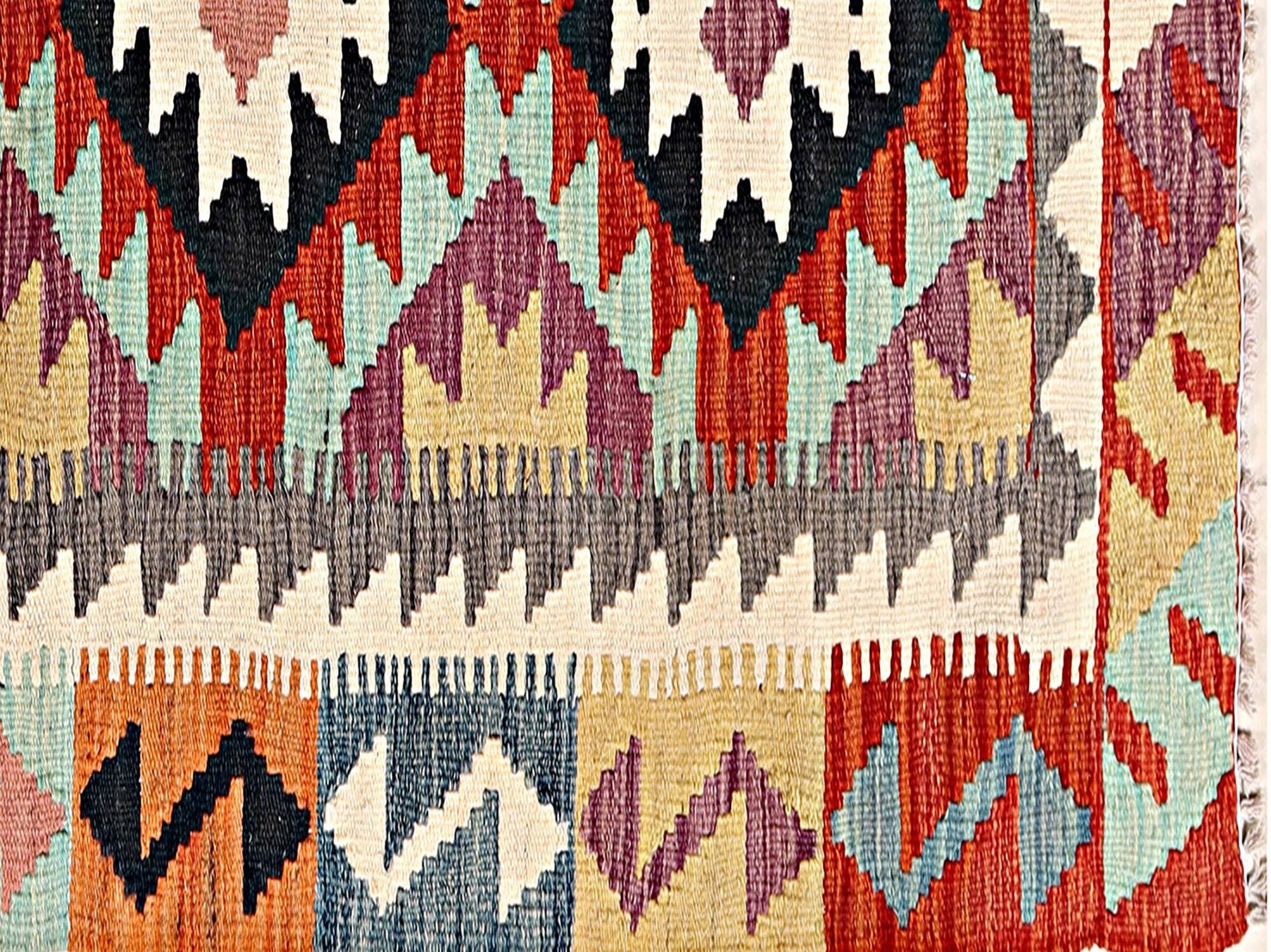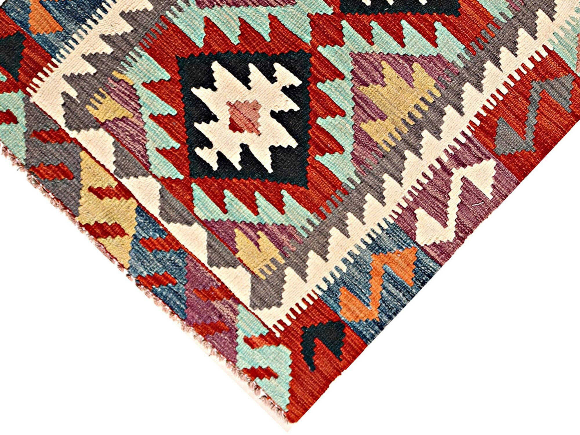 This rug is 100% handmade which makes them one of a kind and unique. Kilim rugs are contemporary rugs which can be used for both modern and traditional settings. They have reversible feature which means you can use both sides of the rug. Very hard wearing rug and a good value for money.