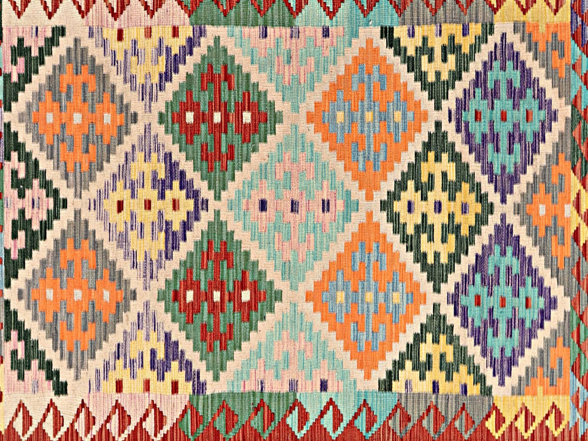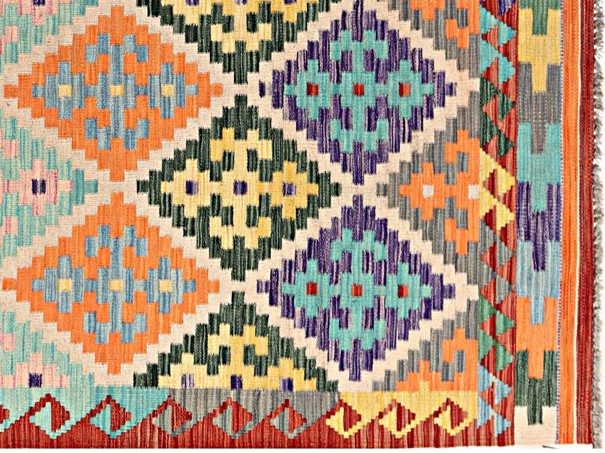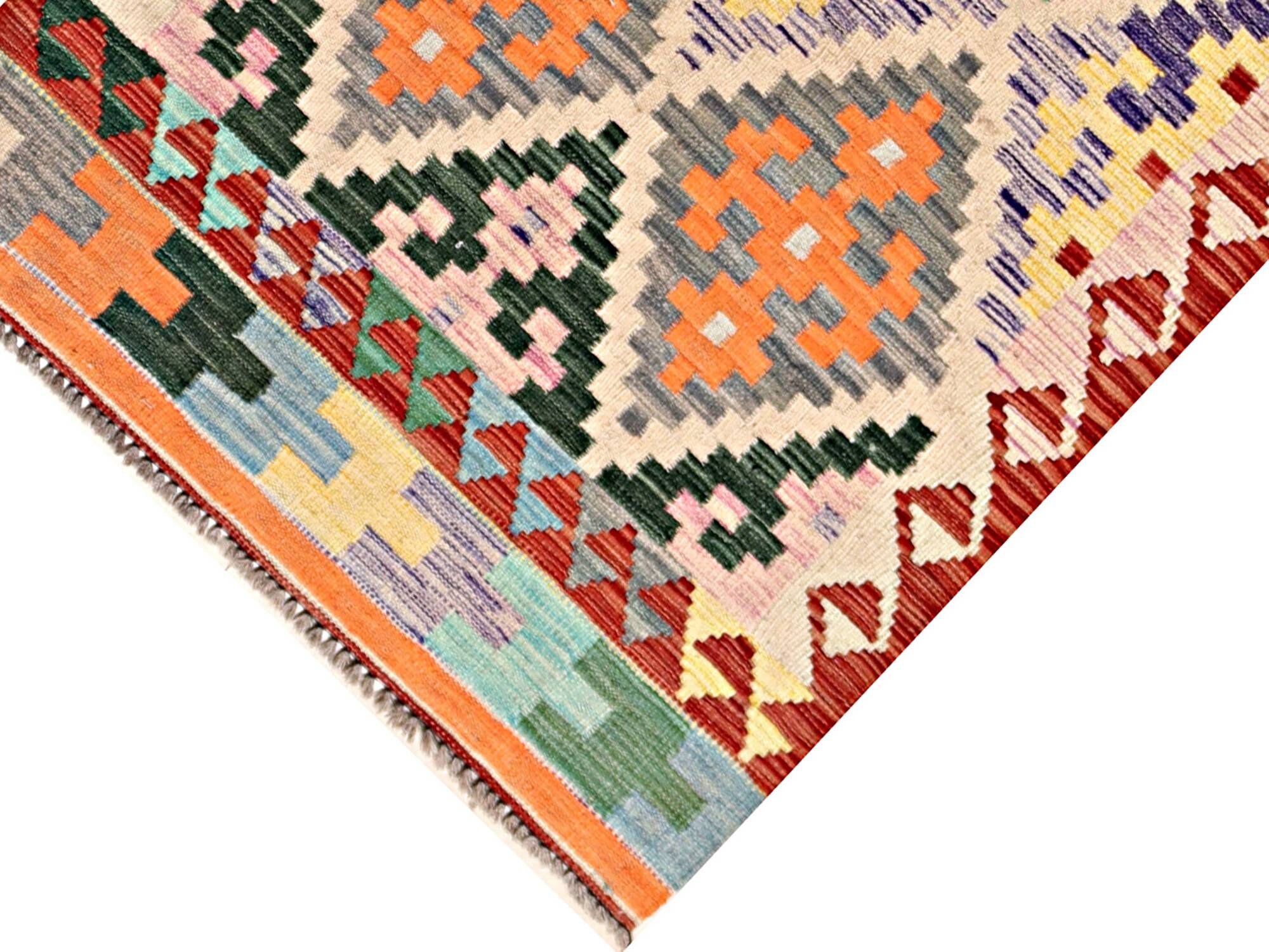 A brand new very high quality multicolour 100% handmade contemporary flatwoven traditional wool on wool Afghan kilim rug.