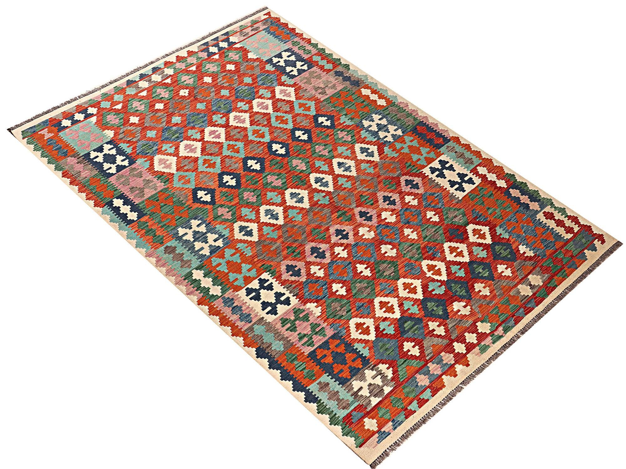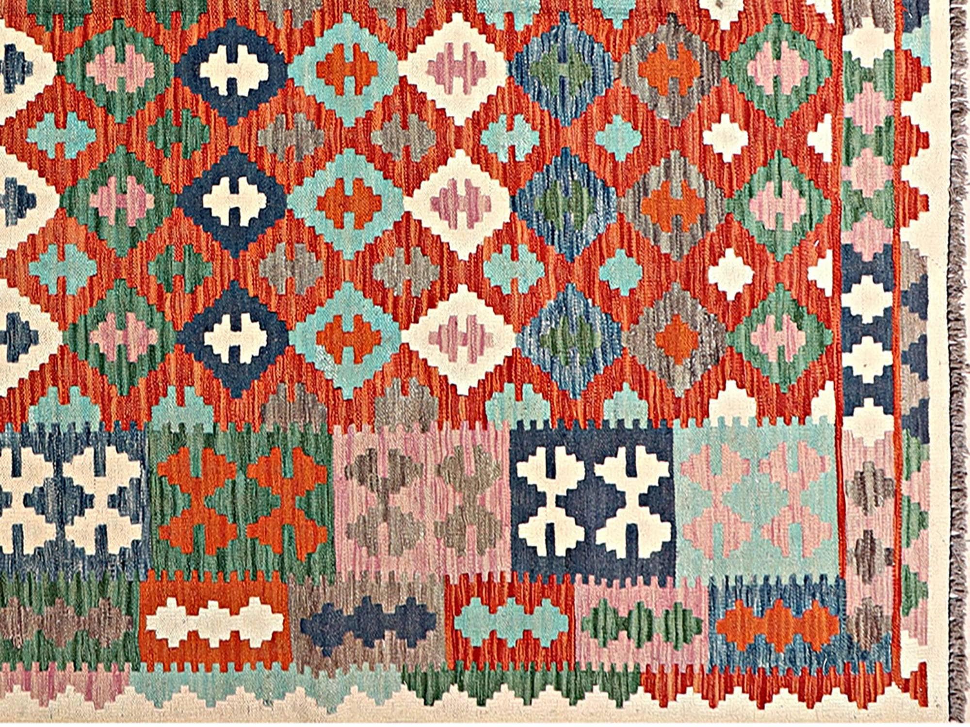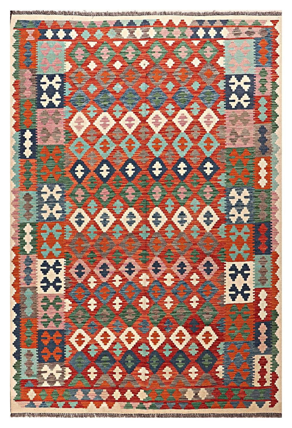 A brand new very high quality multicolour 100% handmade flatwoven traditional wool on wool Afghan kilim rug.