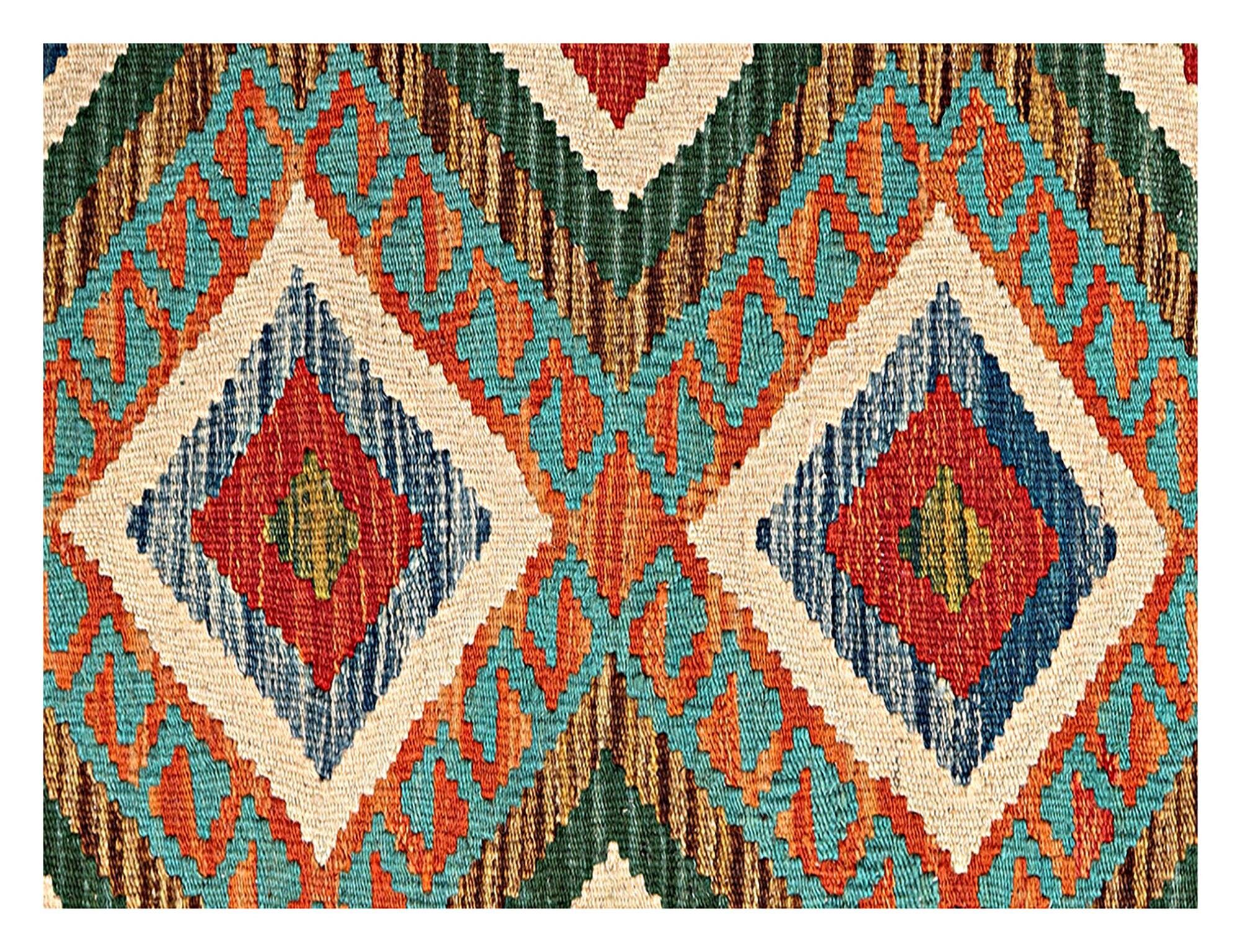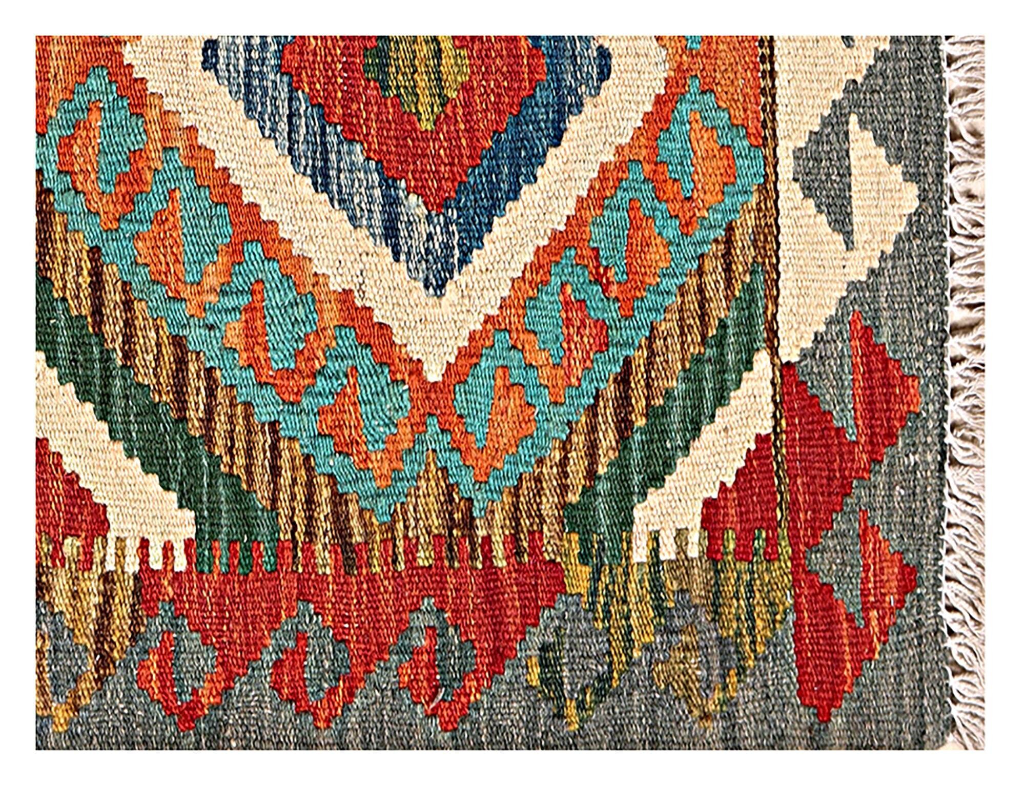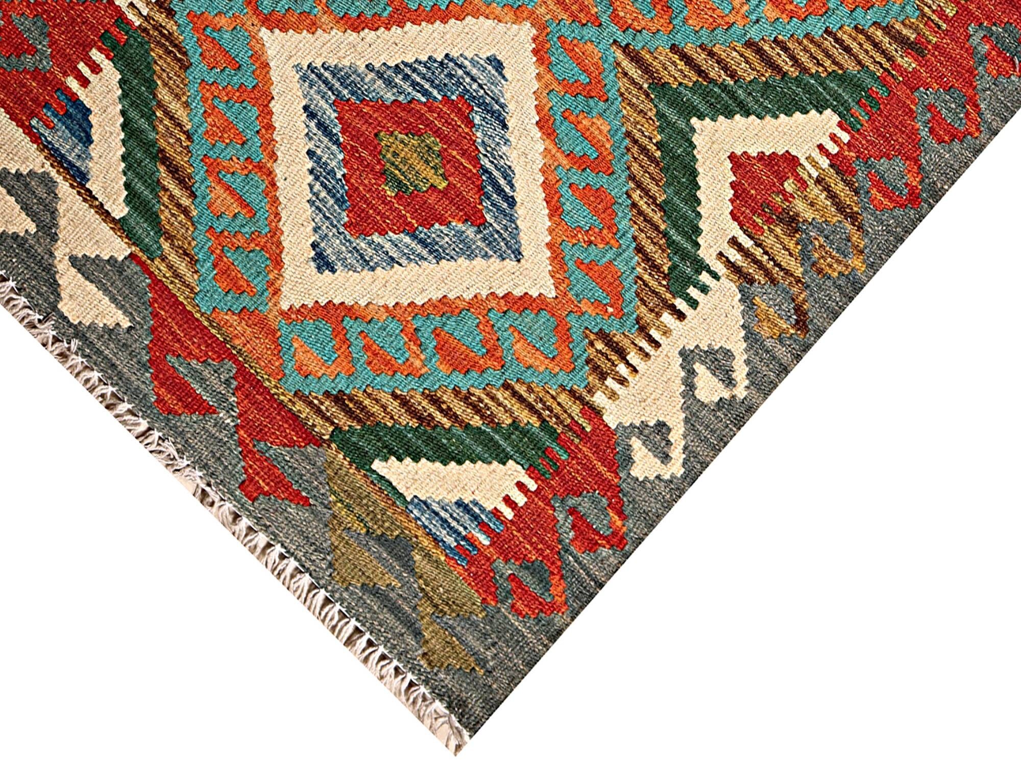 A brand new very high quality multicolour 100% handmade contemporary flatwoven traditional wool on cotton Afghan kilim rug.