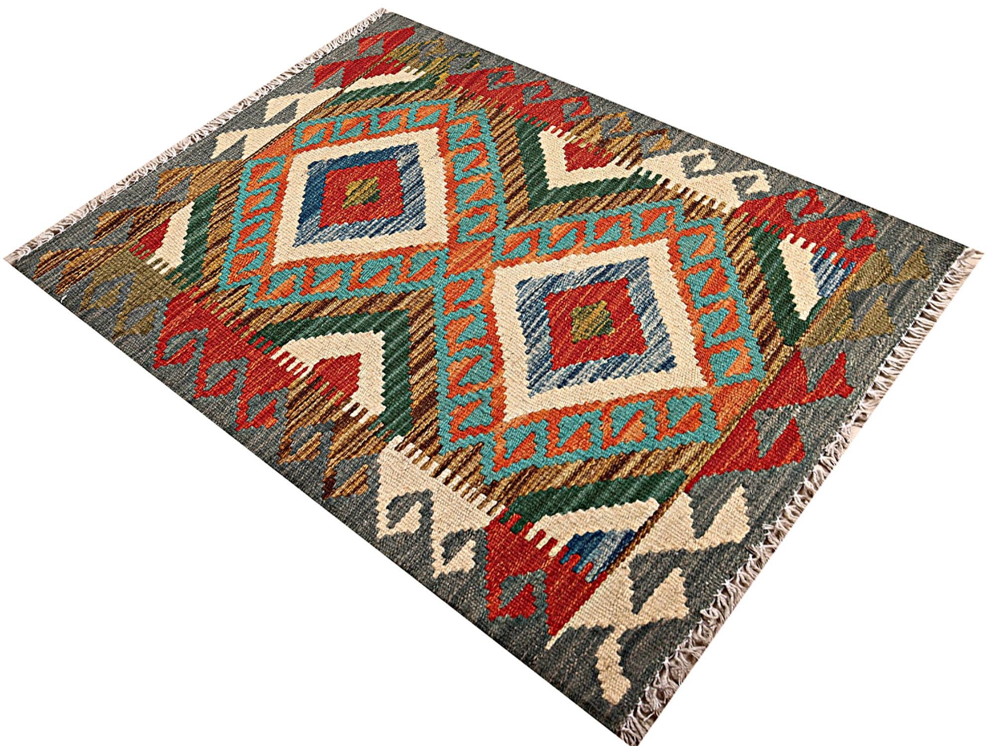 Made using highest quality soft hand spun natural sheep wool and organic vegetable dyes. Traditional Asiatic nomadic weaving techniques were used to finish this beautiful piece of pure craftsmanship. This rug is 100% handmade which makes it one of a kind and unique. Kilim rugs are contemporary rugs which can be used for both modern and traditional settings. They have reversible feature which means you can use both sides of the rug. Very hard wearing rug and a good value for money.