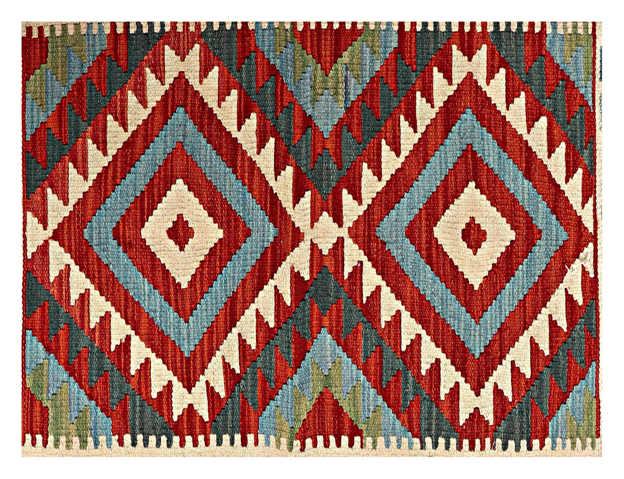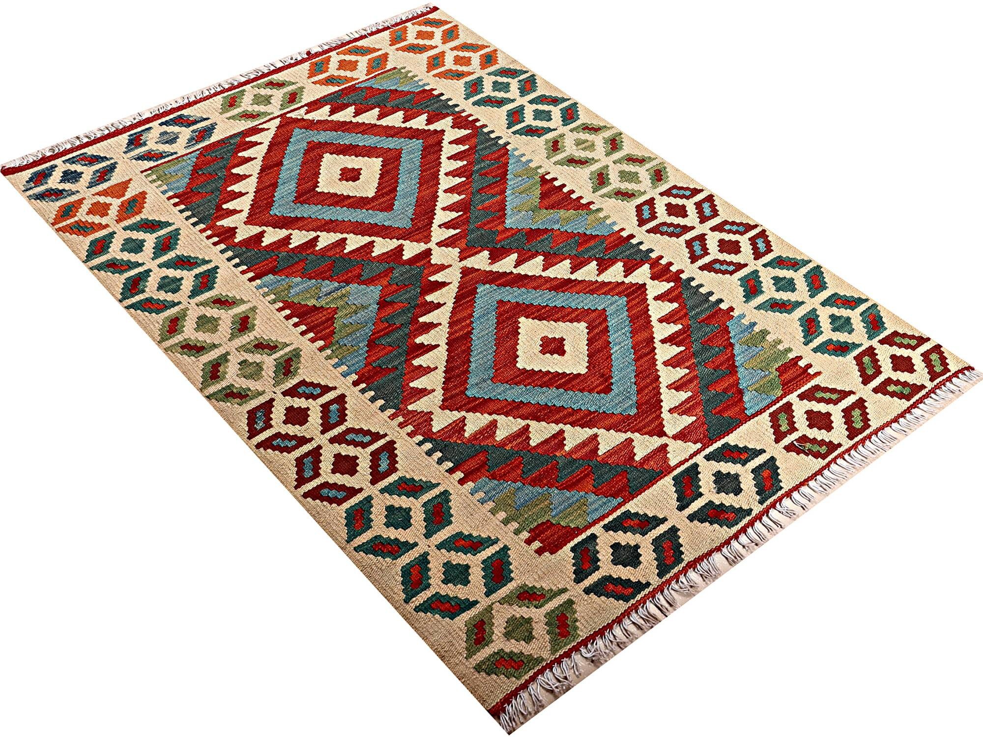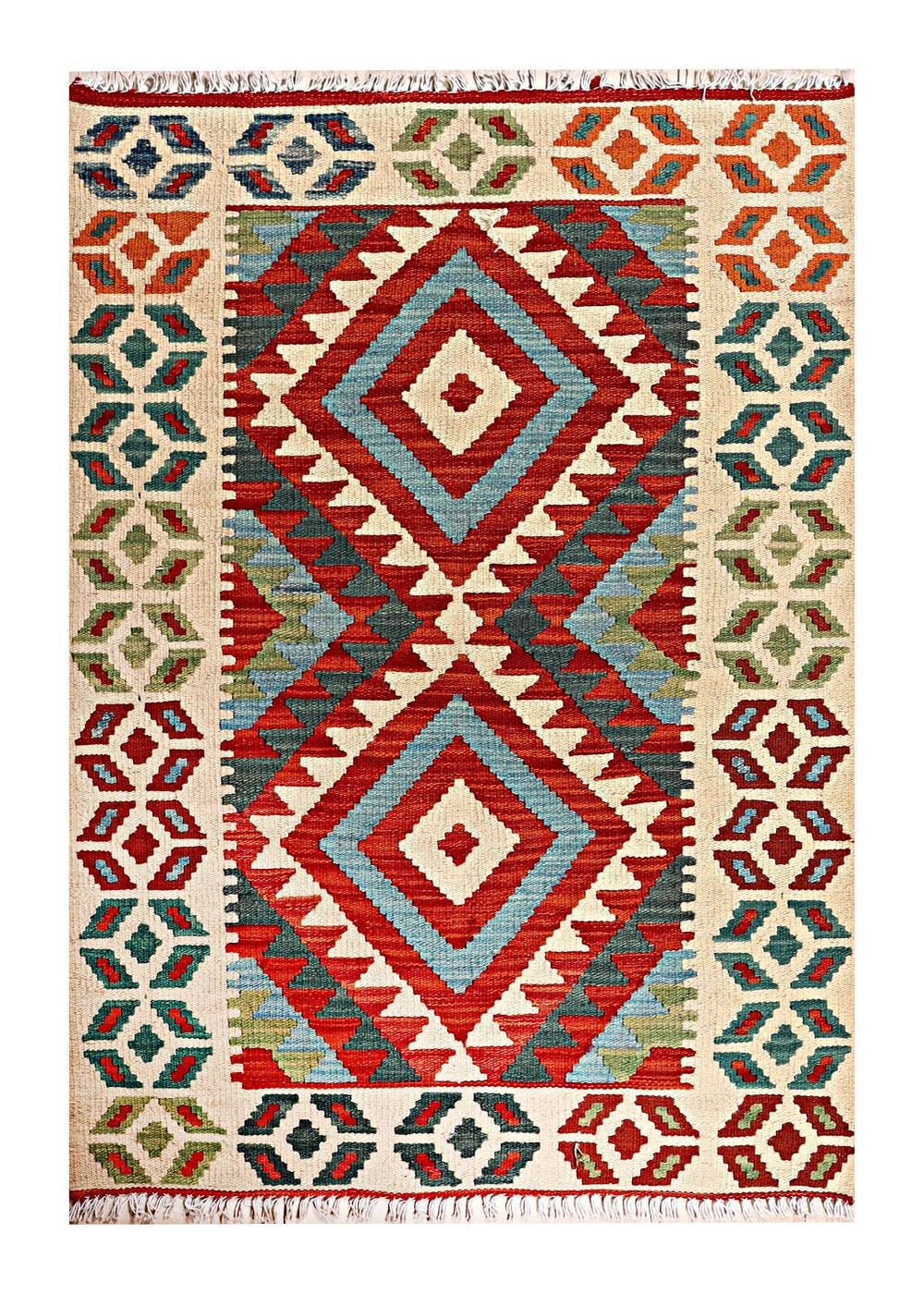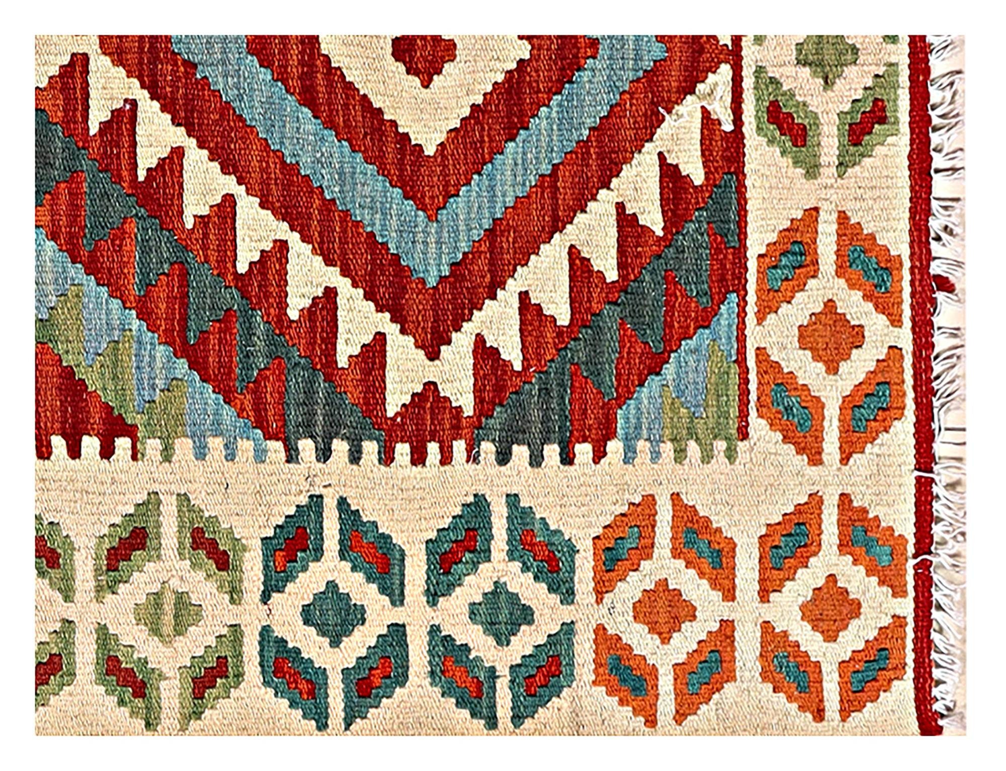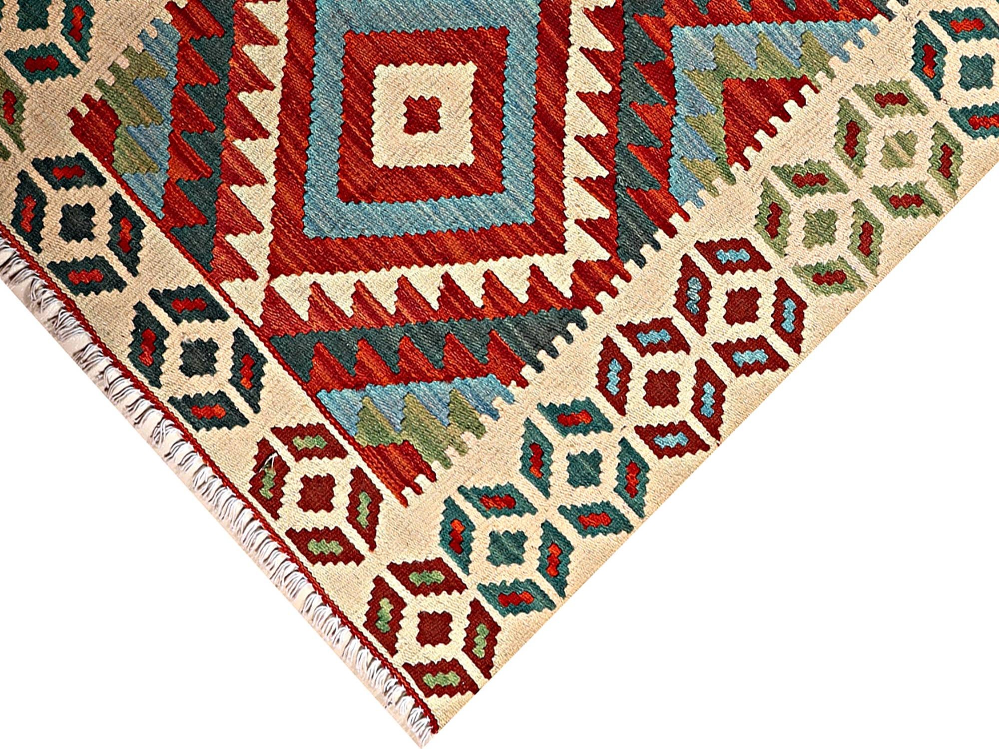 A brand new very high quality multicolour 100% authentic handmade flatwoven traditional wool on cotton Afghan kilim rug.