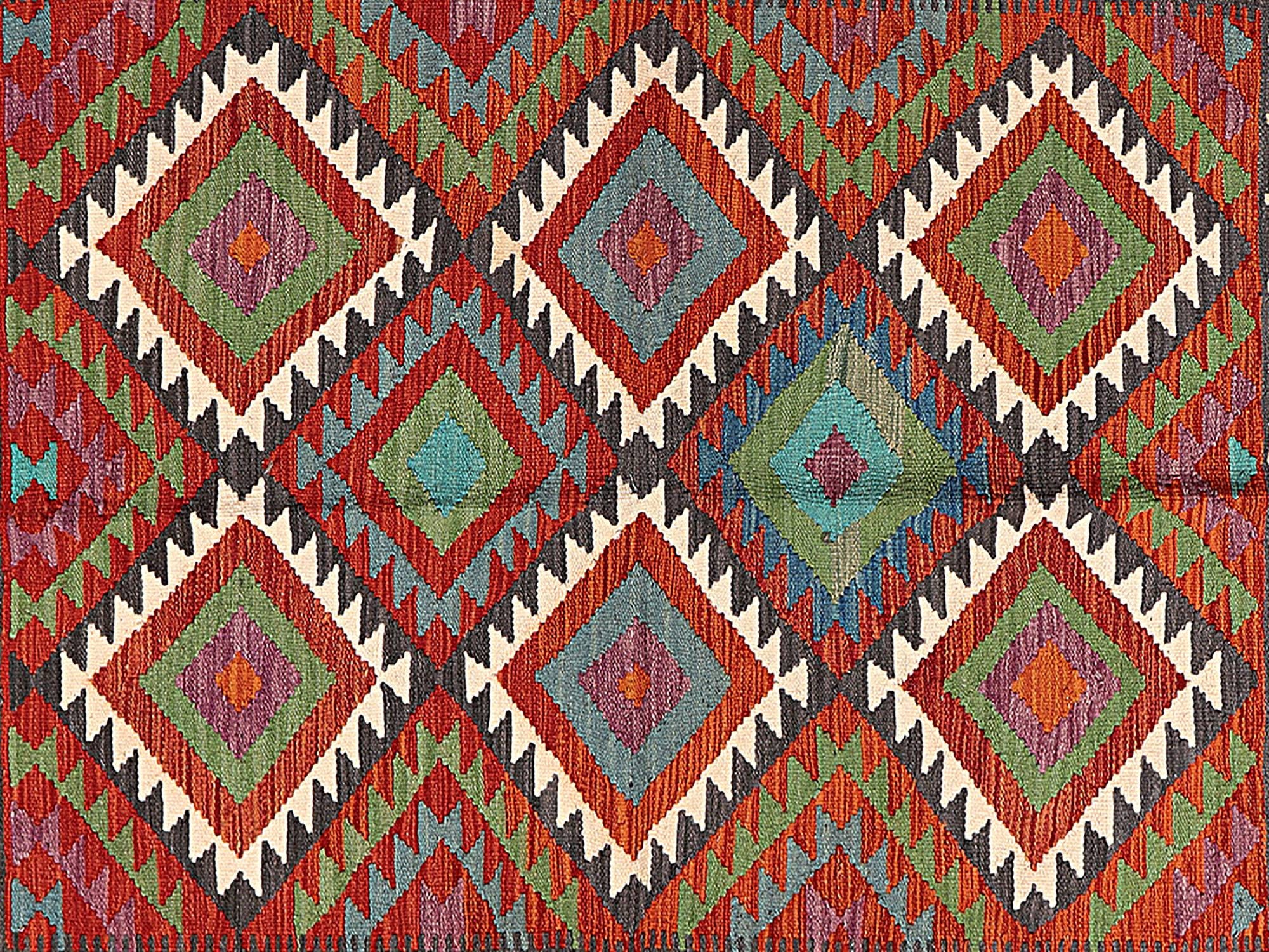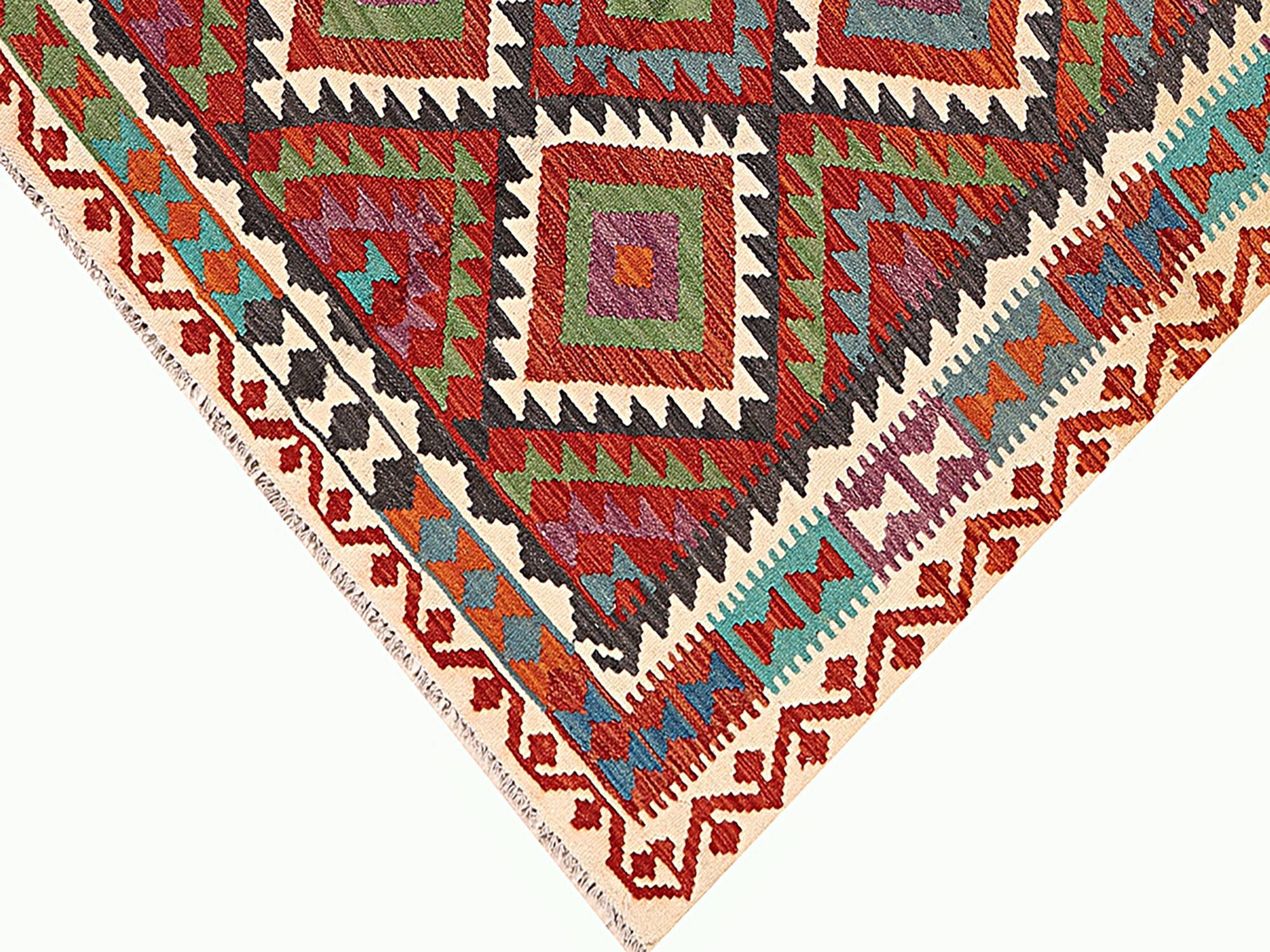 A brand new very high quality multicolour 100% handmade contemporary flatwoven traditional wool on cotton Afghan kilim rug.