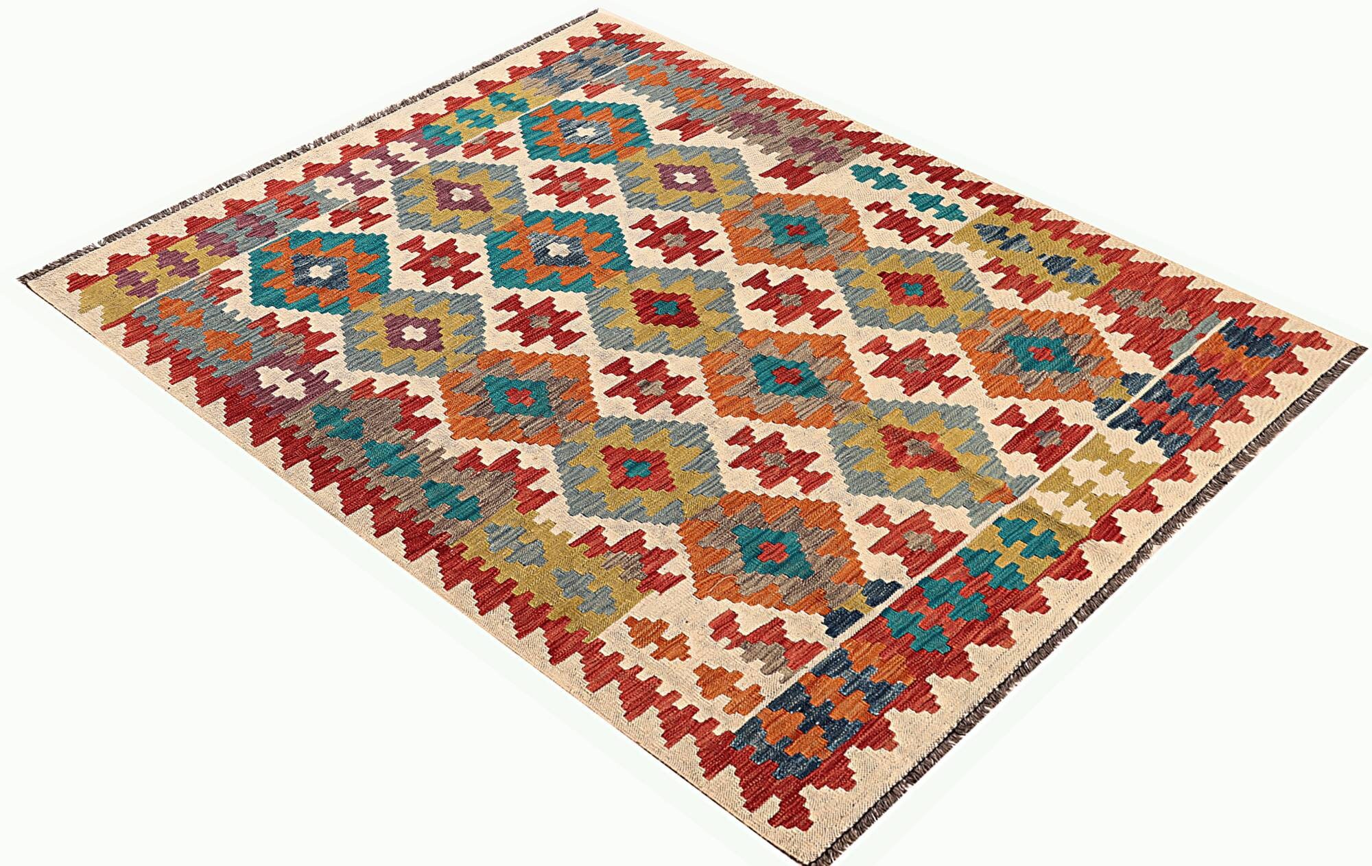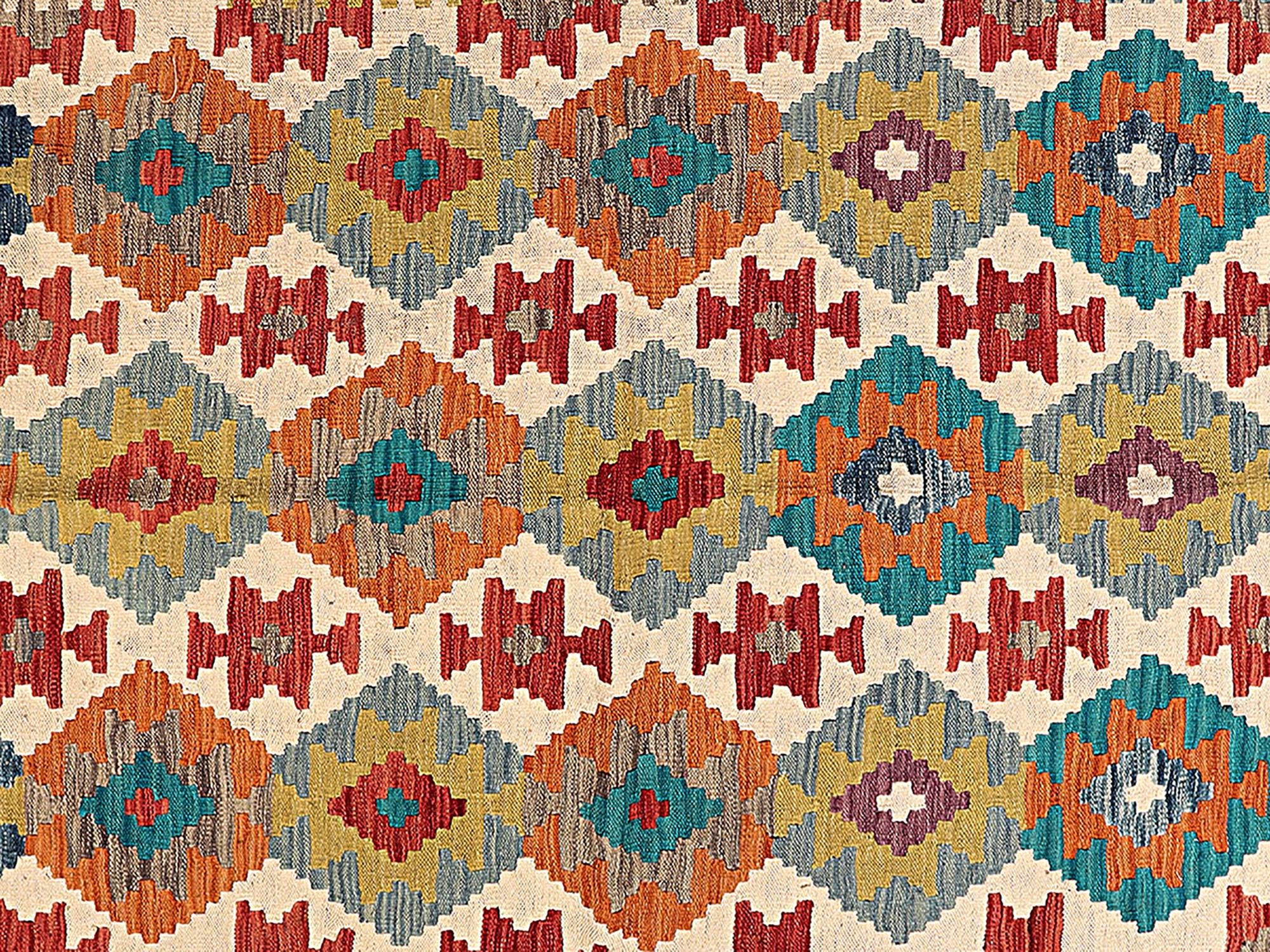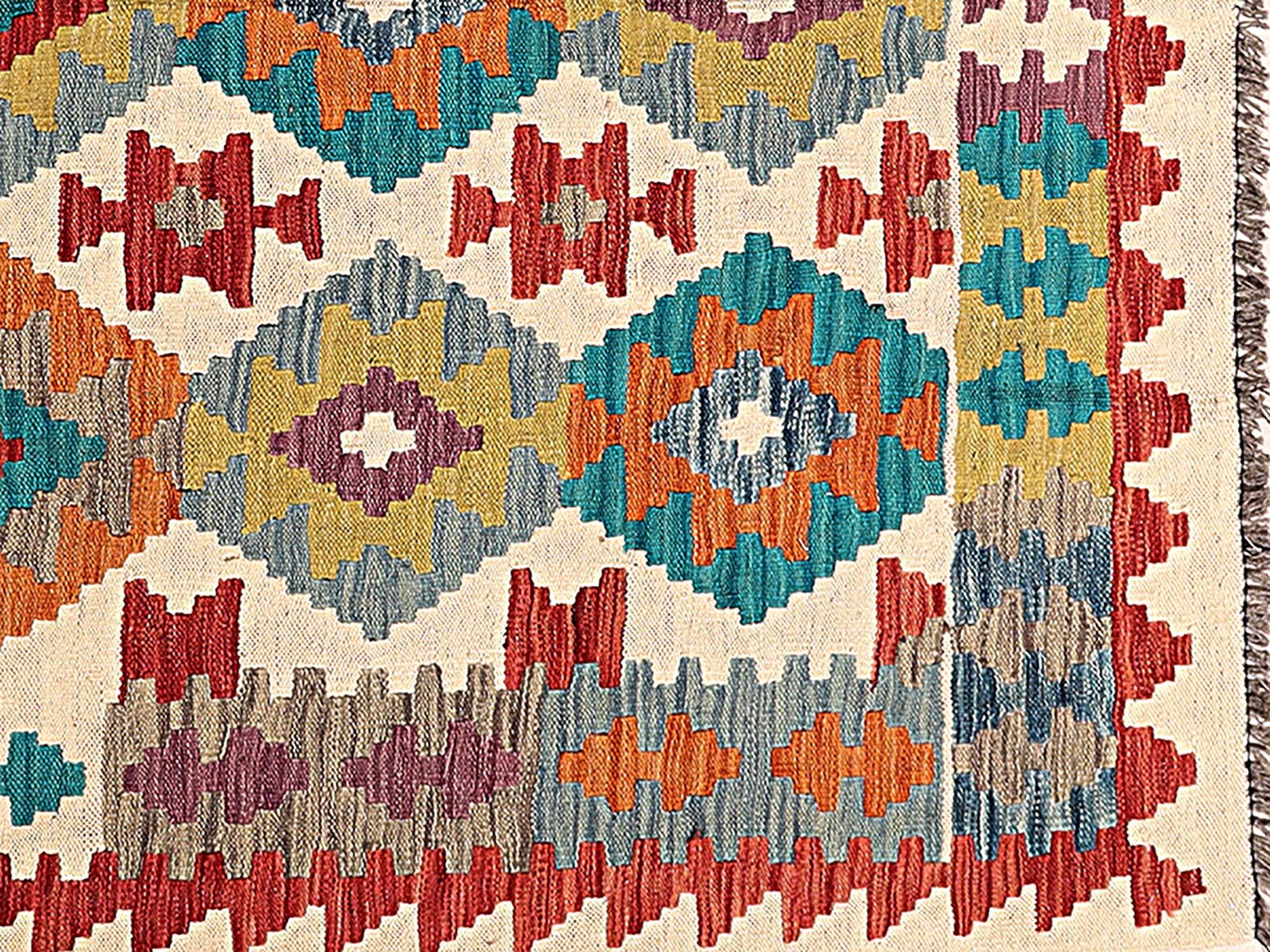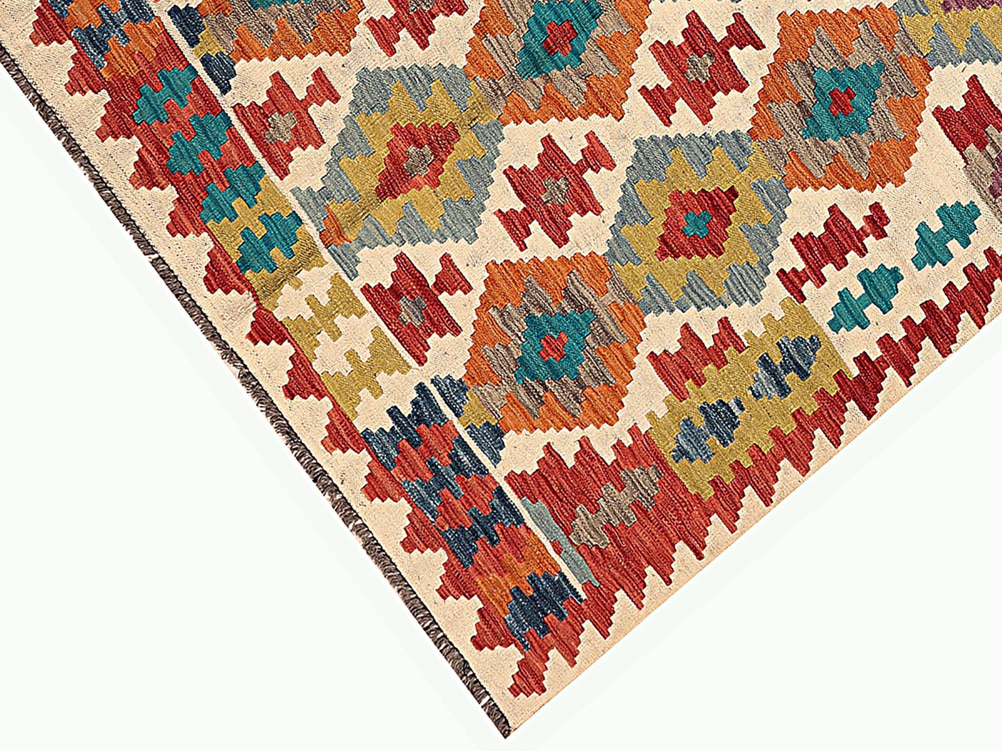 A brand new very high quality multicolour 100% authentic handmade flatwoven traditional wool on wool Afghan kilim rug.