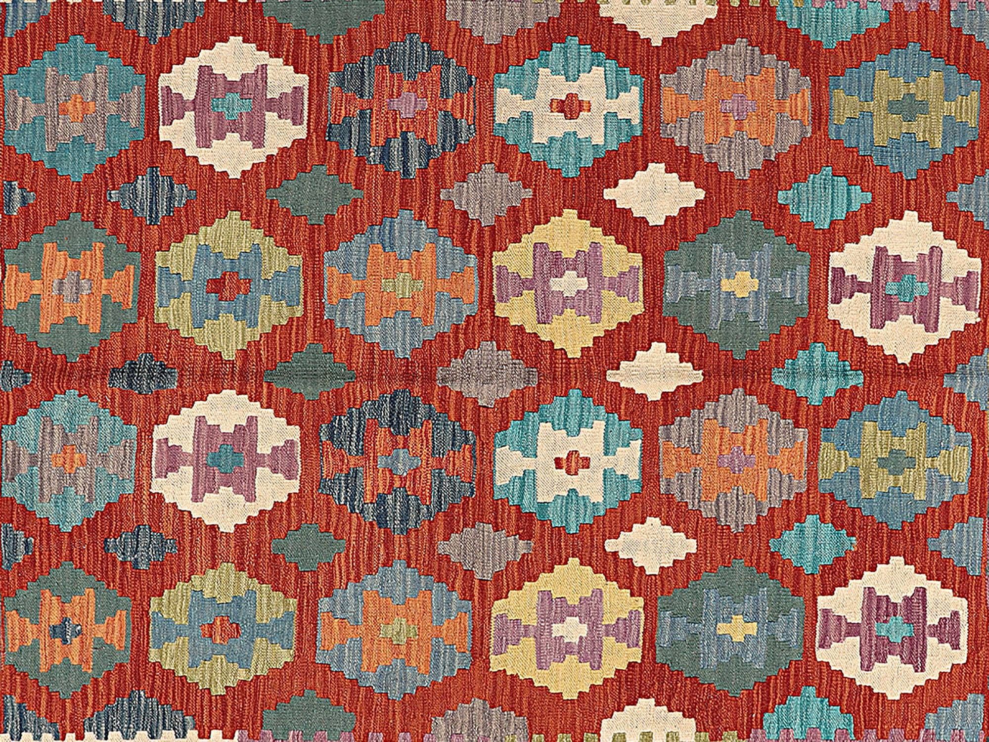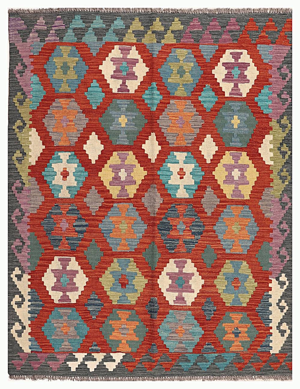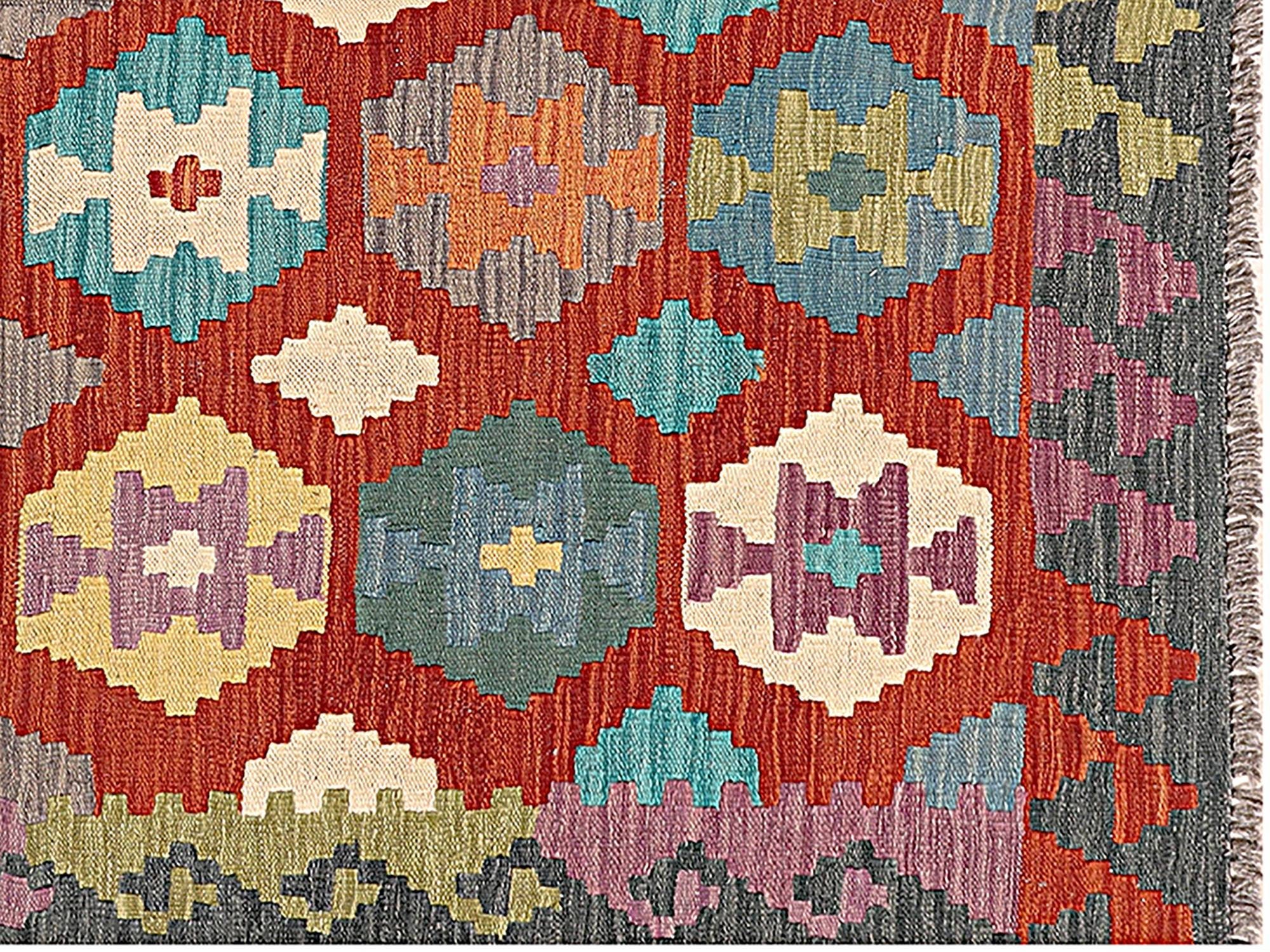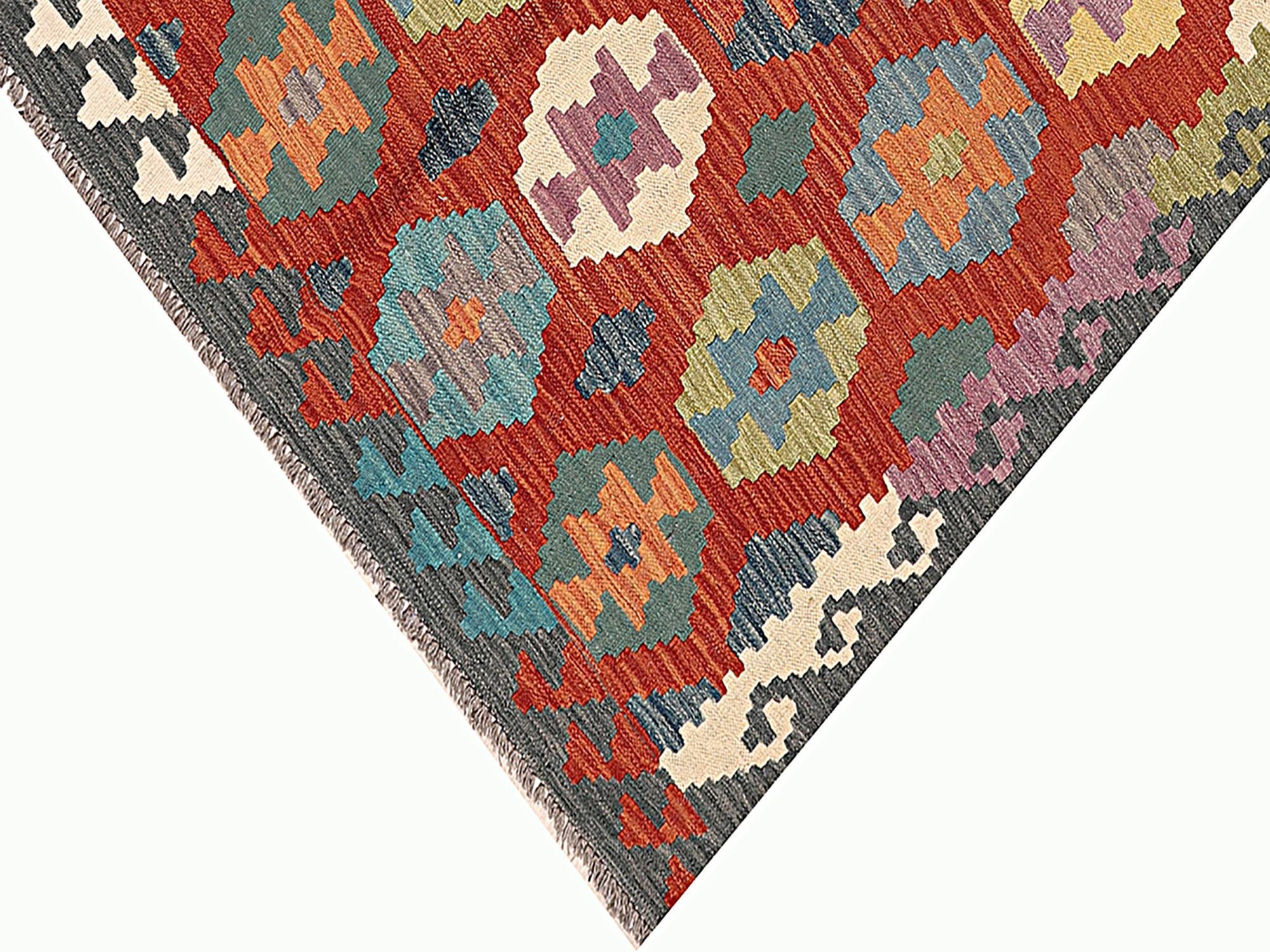 A brand new very high quality multicolour 100% authentic handmade flatwoven traditional wool on wool Afghan kilim rug.