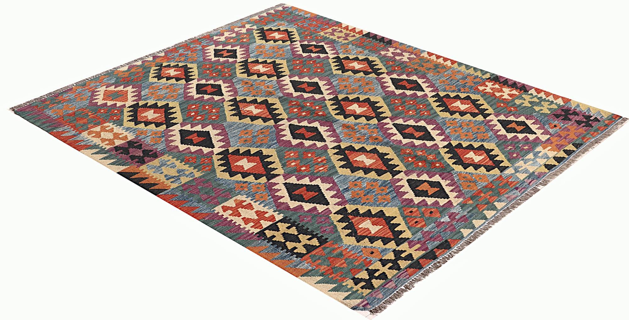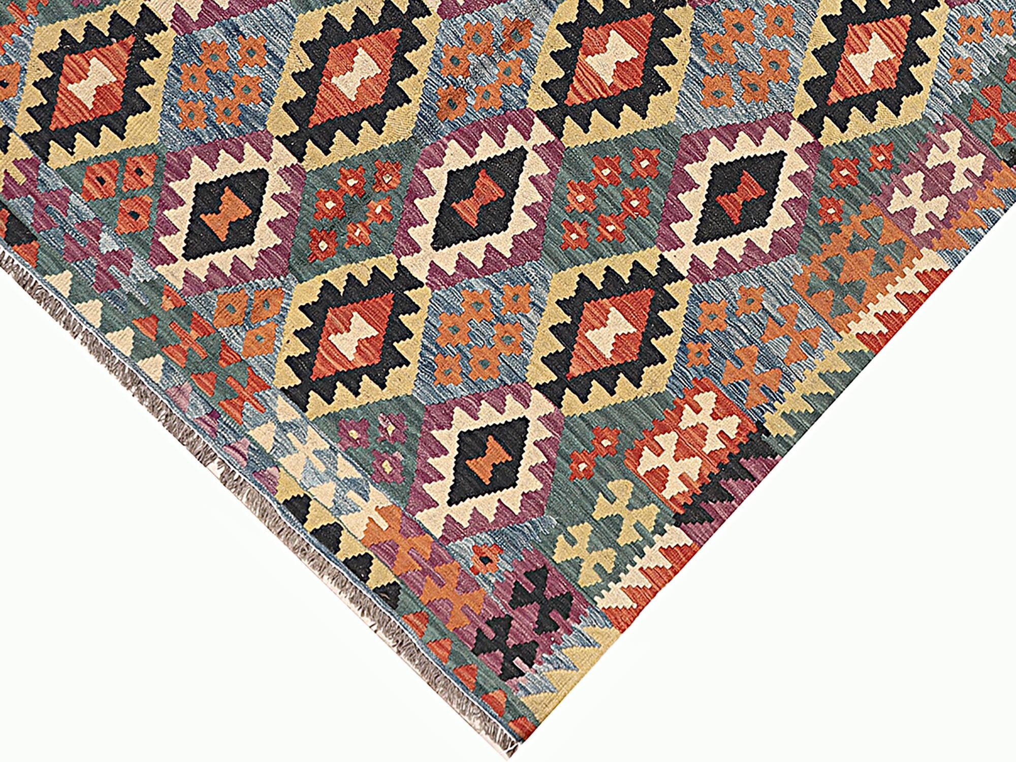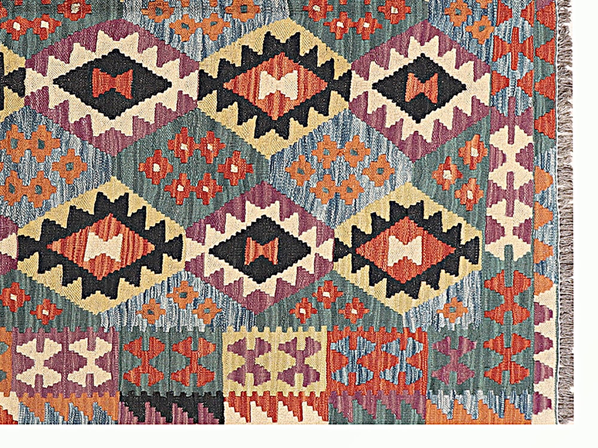 A brand new very high quality multicolour 100% handmade flatwoven traditional wool on wool Afghan kilim rug.