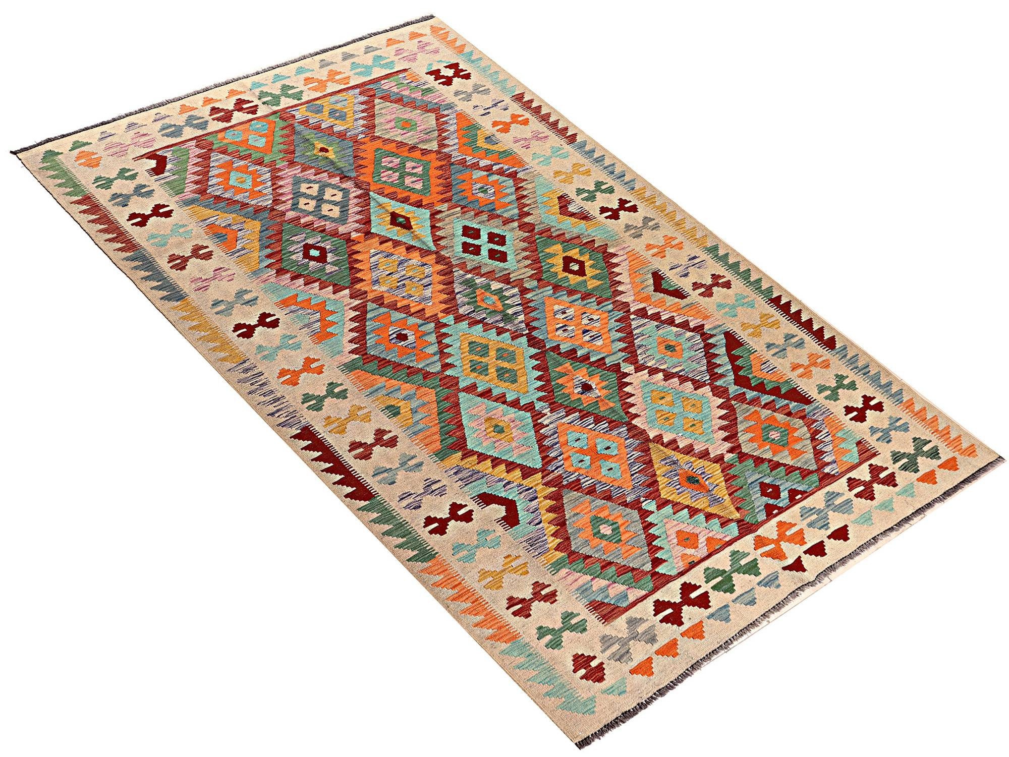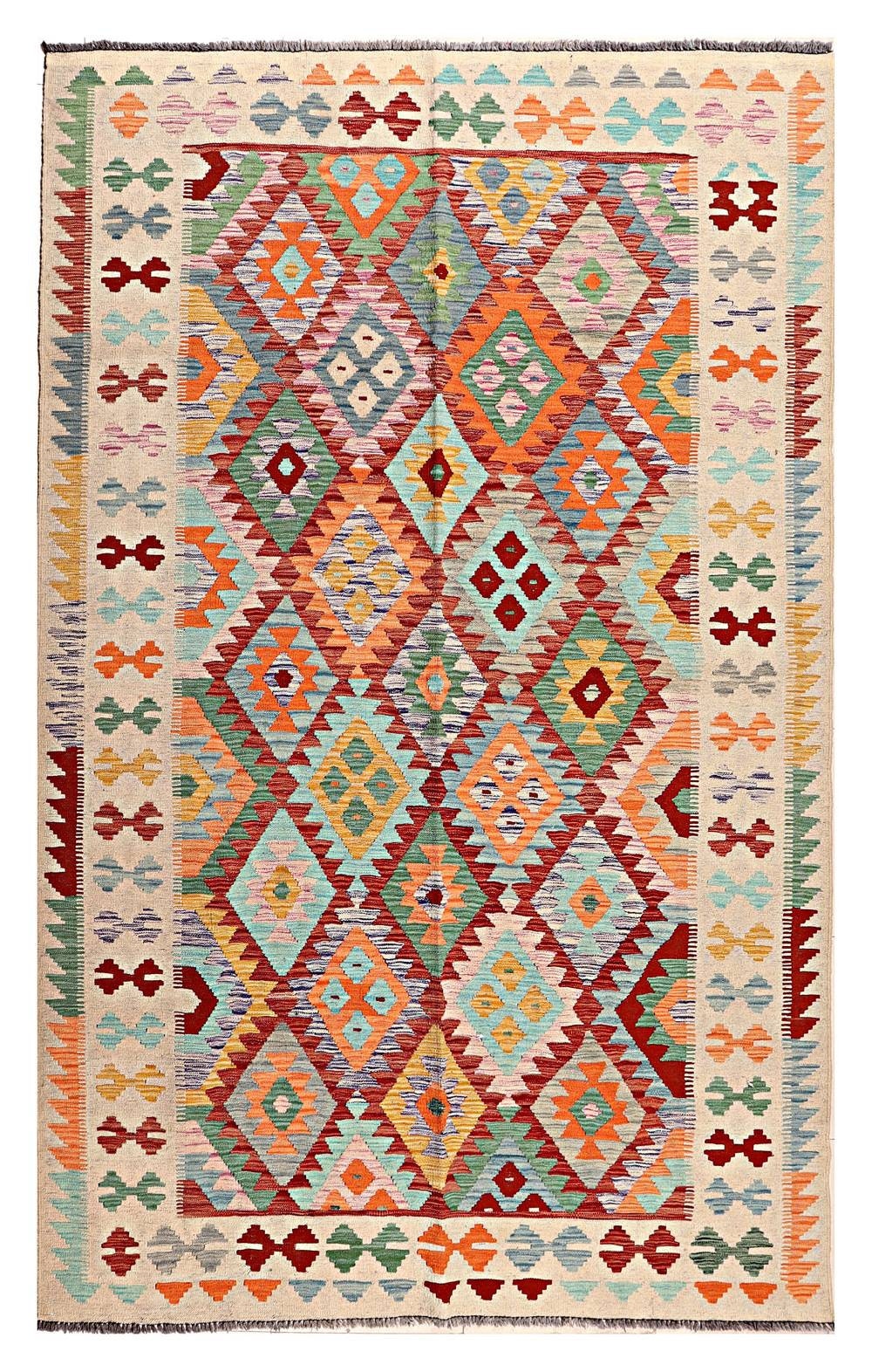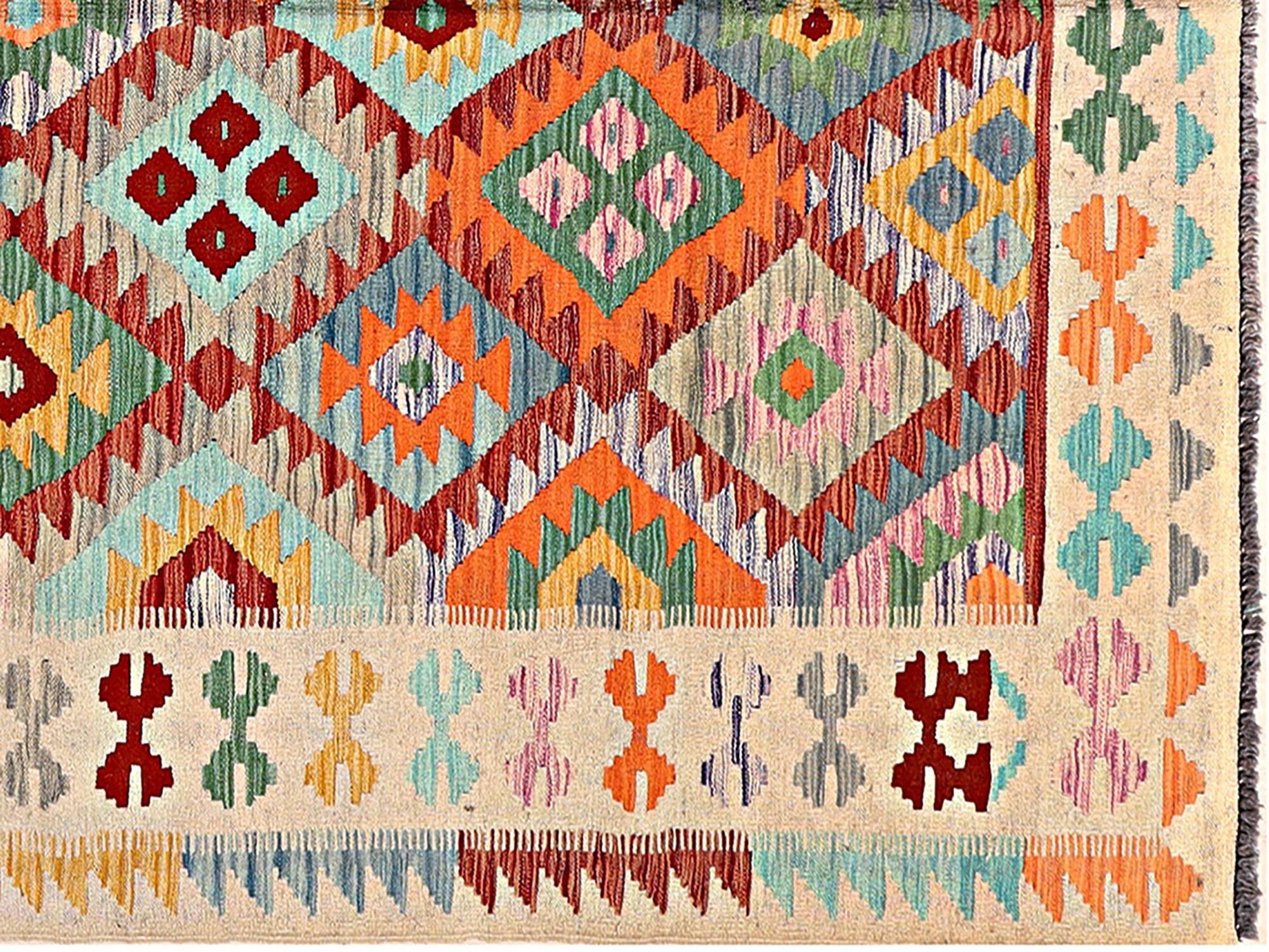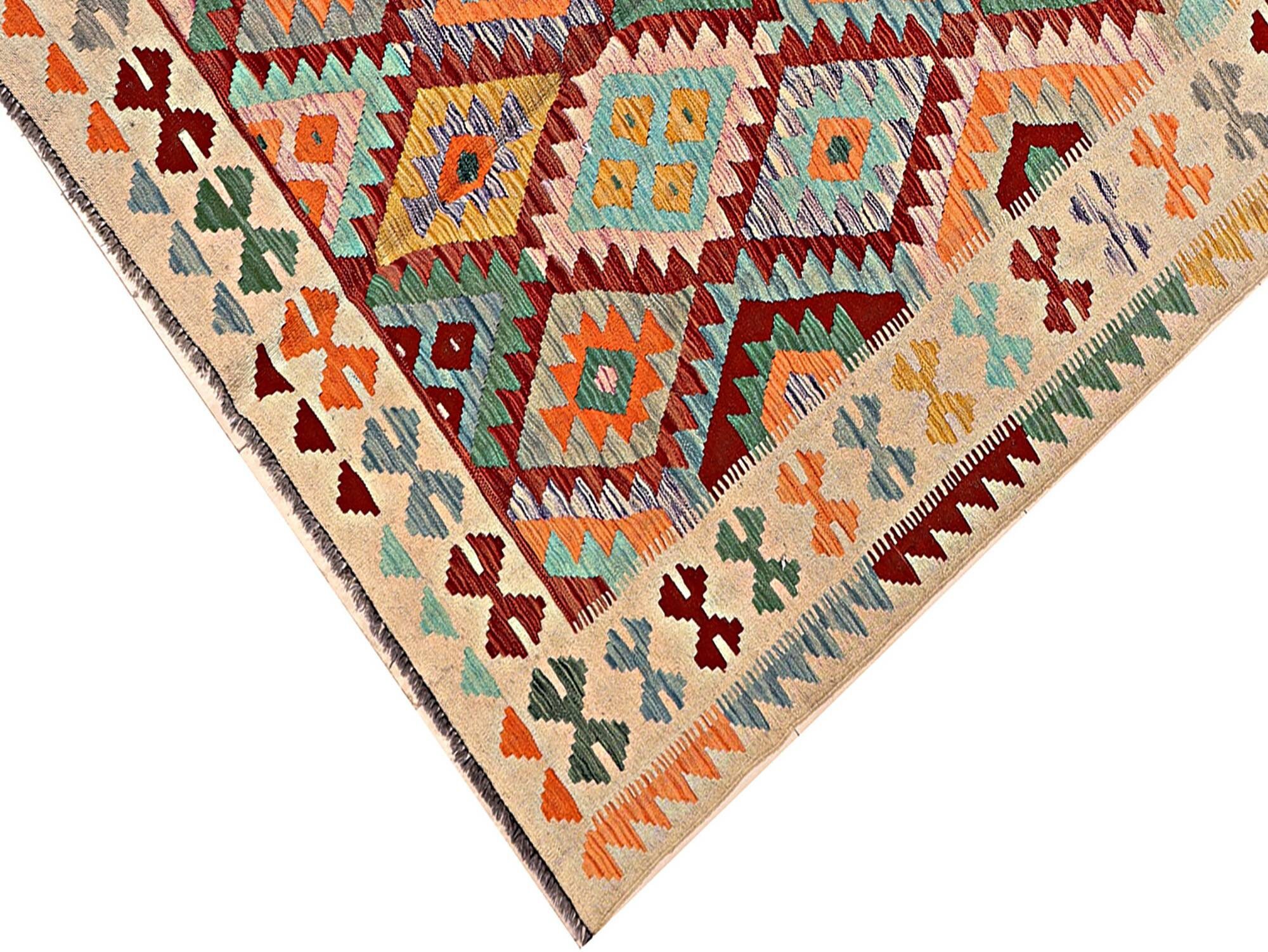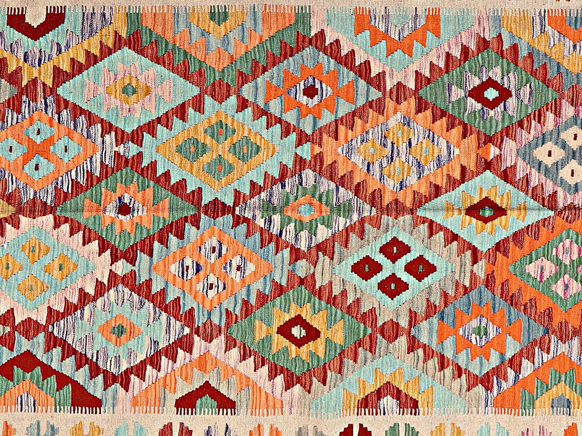 A brand new very high quality multicolour 100% handmade flatwoven traditional wool on wool Afghan kilim rug.