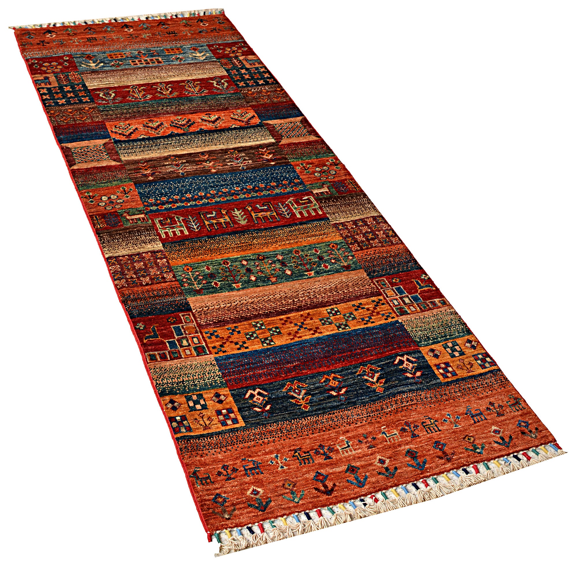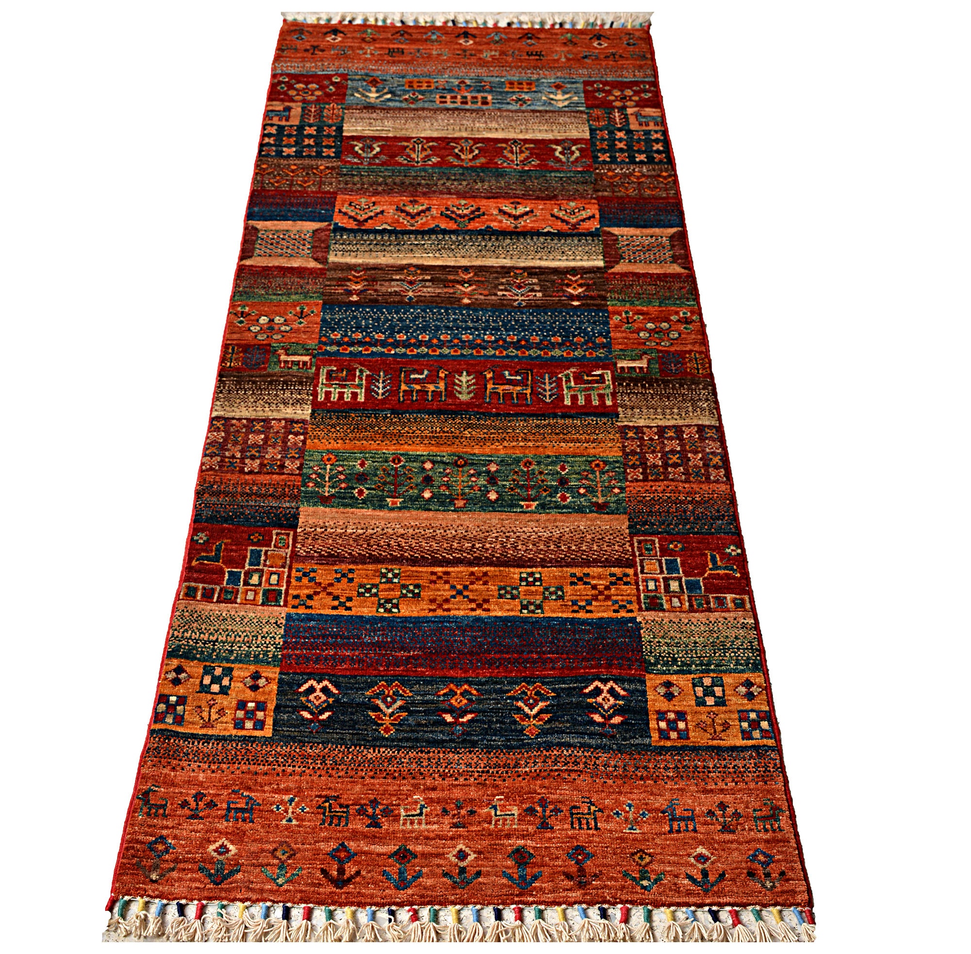 A brand new very high quality 100% handmade hand-knotted Afghan traditional Khurjeen hallway runner rug.
