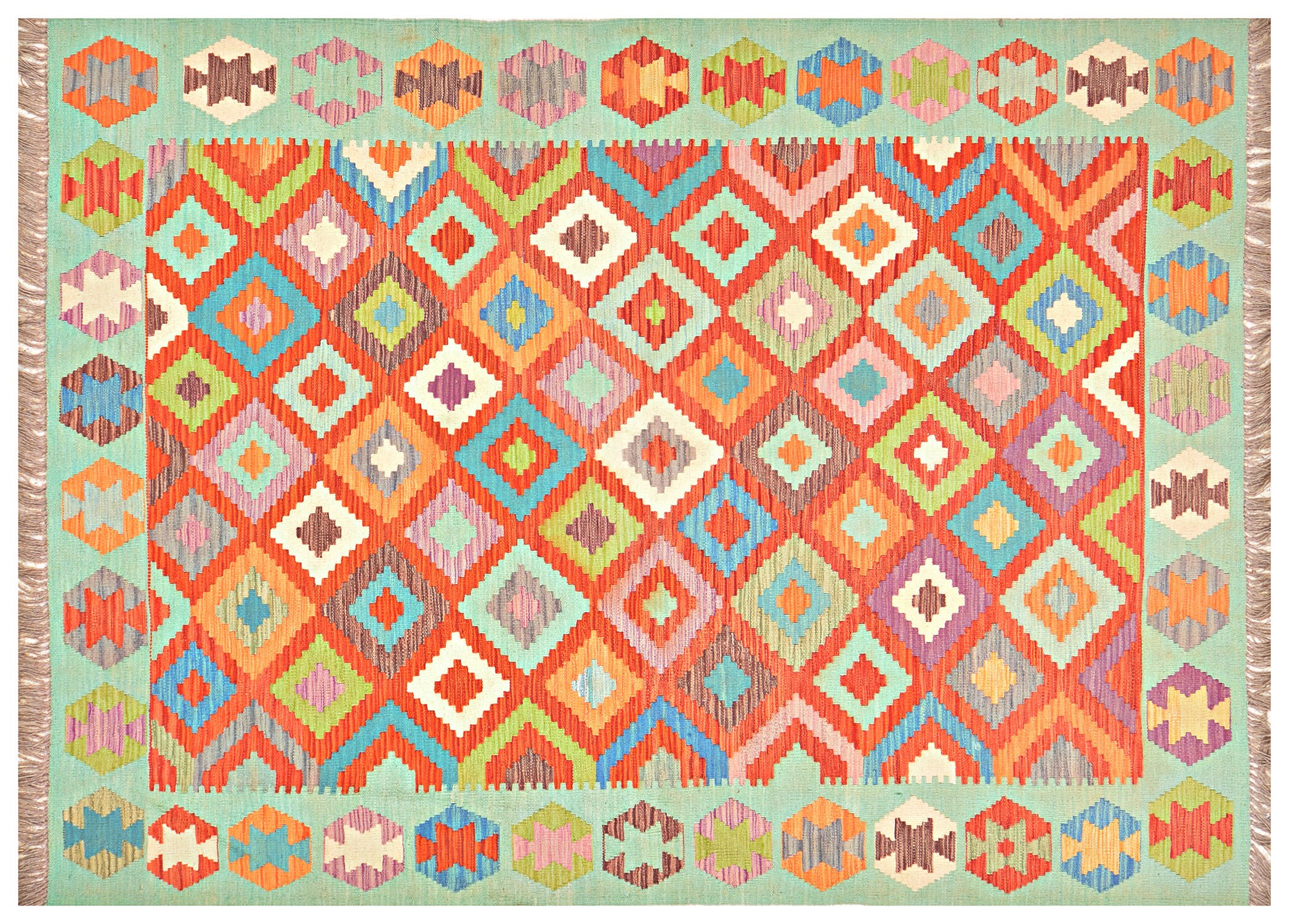 A brand new very high quality 100% handmade flatwoven traditional wool on wool Afghan kilim rug.