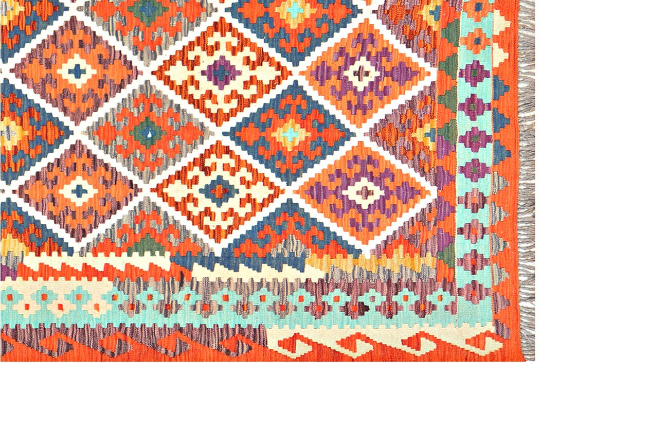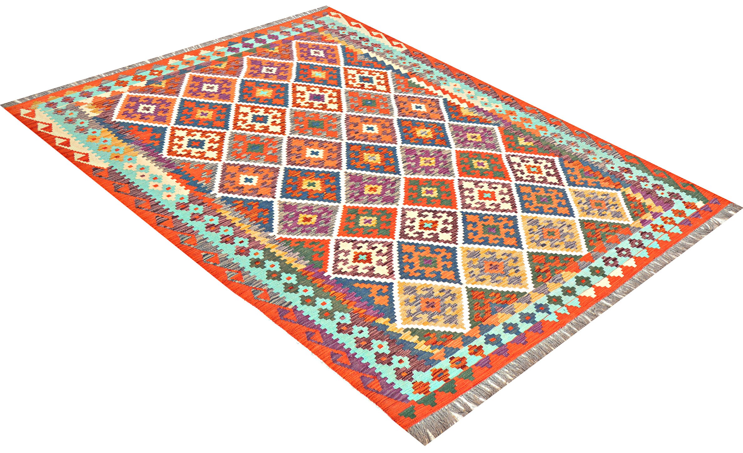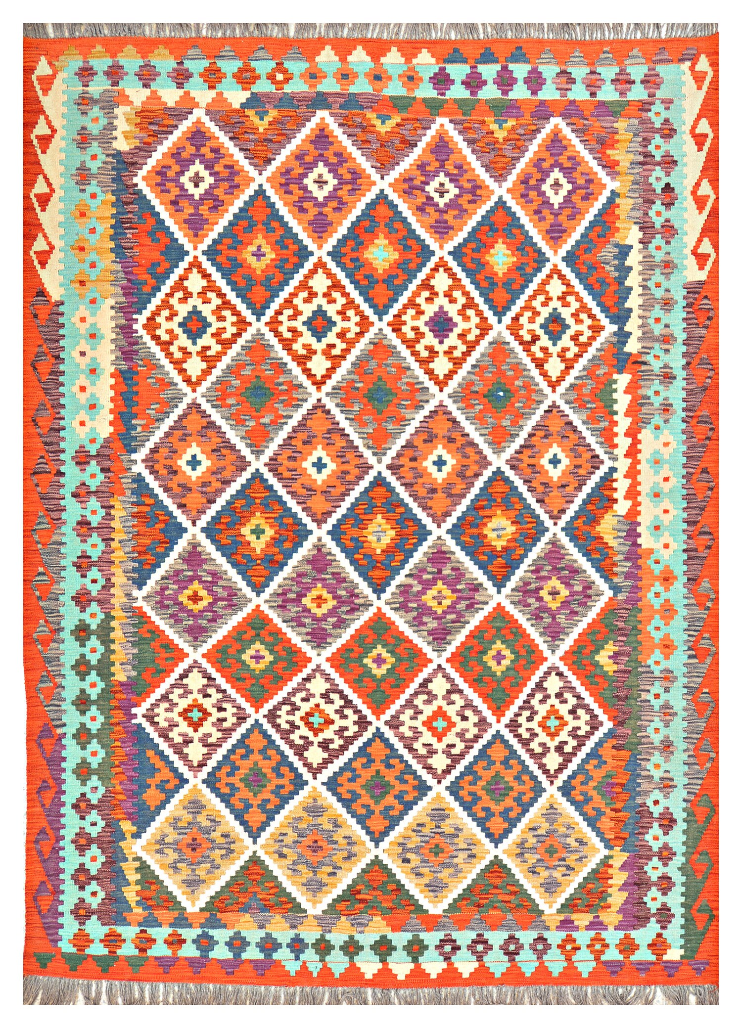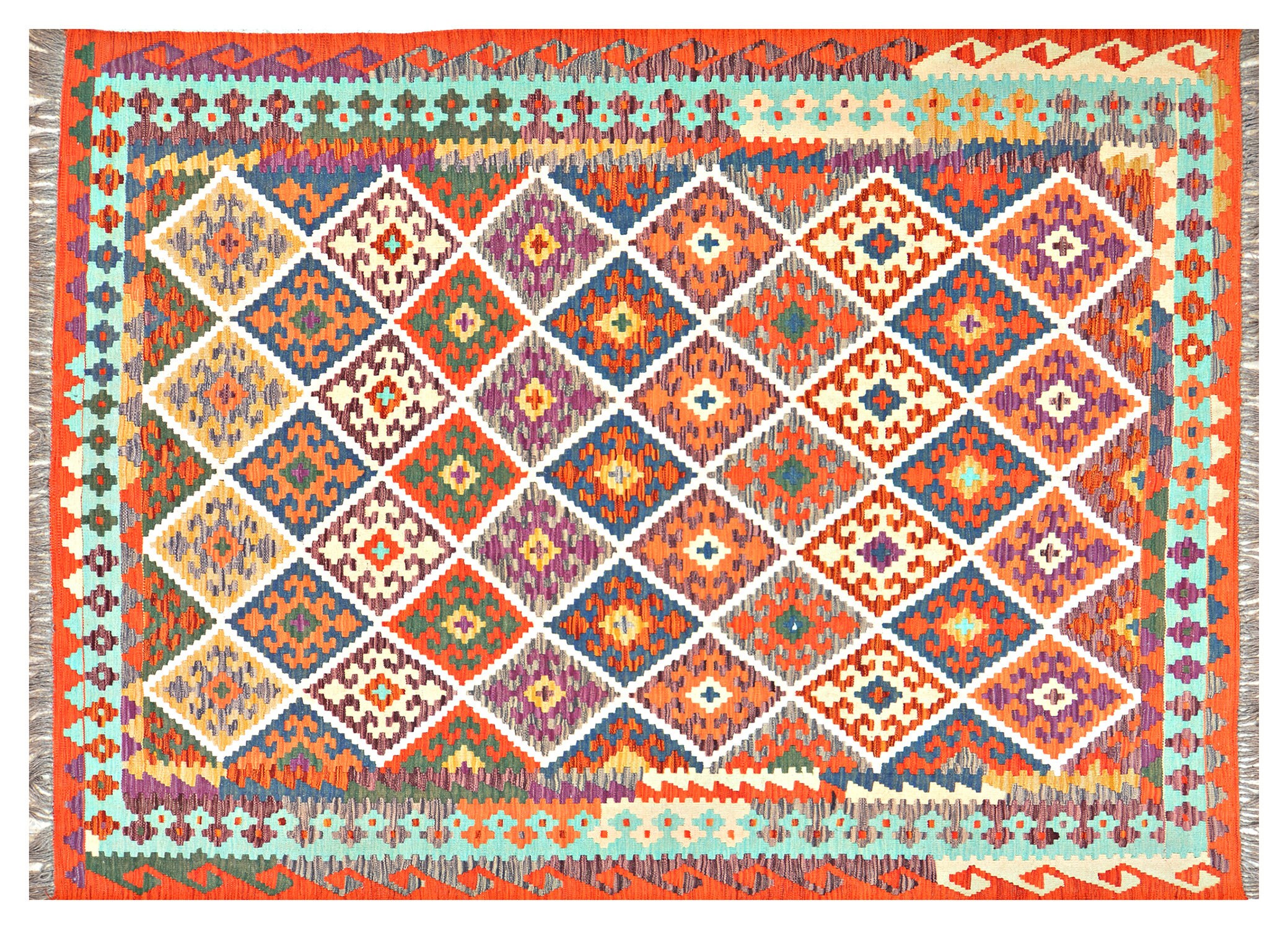 A Brand New very high quality multicolour 100% handmade flatwoven traditional wool on wool Afghan kilim rug.