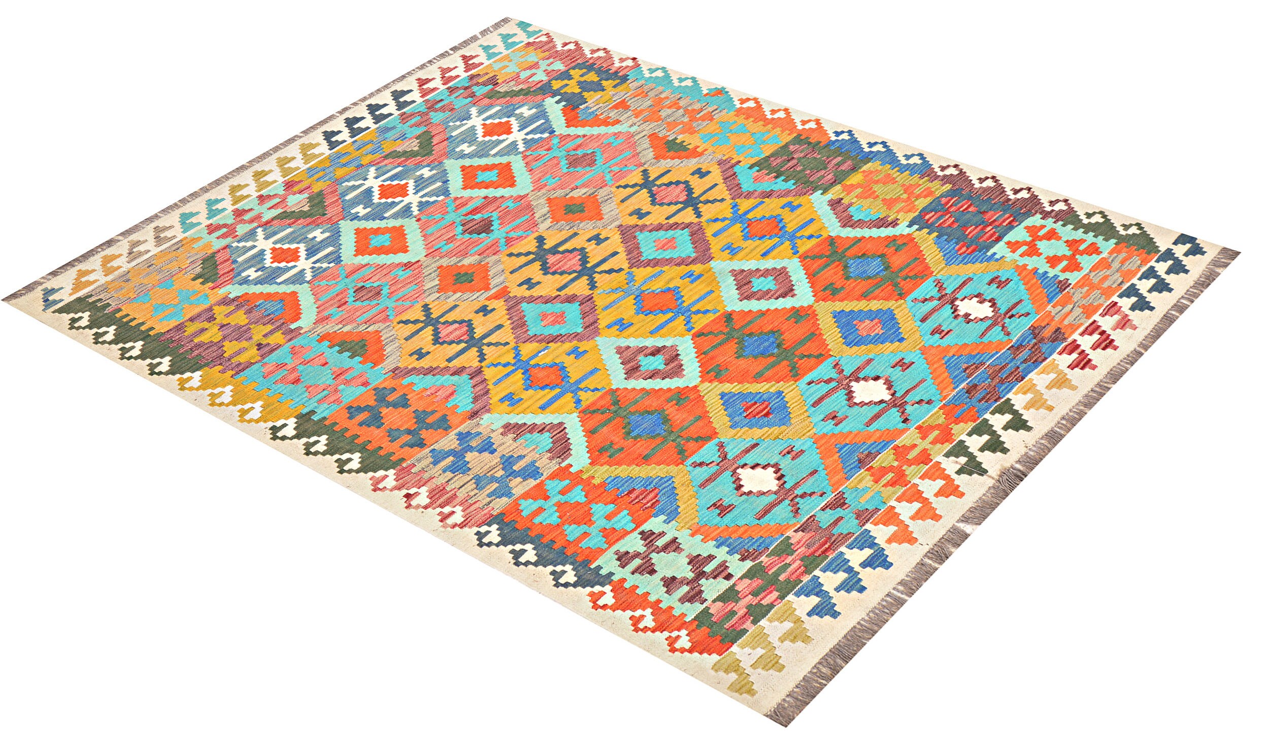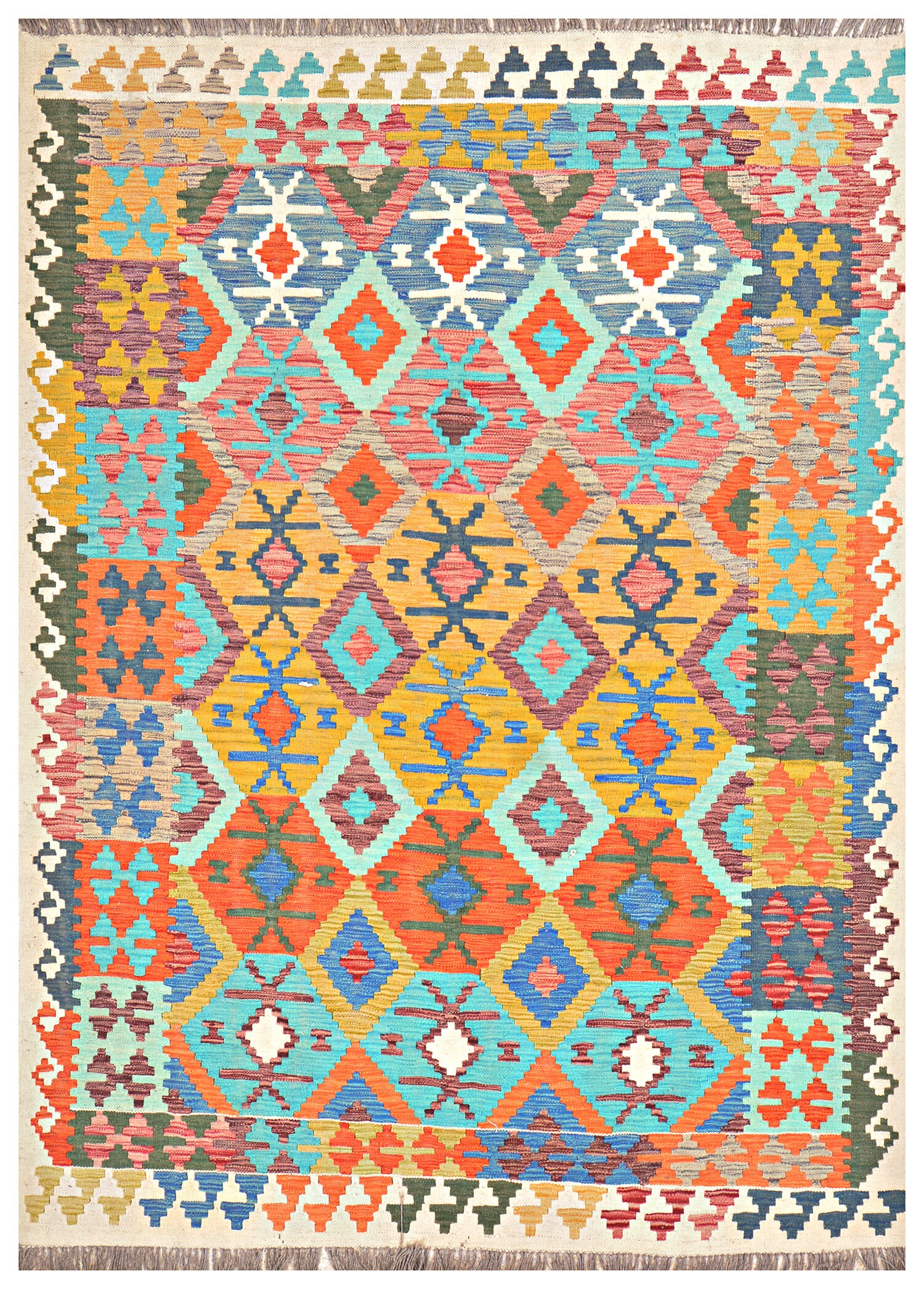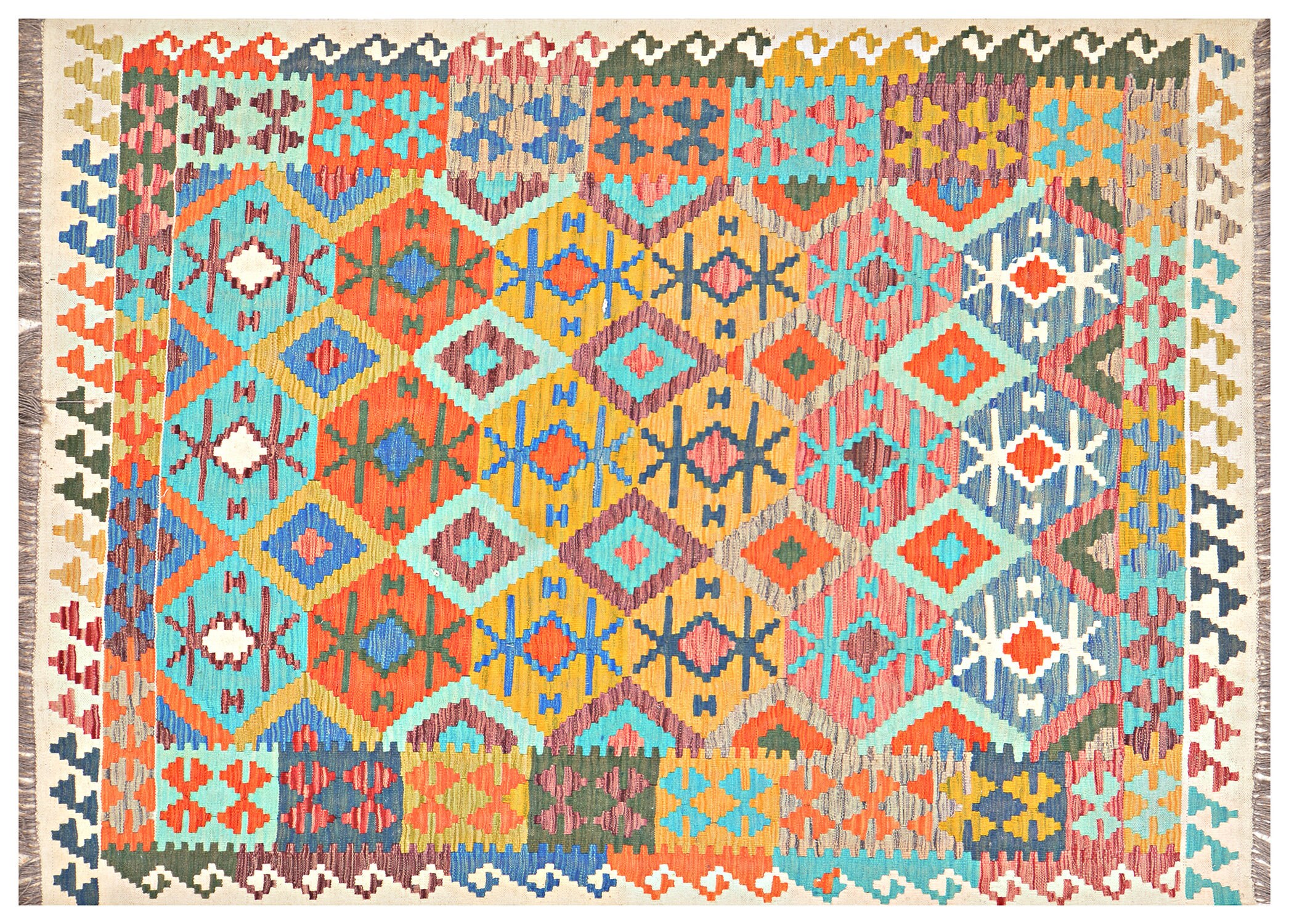 A Brand New very high quality multicolour 100% Handmade flatwoven traditional wool-on-wool Afghan kilim rug.