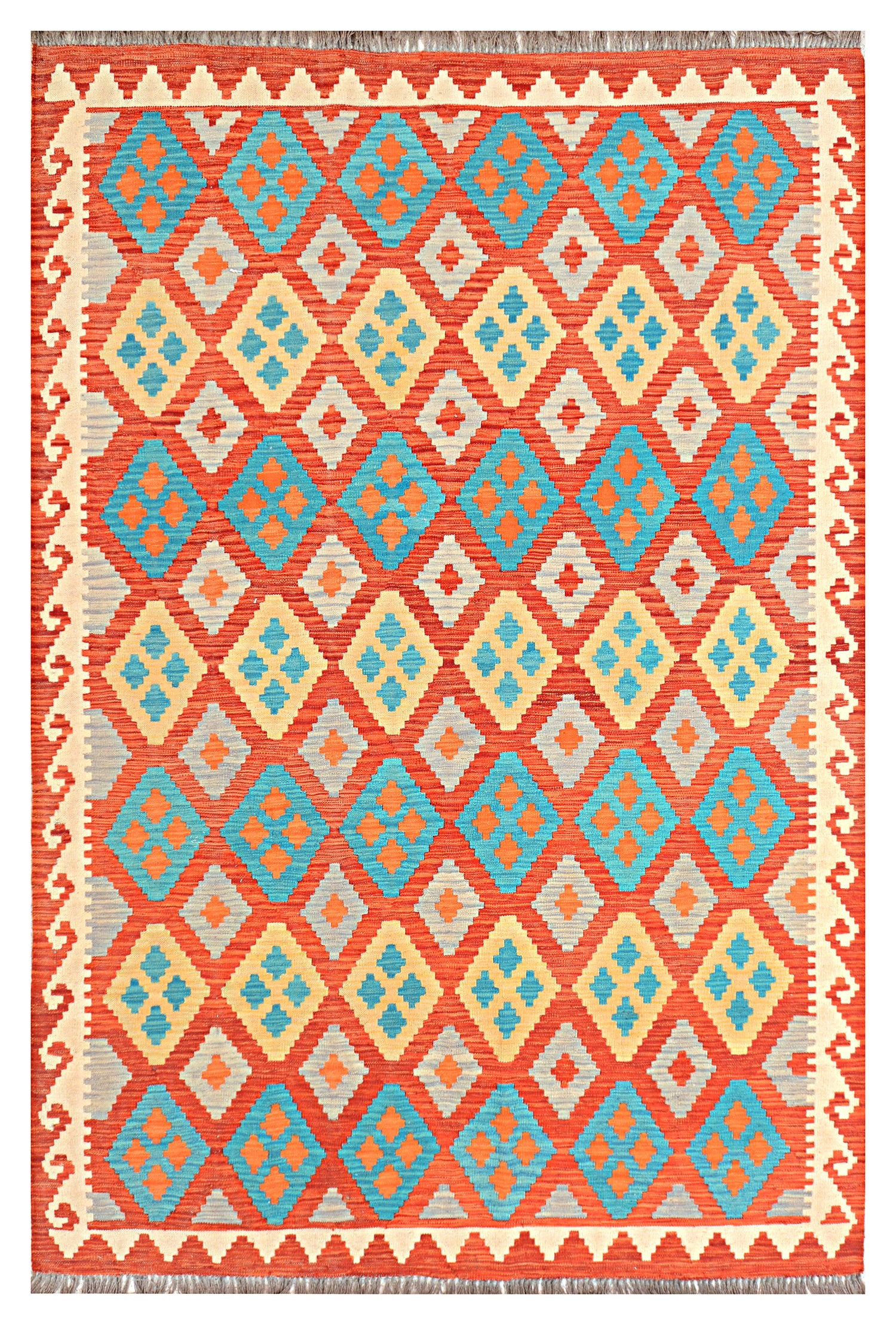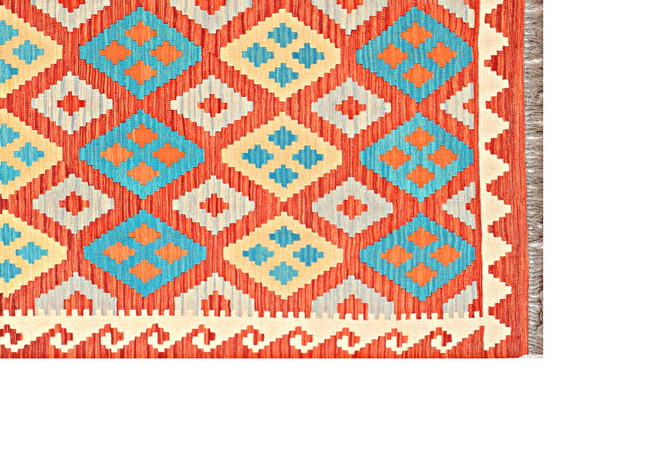 A Brand new very high quality multicolour 100% handmade flatwoven traditional wool on wool Afghan kilim rug.