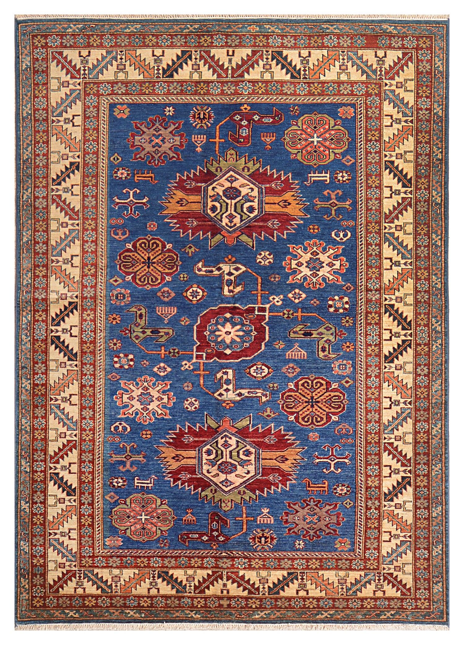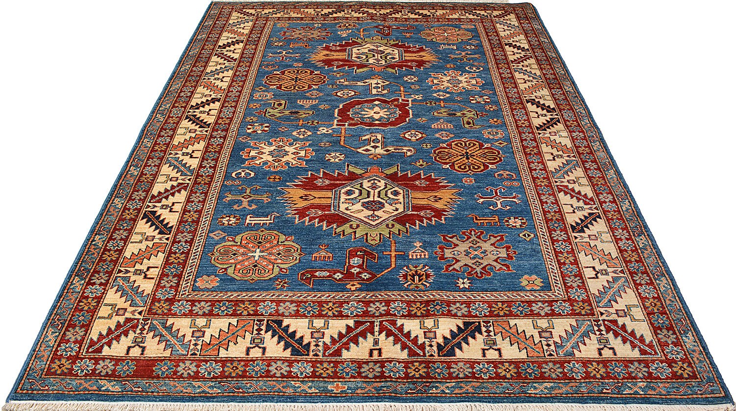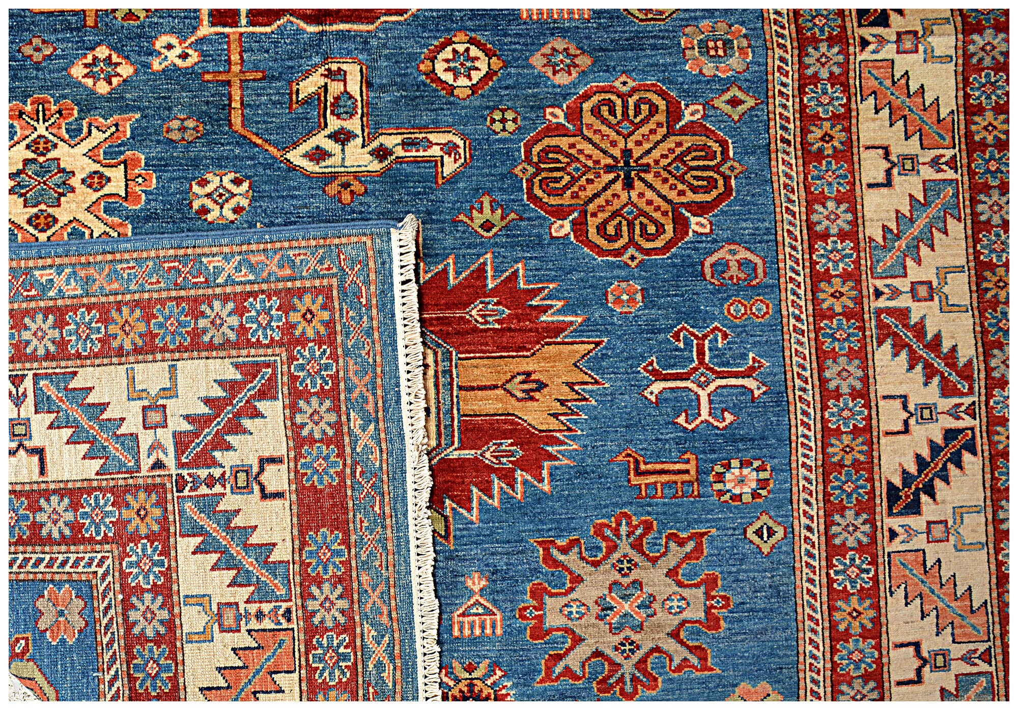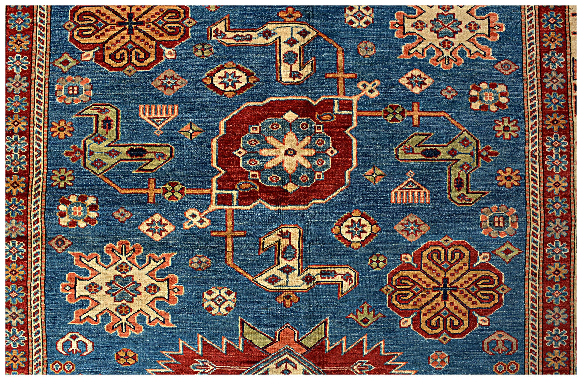 This rug is 100% handmade which makes it one of a kind and unique. Fine Kazak rugs can be used for both modern and traditional settings. Very hard-wearing rug and a good value for money.