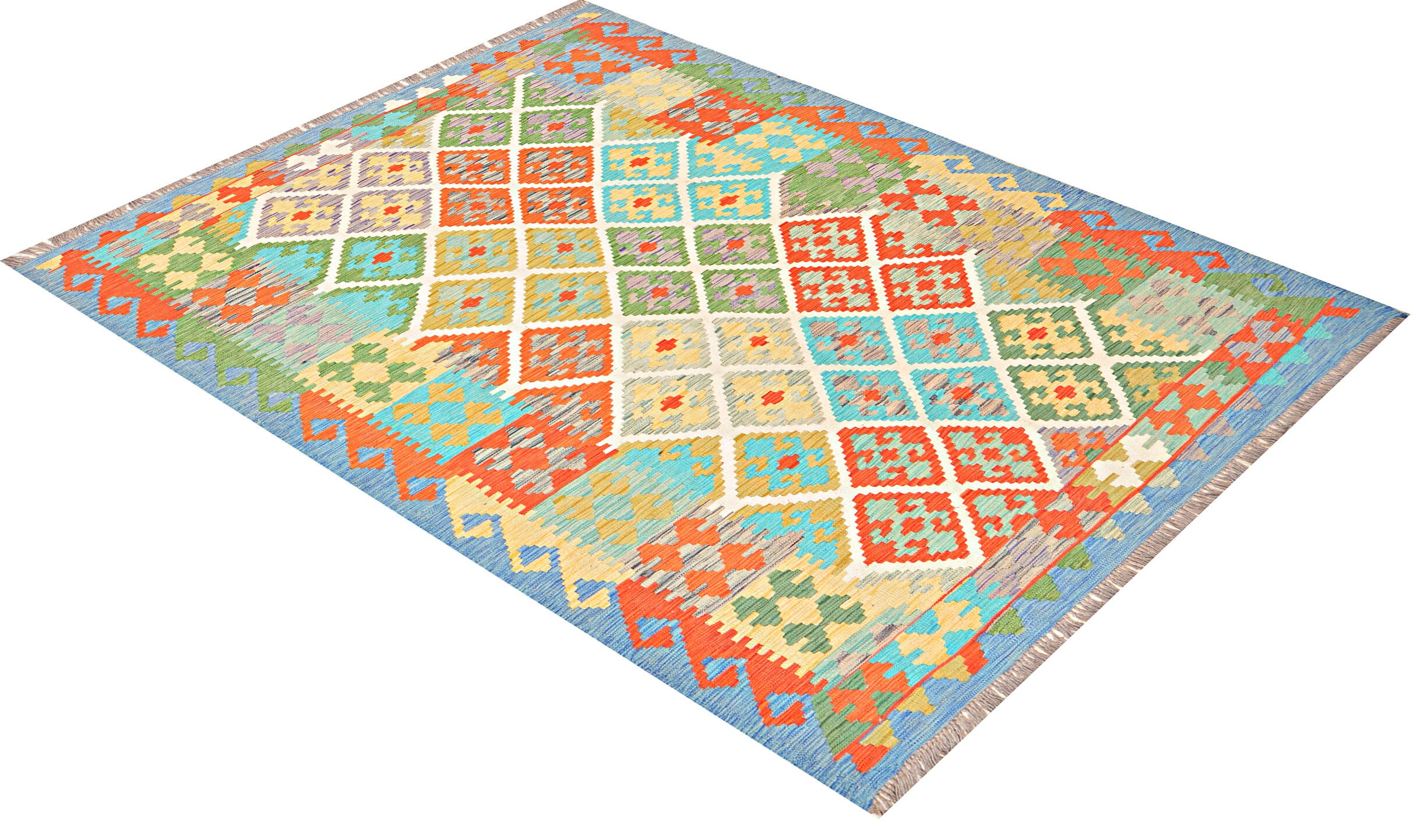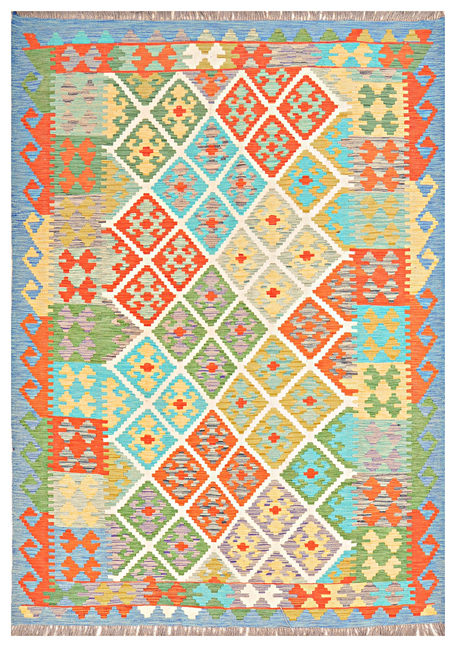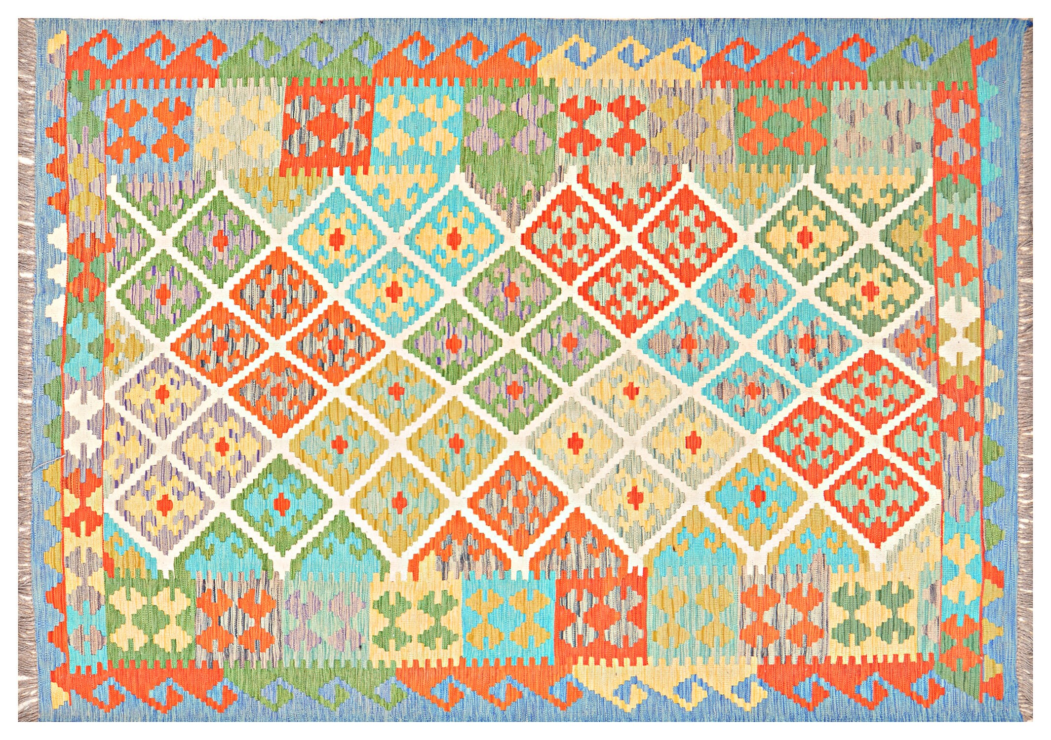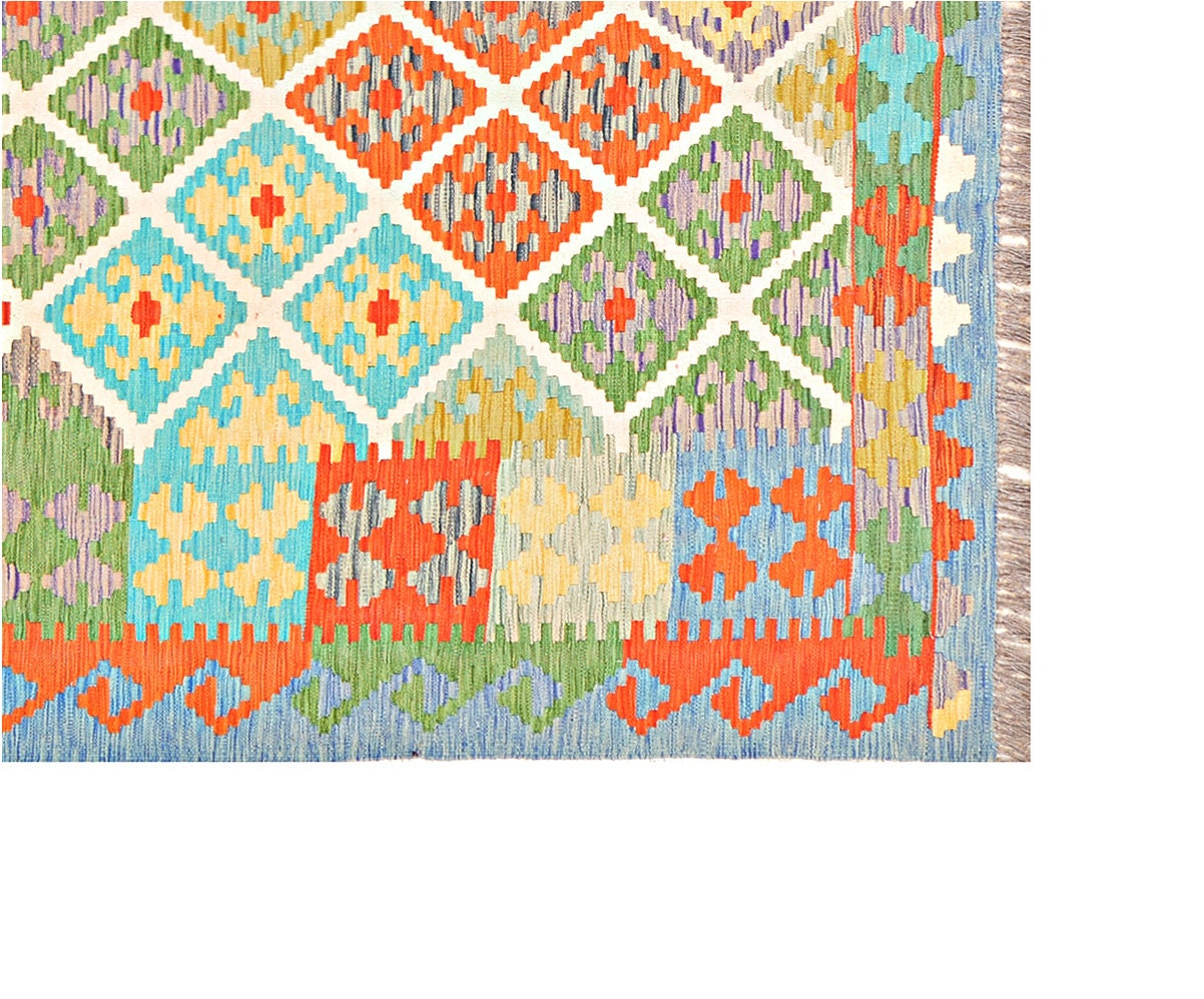 A brand new very high quality multicolour 100% handmade flatwoven traditional wool on wool Afghan kilim rug.