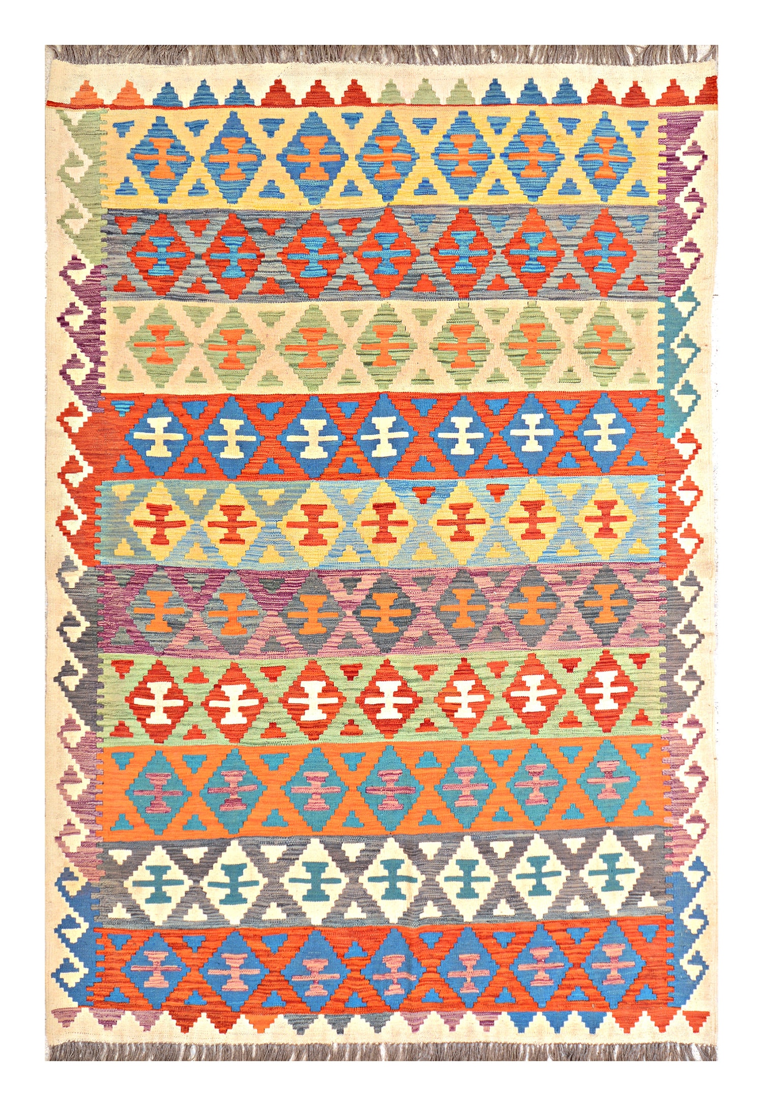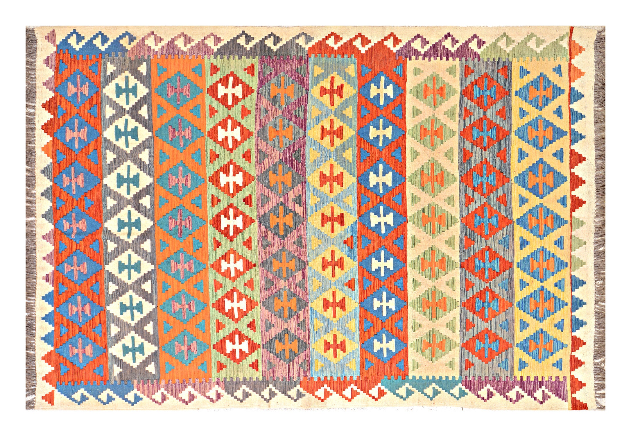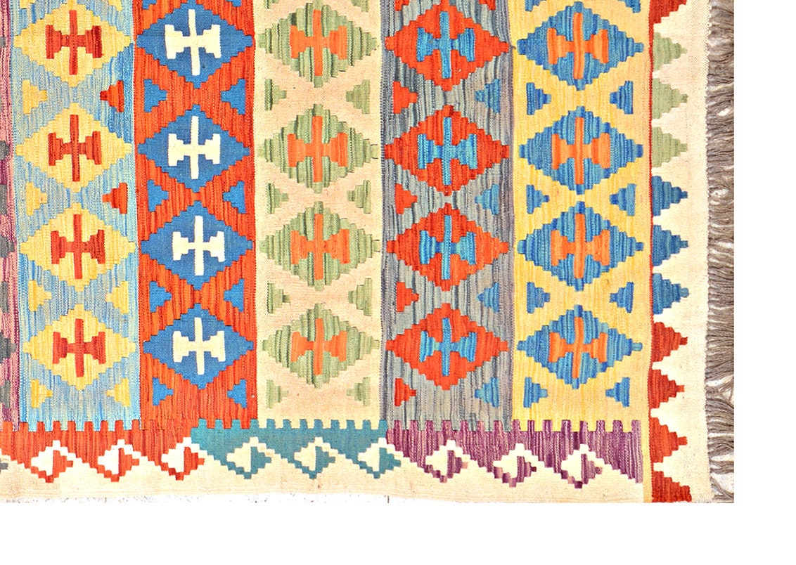 A Brand new very high quality multicolour 100% handmade flatwoven traditional wool on wool Afghan kilim rug.