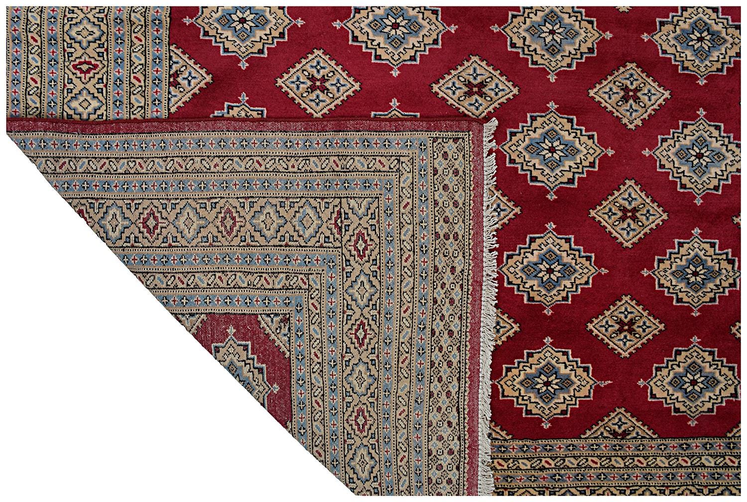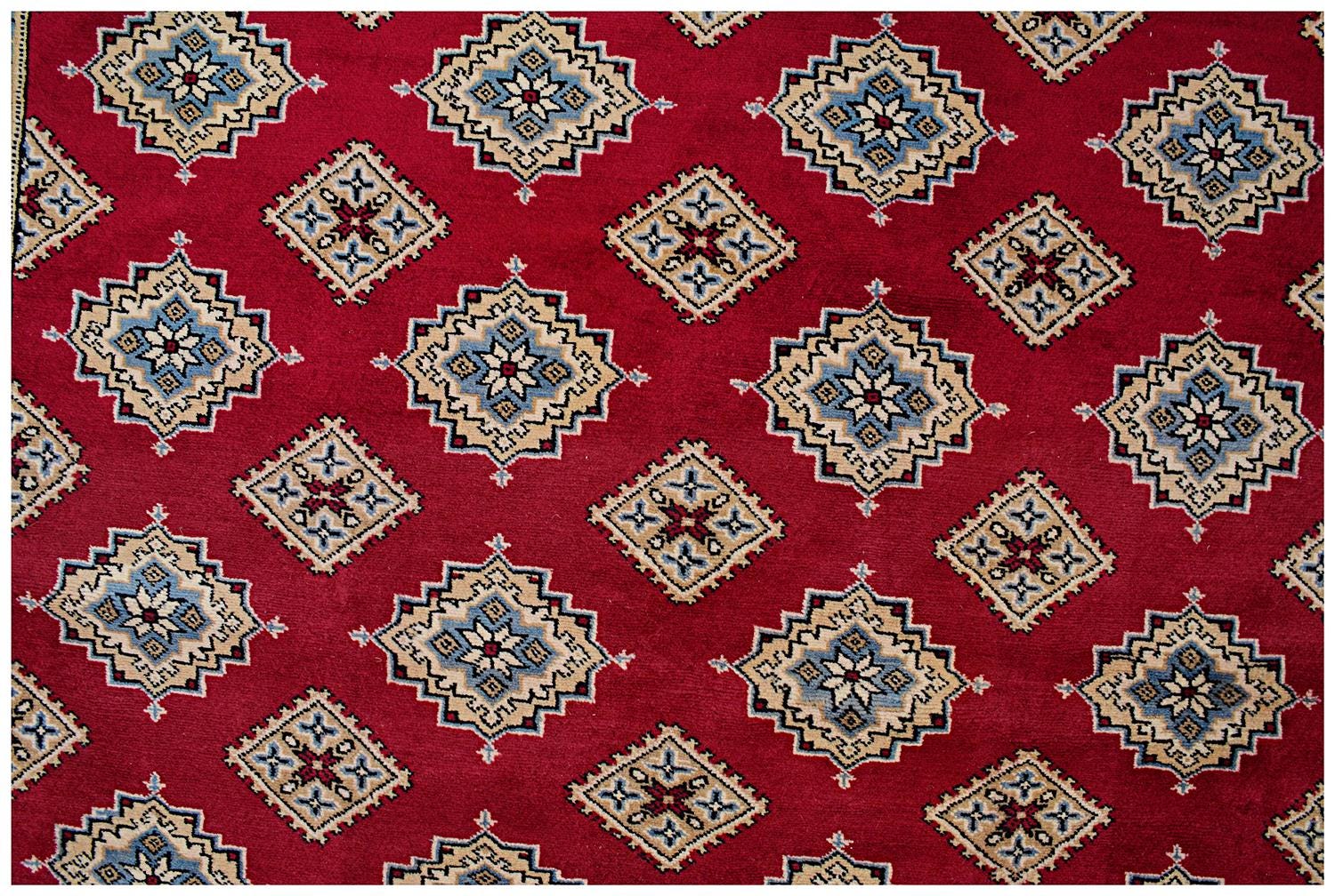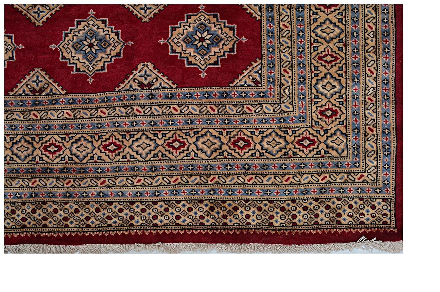 This rug is 100% handmade, hand knotted and it has a very high knot density which makes it one of a kind and unique. This Pakistani Bokhara rug can add luxurious feel to any room with its soft and velvety feel.