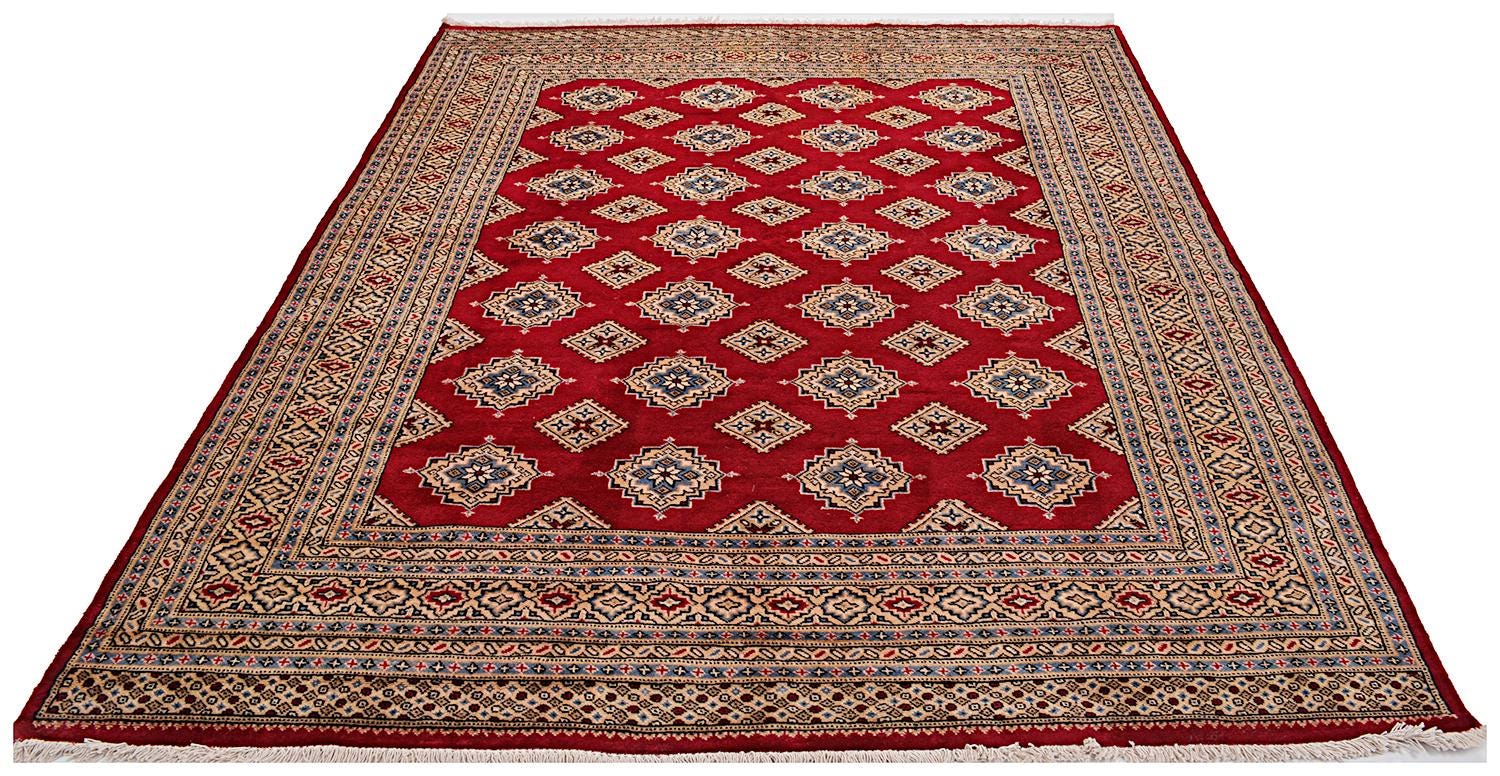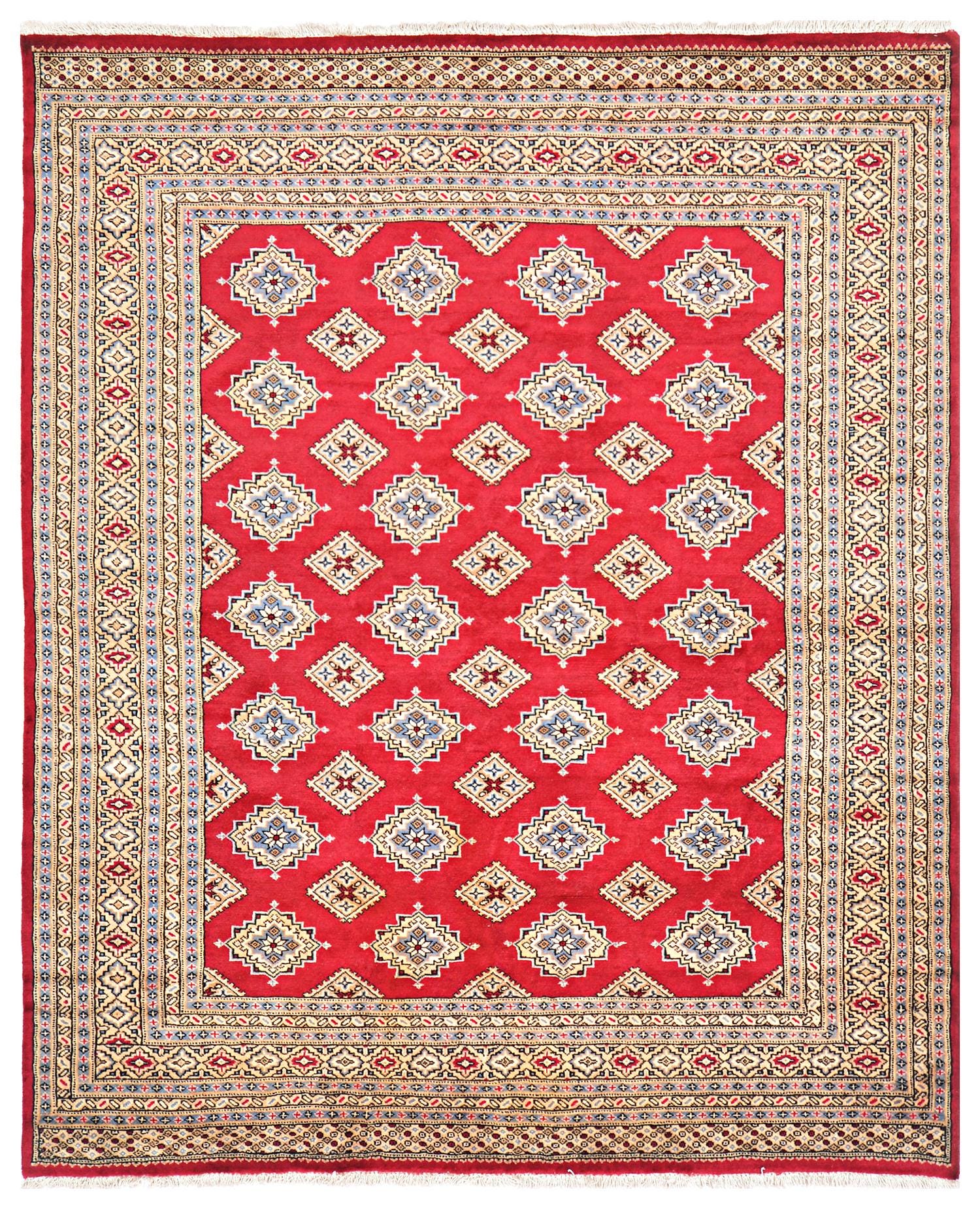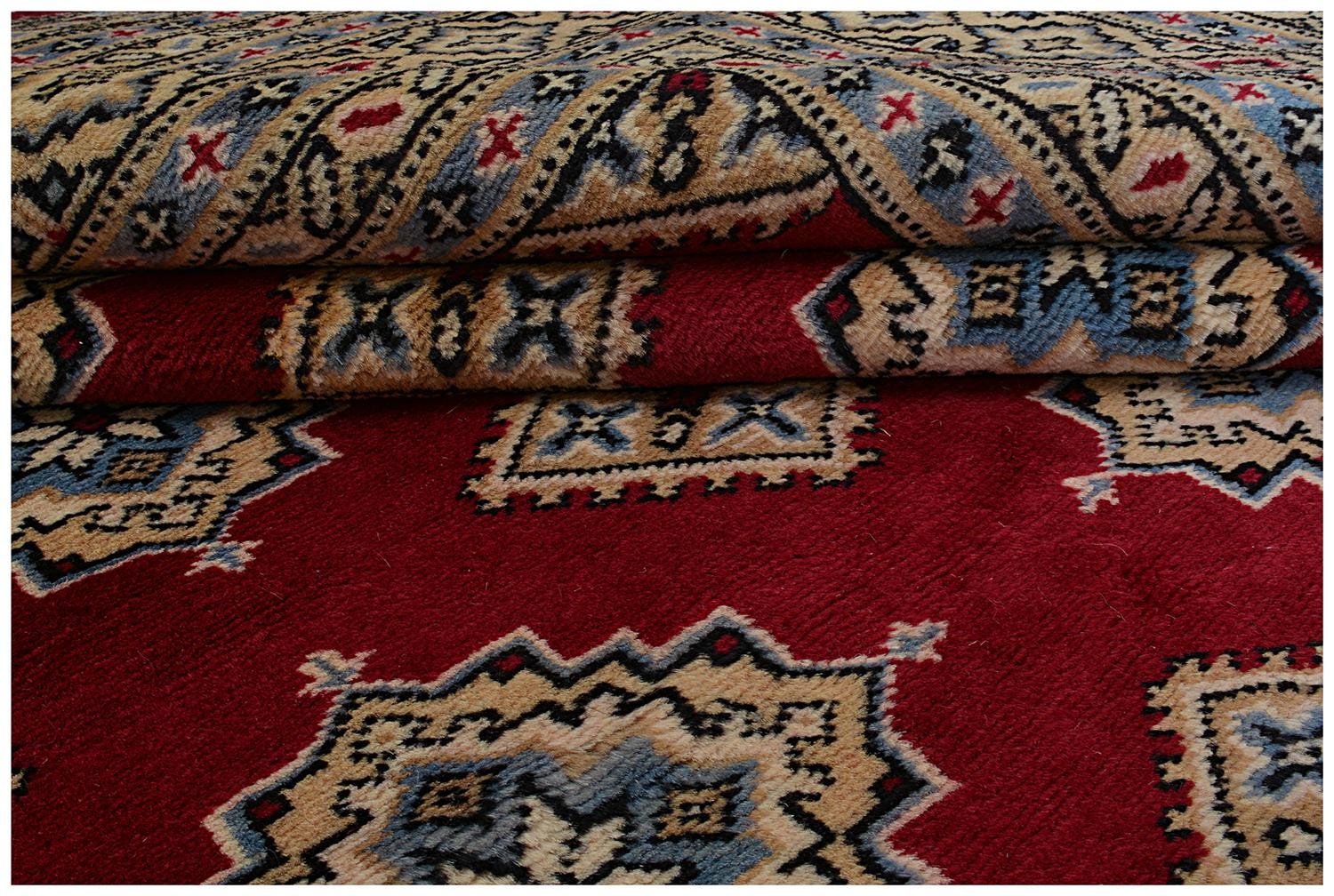 This rug is 100% handmade, hand knotted and it has a very high knot density which makes it one of a kind and unique. This Pakistani Bokhara rug can add luxurious feel to any room with its soft and velvety feel.