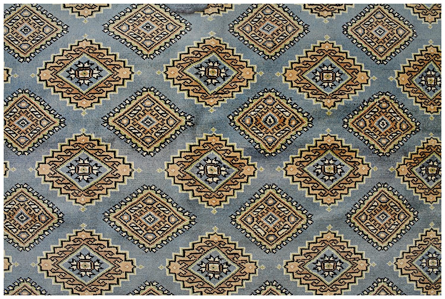 This rug is 100% handmade, hand knotted and it has a very high knot density which makes it one of a kind and unique. This Pakistani Bokhara rug can add luxurious feel to any room with its soft and velvety feel.