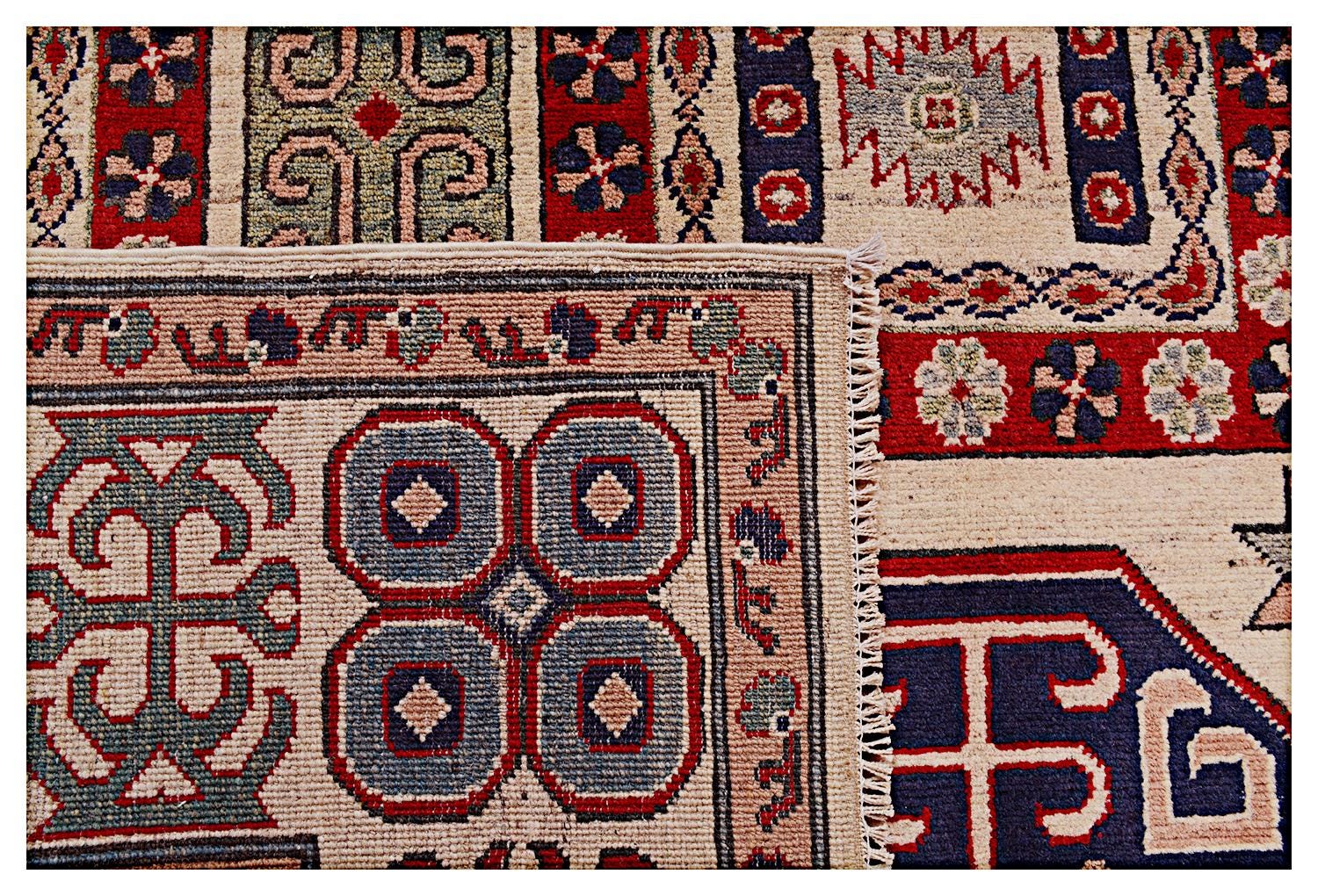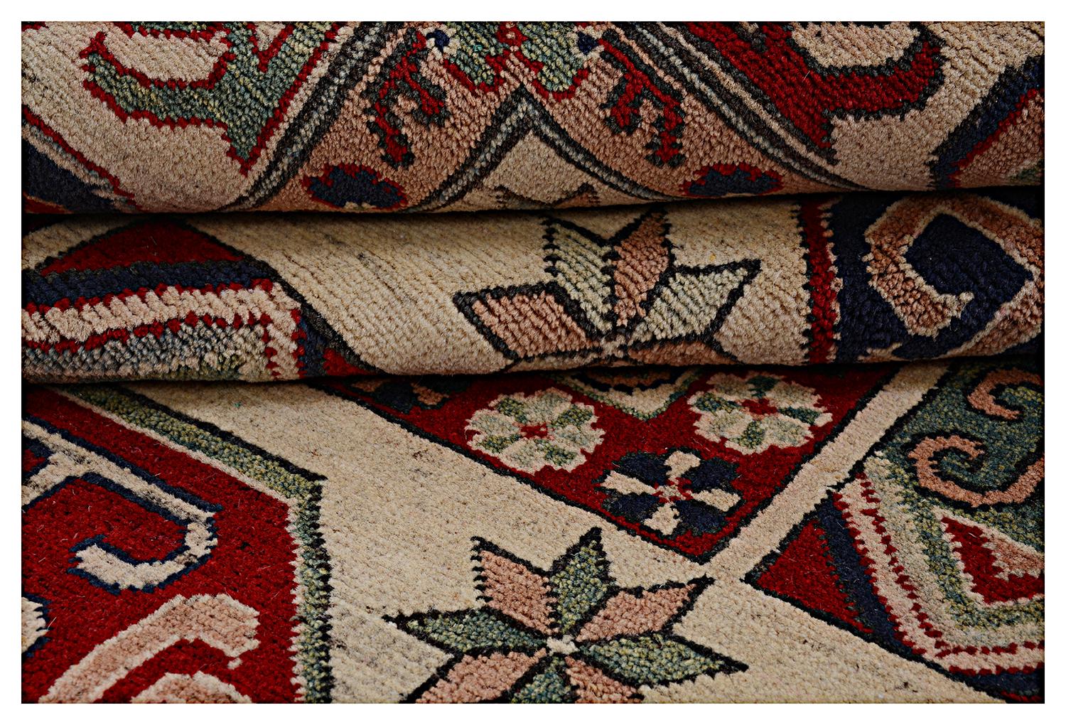 This rug is 100% handmade which makes it one of a kind and unique. Kazak rugs can be used for both modern and traditional settings. Very hard-wearing rug and a good value for money.
