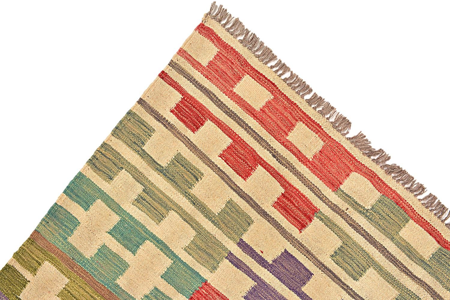 This rug is 100% handwoven and hand handmade which makes it one of a kind and unique. Very hard-wearing and a good value for money. Kilim rugs are contemporary rugs which can be used for both modern and traditional settings.