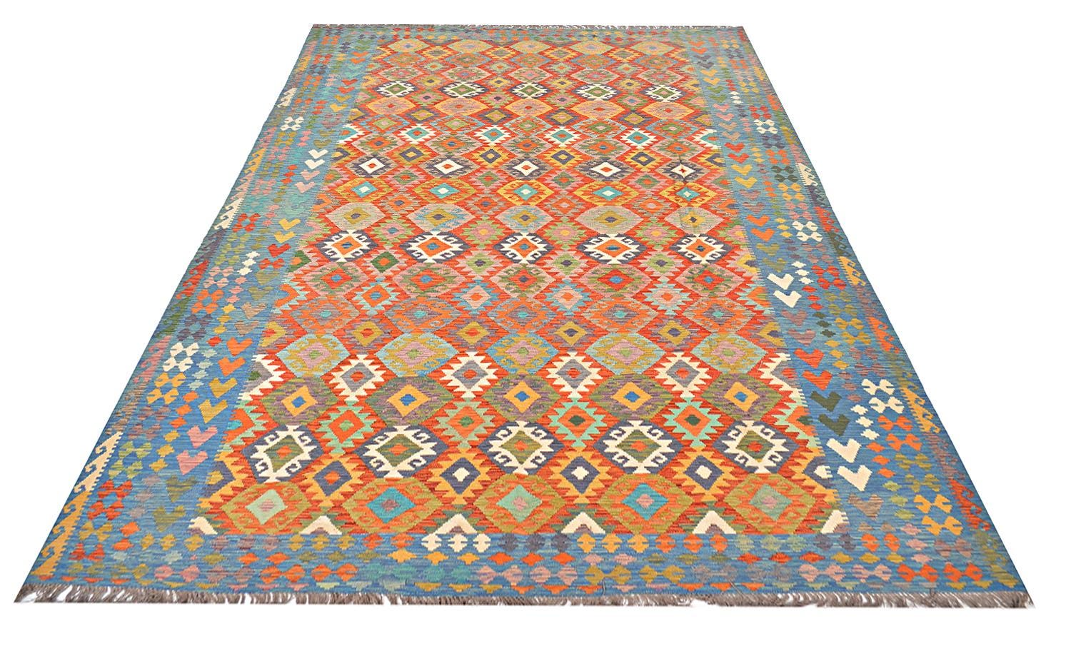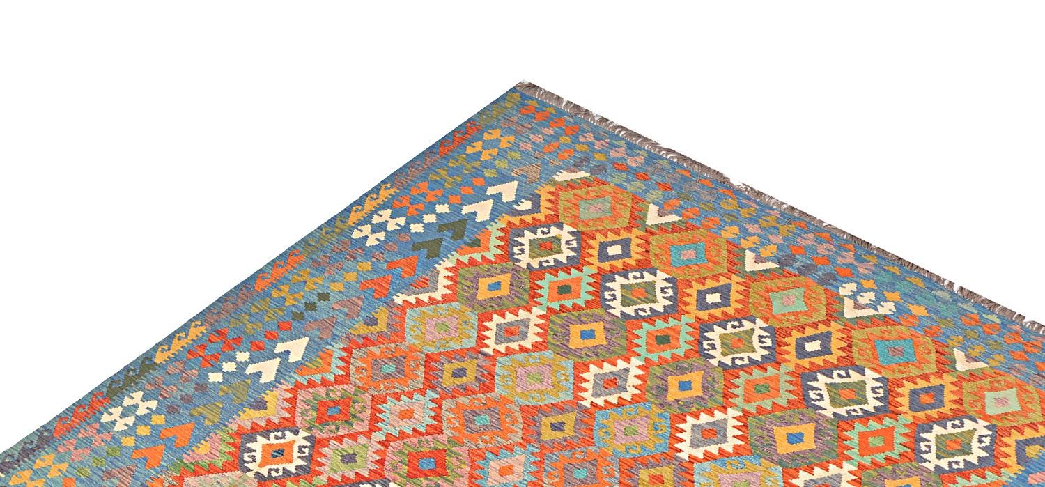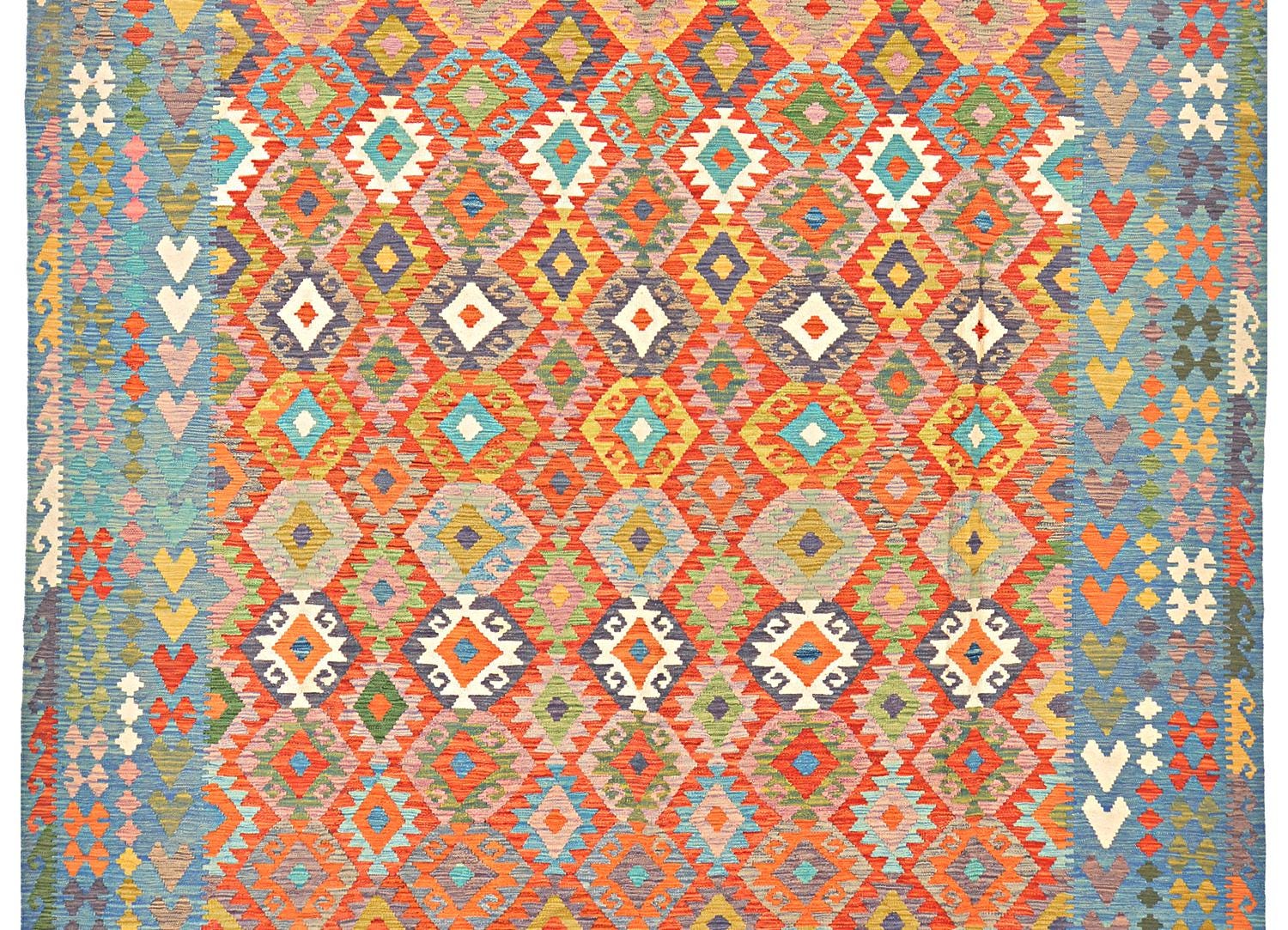 A brand new very high quality multicolour 100% handmade flatwoven traditional wool on wool Afghan kilim rug.