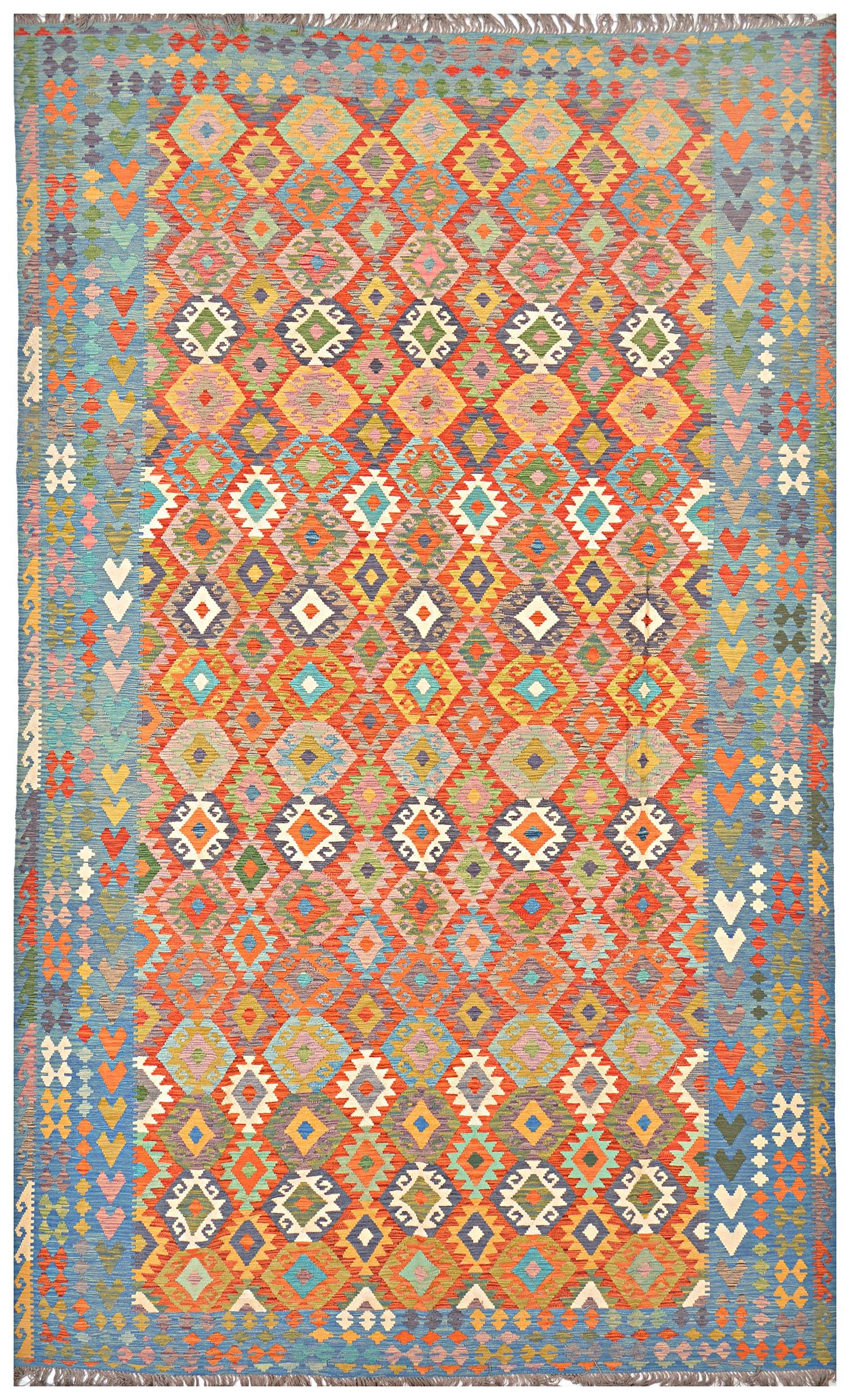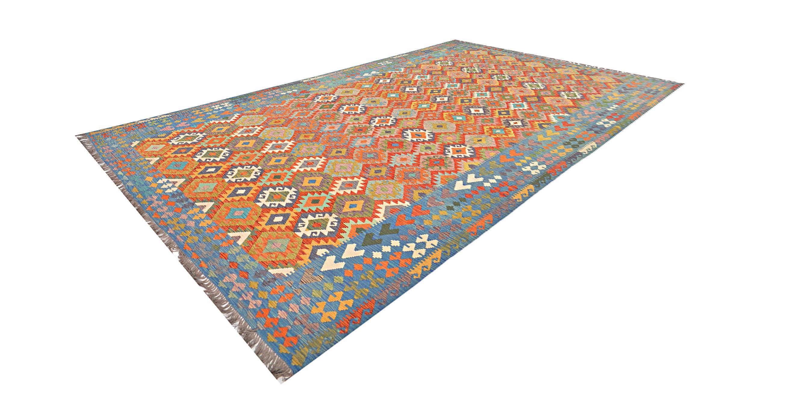 New Handmade Afghan Kilim rug 10x16ft Flatwoven Handwoven Geometric Traditional Maimana Oriental Large Wool Area Rug Natural dyes Multicolor