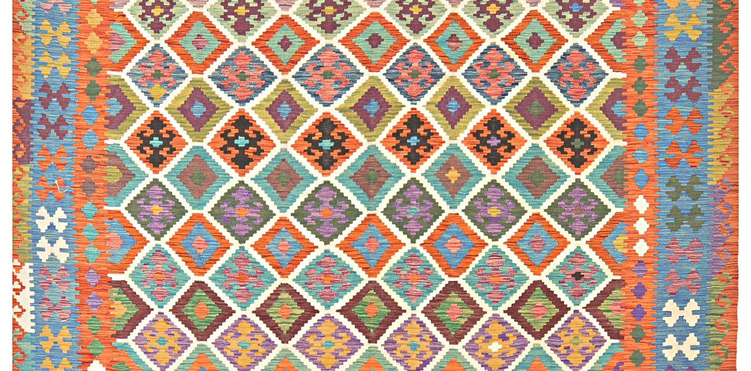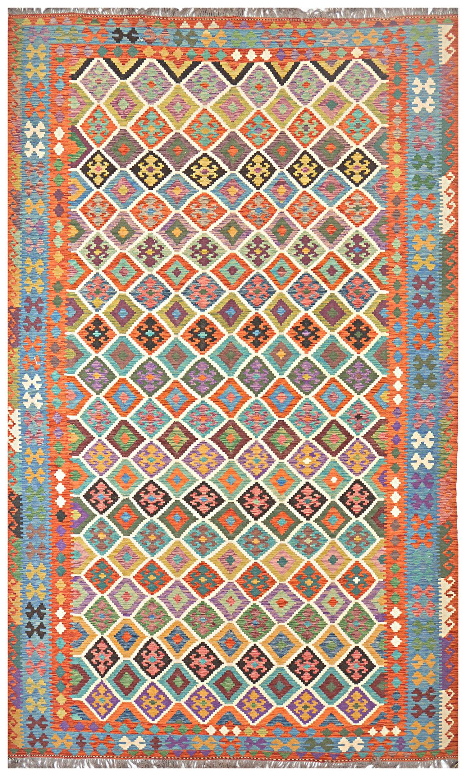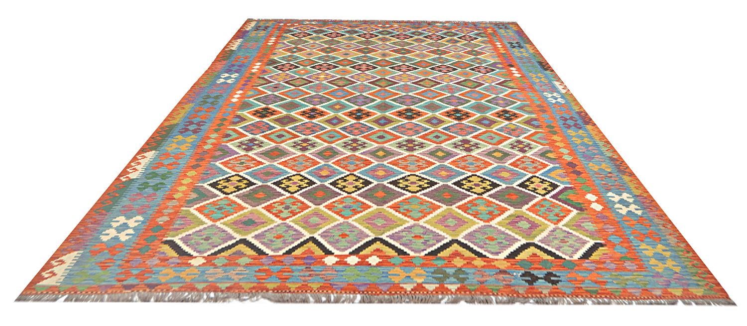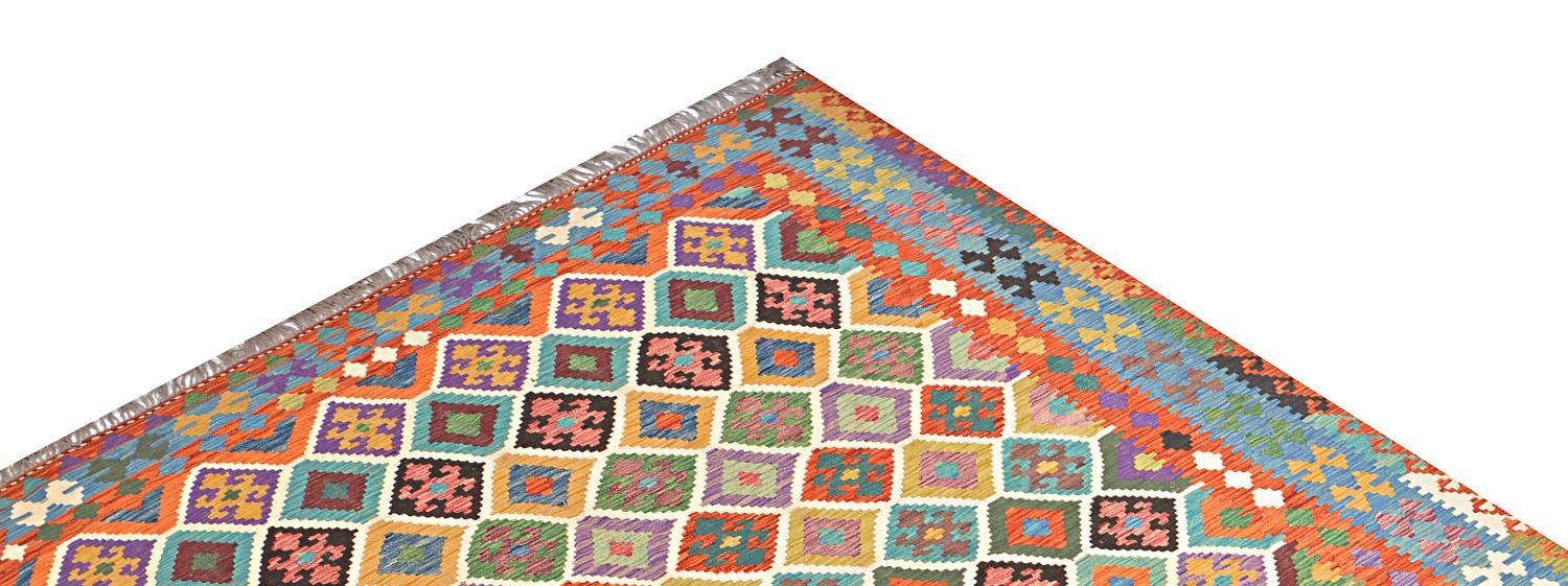 A brand new very high quality multicolour 100% handmade flatwoven traditional wool on wool Afghan kilim rug.