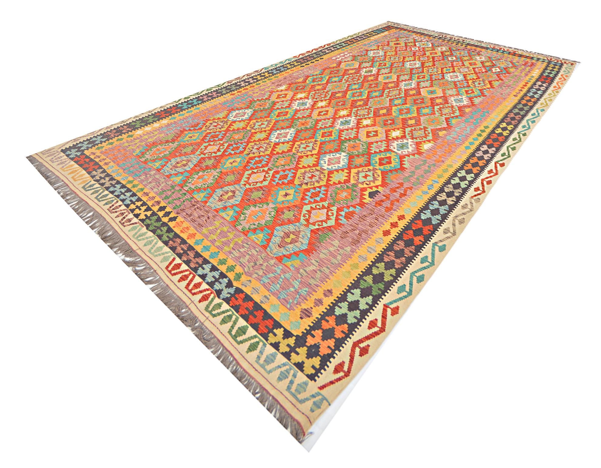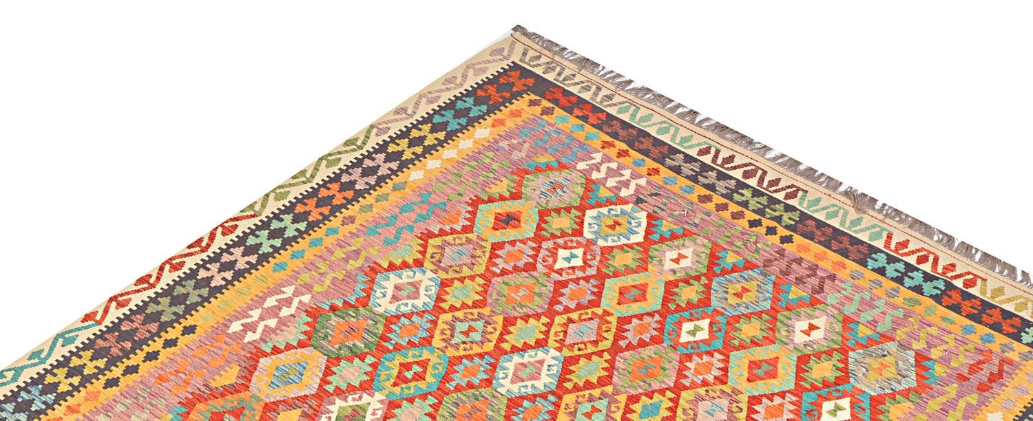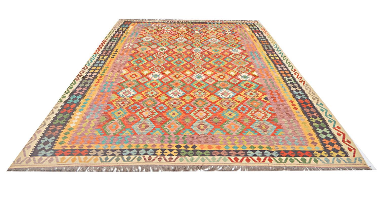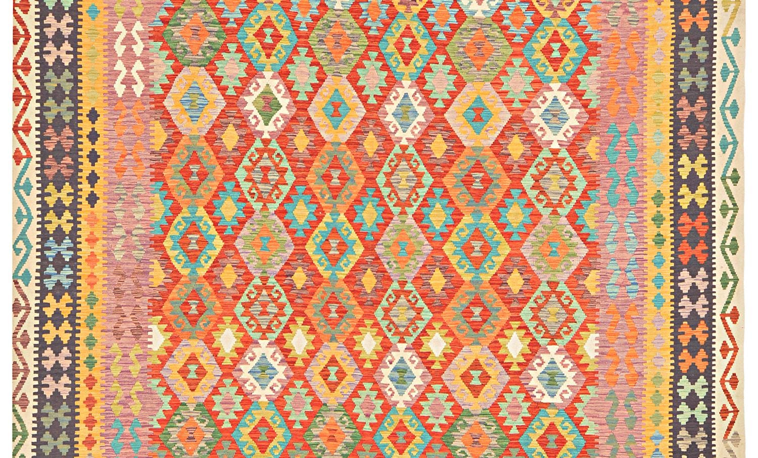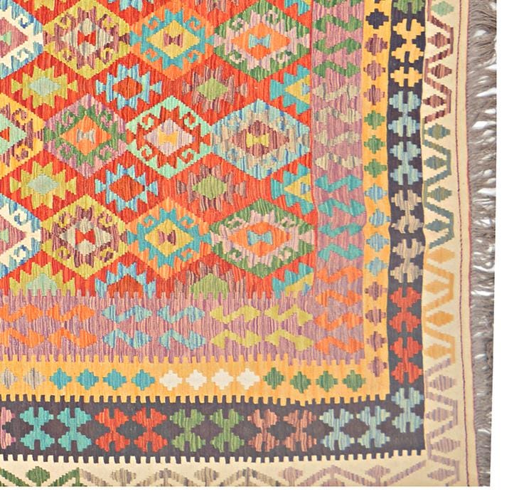 A brand new very high quality multicolor 100% handmade flatwoven traditional wool on wool Afghan kilim rug.