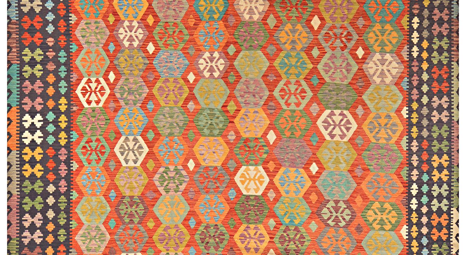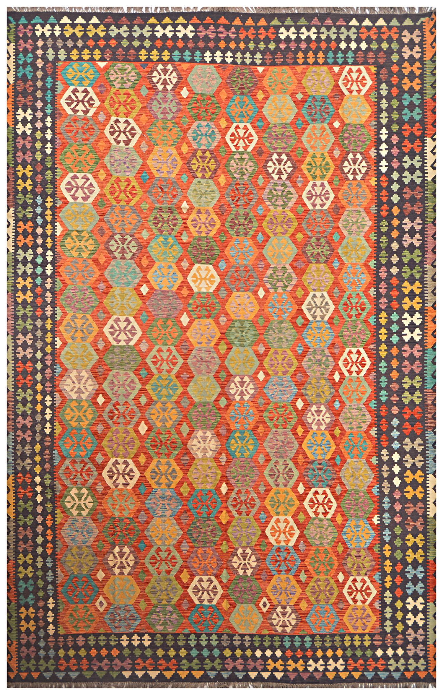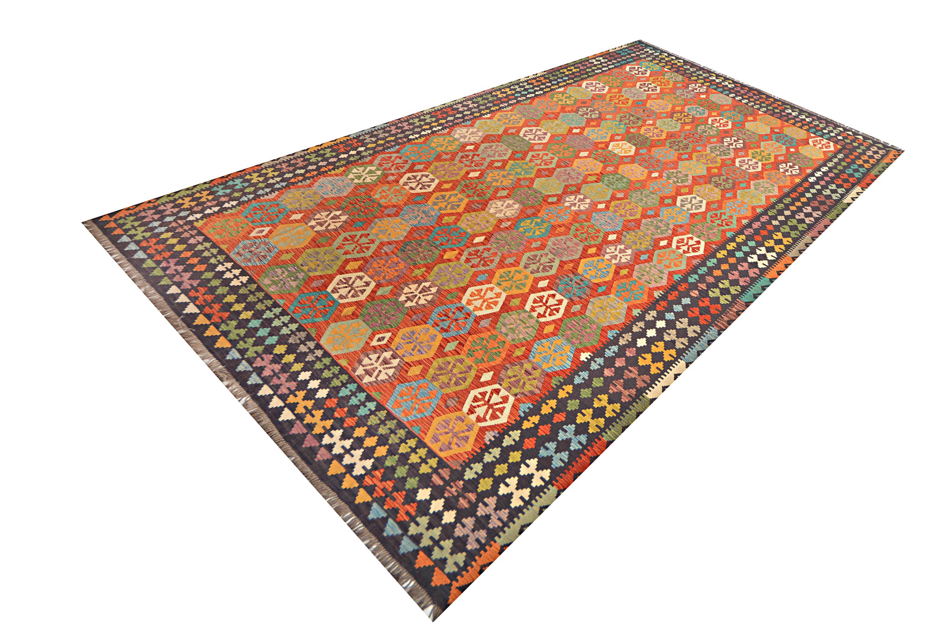 A brand new very high quality multicolor 100% handmade flatwoven traditional wool on wool Afghan kilim rug.