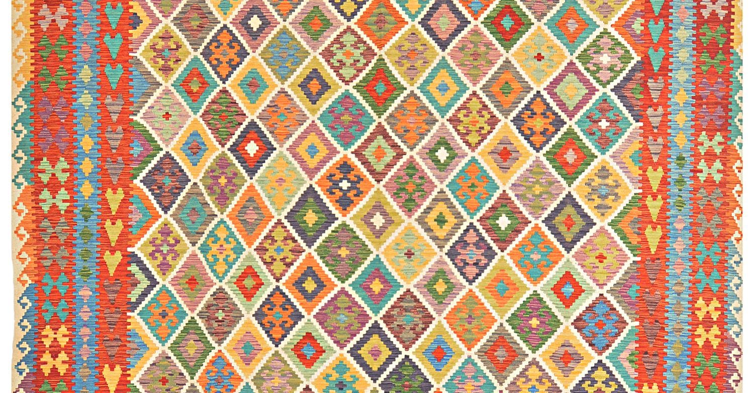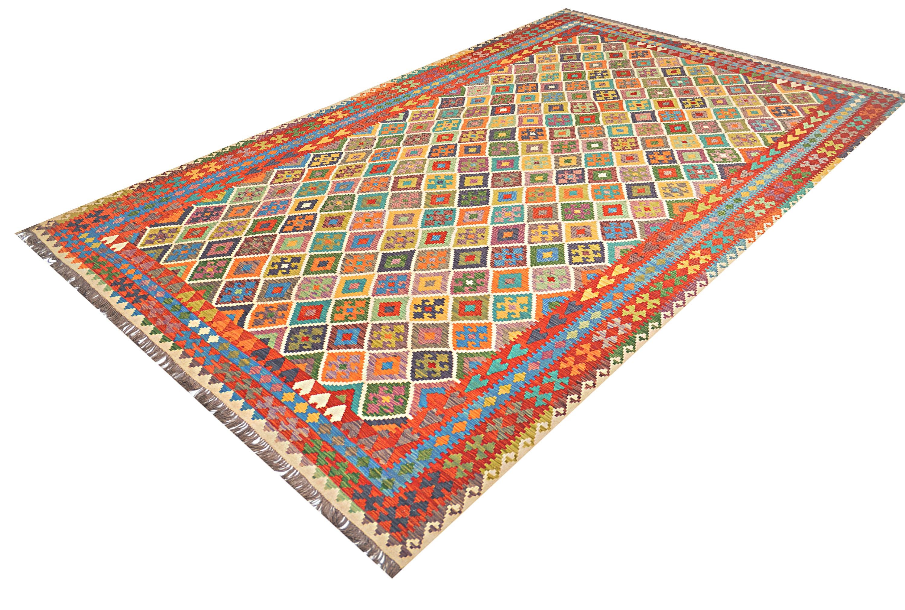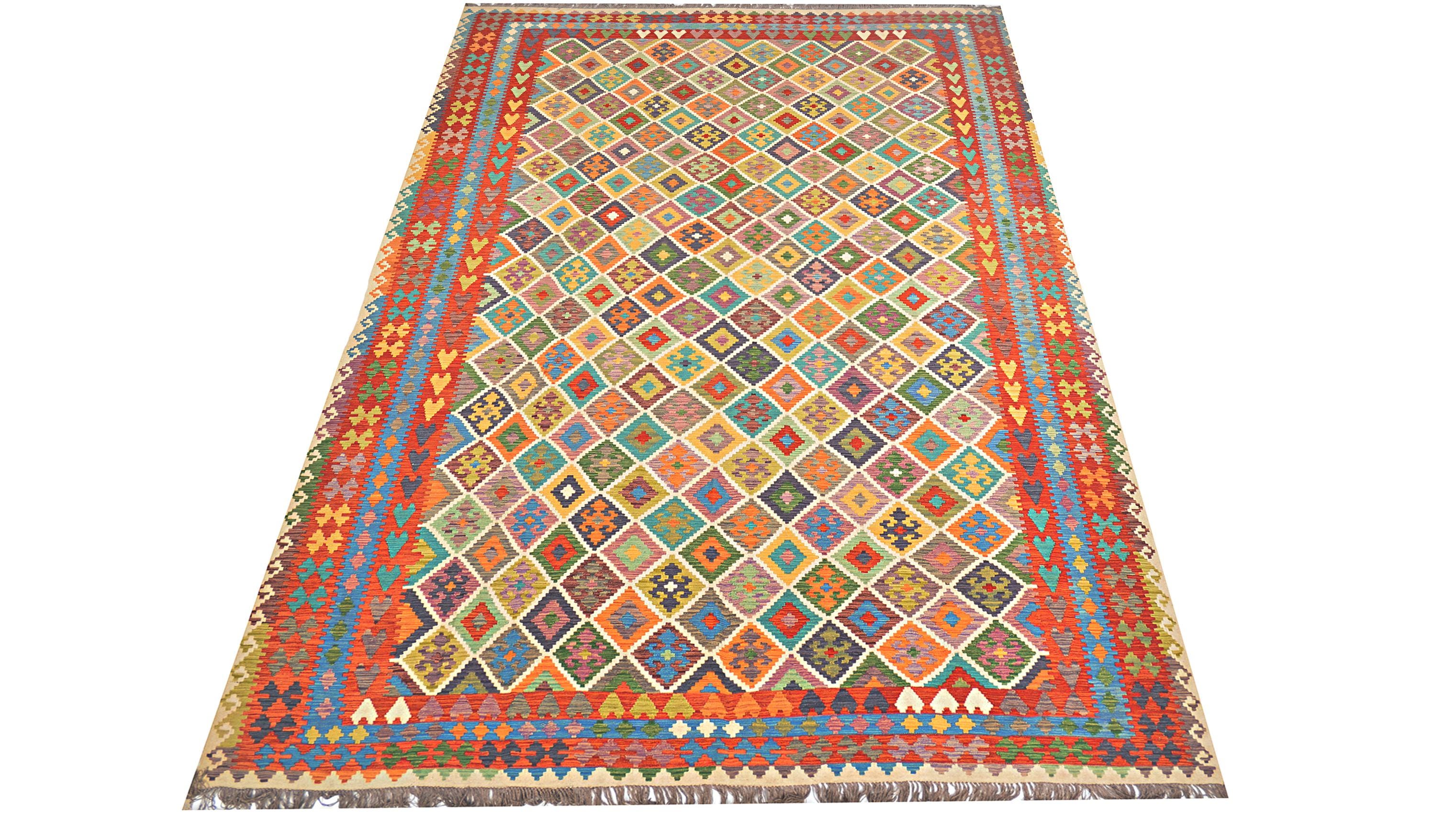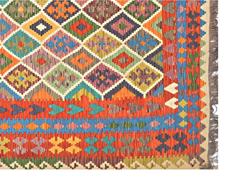 A brand new very high quality multicolor 100% handmade flatwoven traditional wool on wool Afghan kilim rug.